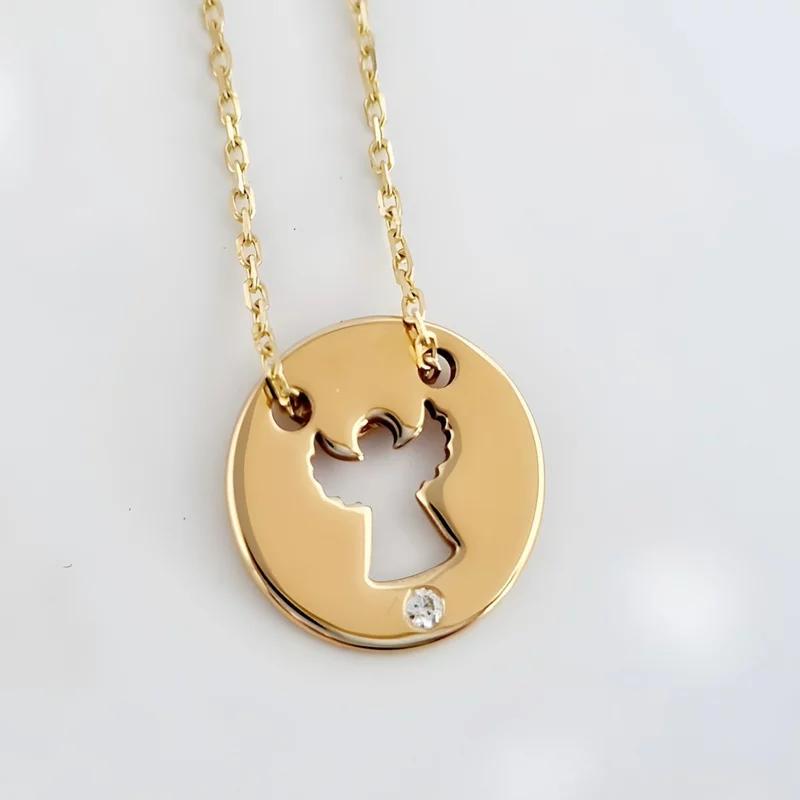 Lantisor personalizat cu Diamant natural - Pandantiv banut ingeras decupat - Aur Galben 14 K