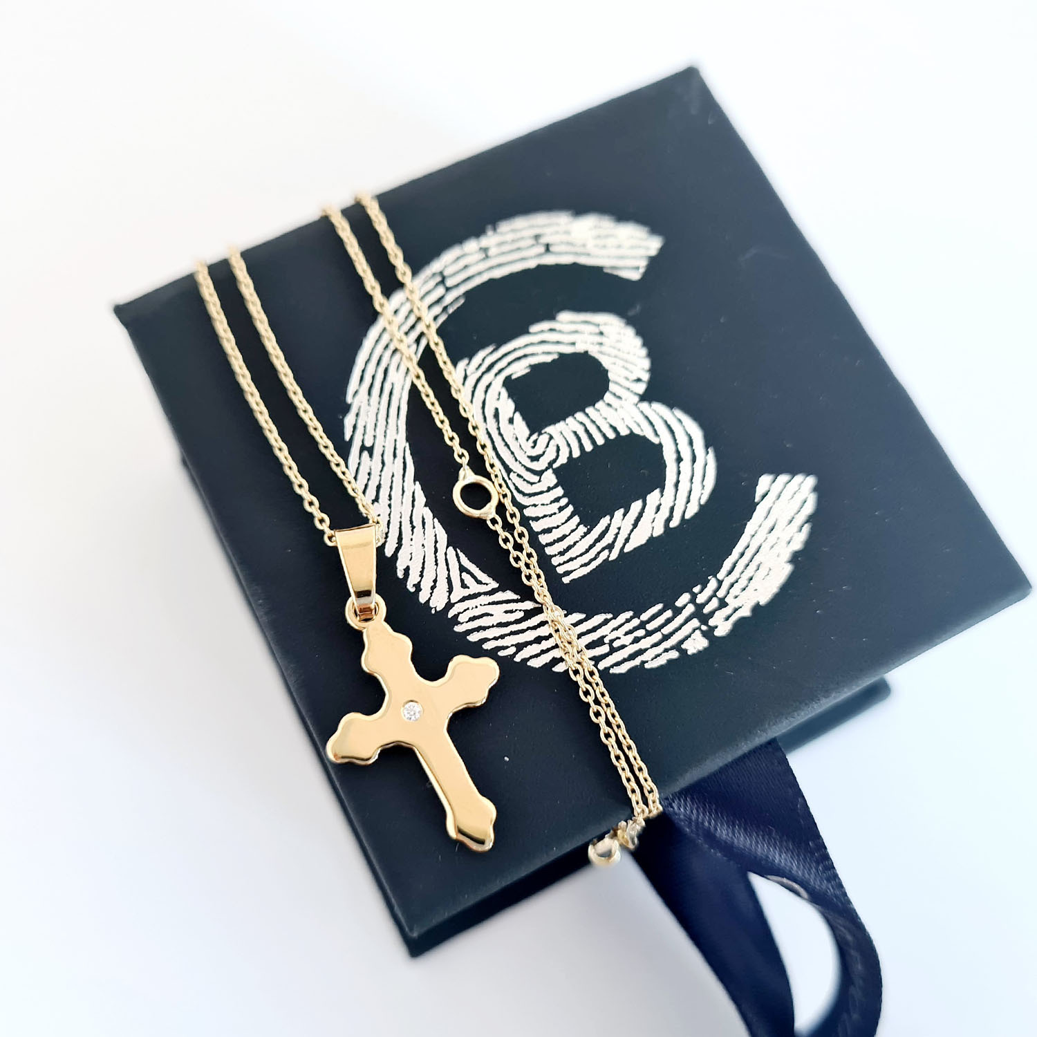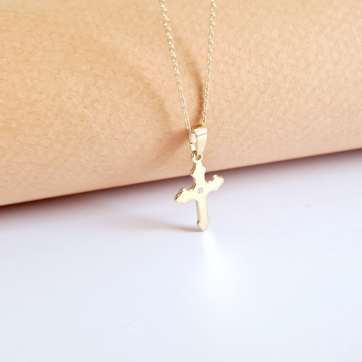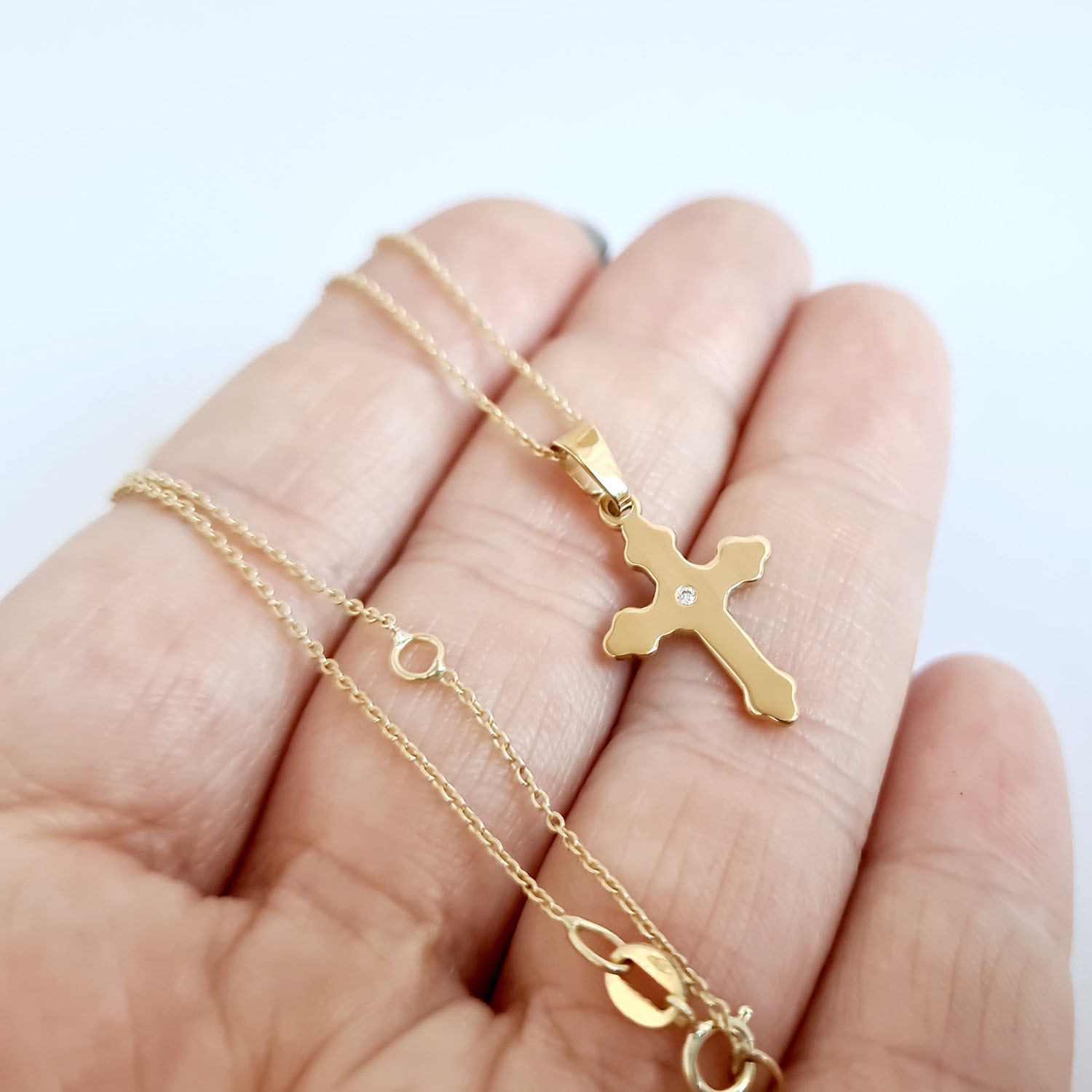 Lantisor personalizat cu Diamant natural - Pandantiv Cruce - Aur Galben 14K