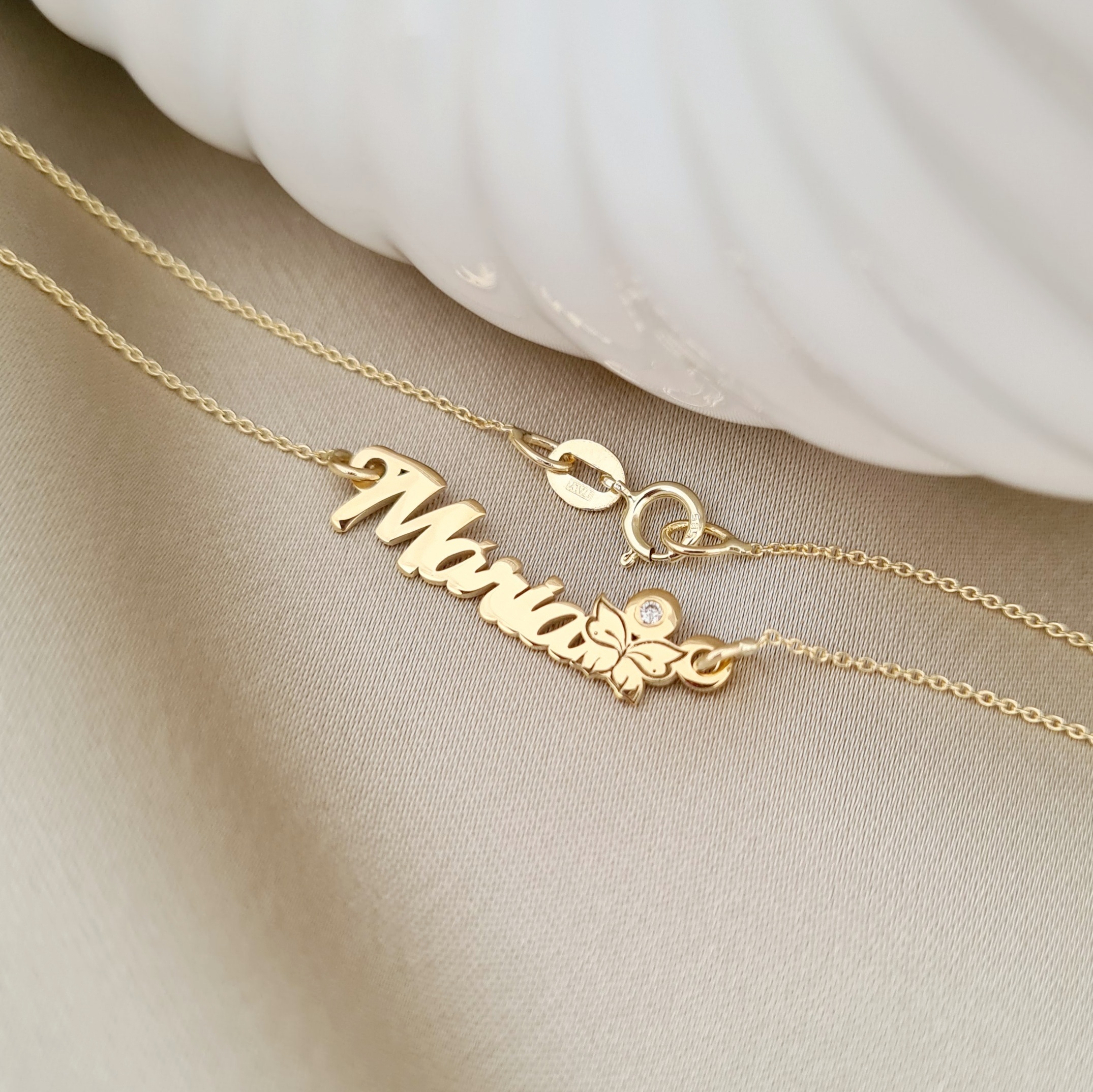 Lantisorul cu nume poate fi realizat din Aur 9K, Aur 14K (galben, alb sau roz) sau din Argint 925, clasic, rodiat sau placat cu Aur 18K (galben sau roz). Fiecare bijuterie este atent finisata manual, astfel incat sa te bucuri de un lantisor cu nume elegant, durabil si potrivit stilului tau personal.