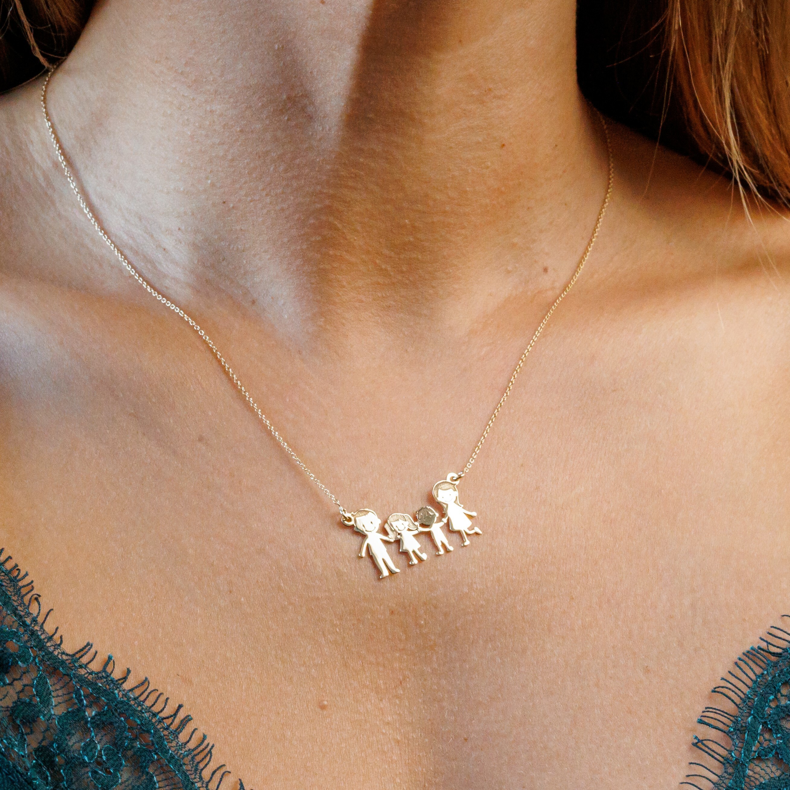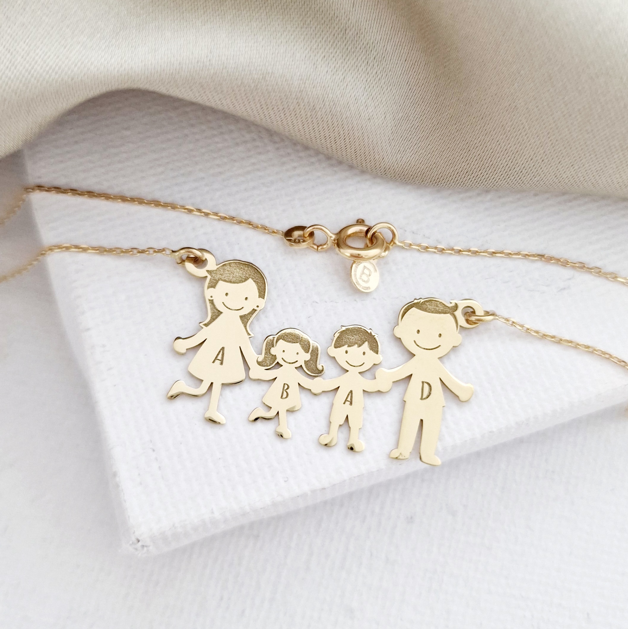 Lantisor Familie - 4 Membri - Aur Galben 14K - 16 mm inaltime