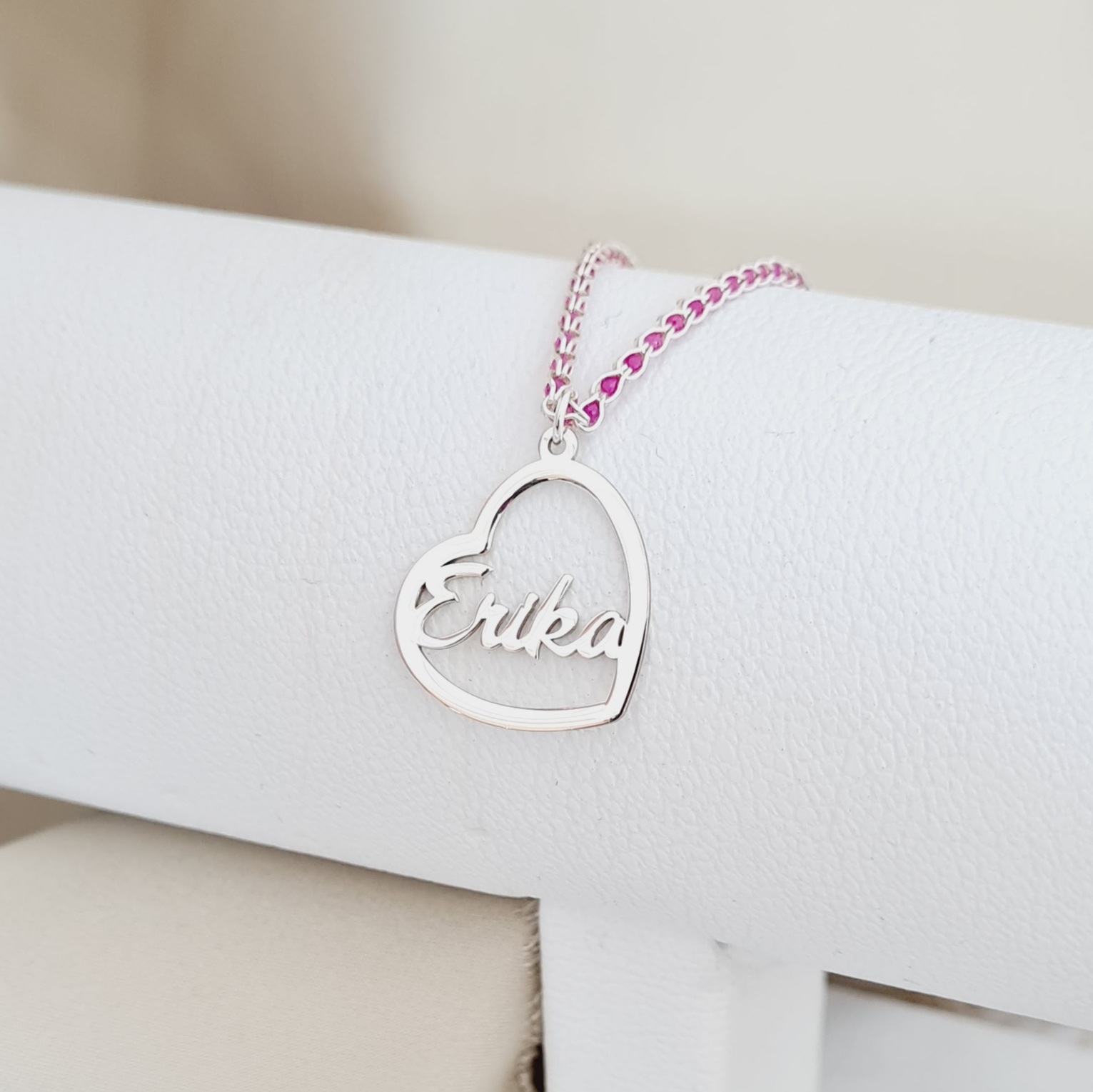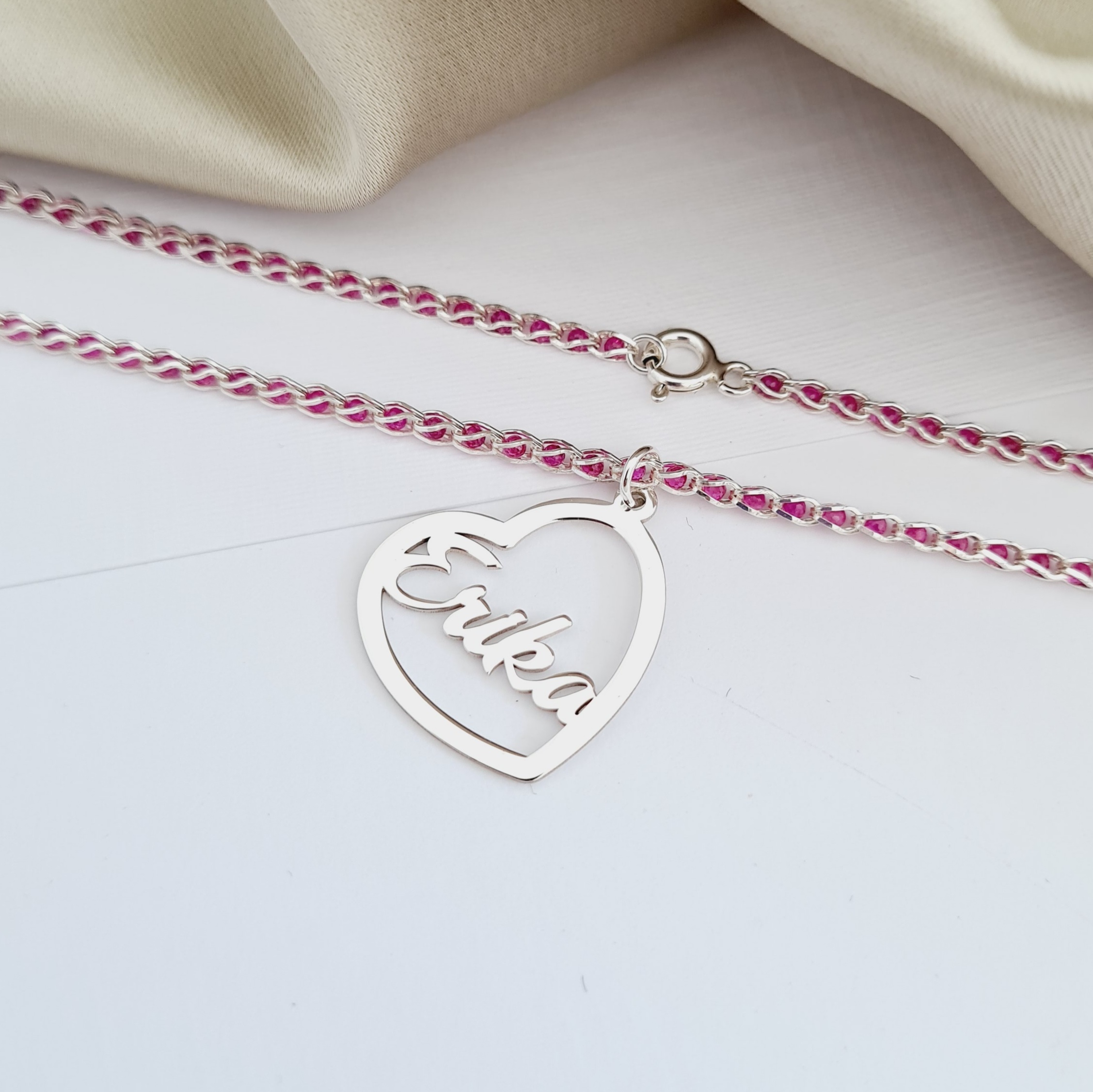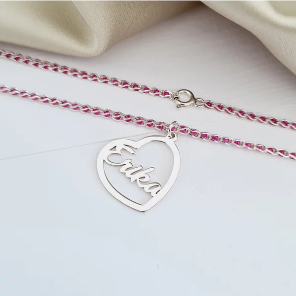 - De lant este atasat un pandantiv inima de 20 mm cu un nume ales de tine in interior.