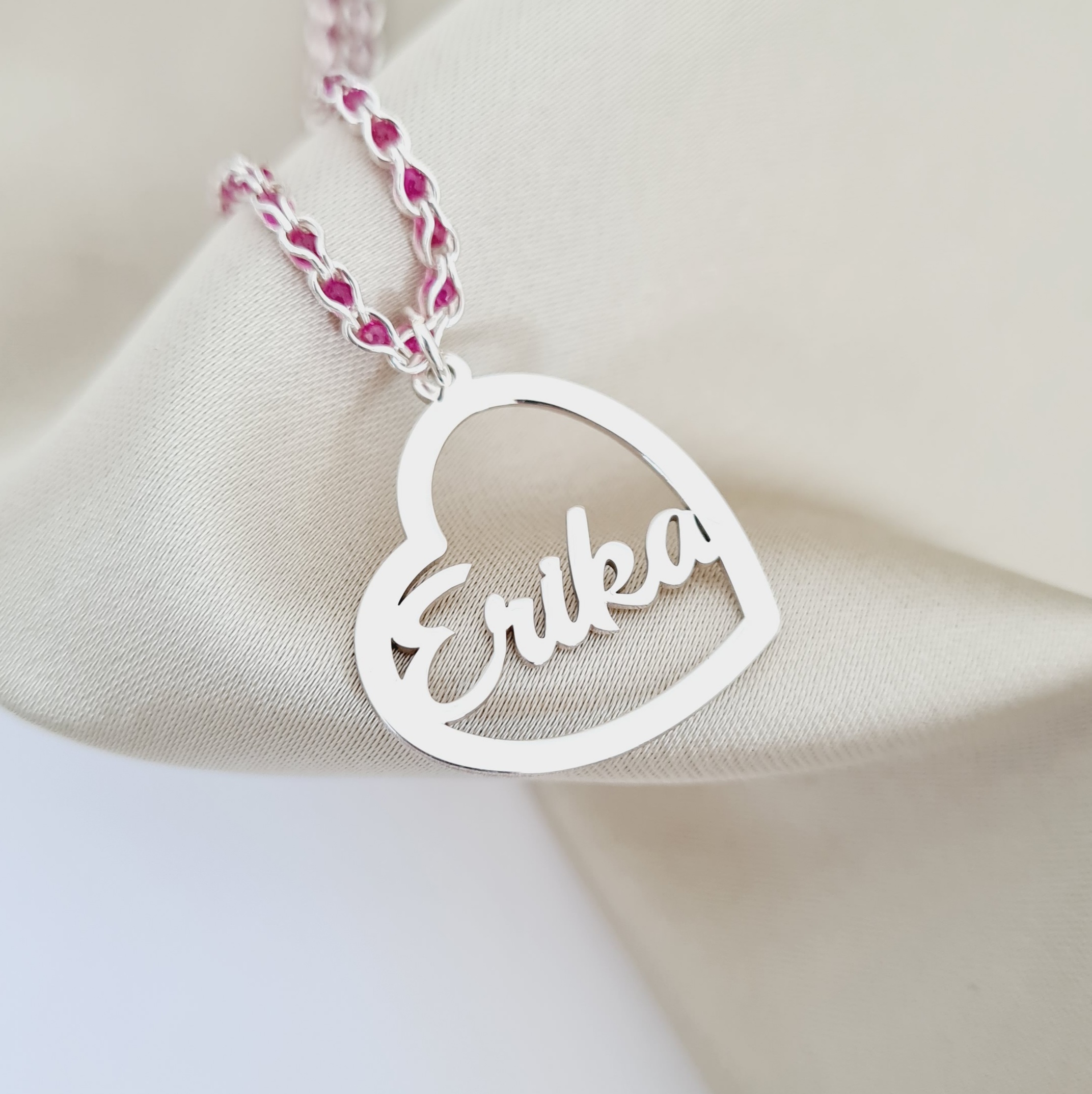 Lantisor cromatic - Pandantiv inima cu nume - Model lant impletit cu Zirconii - Argint 925