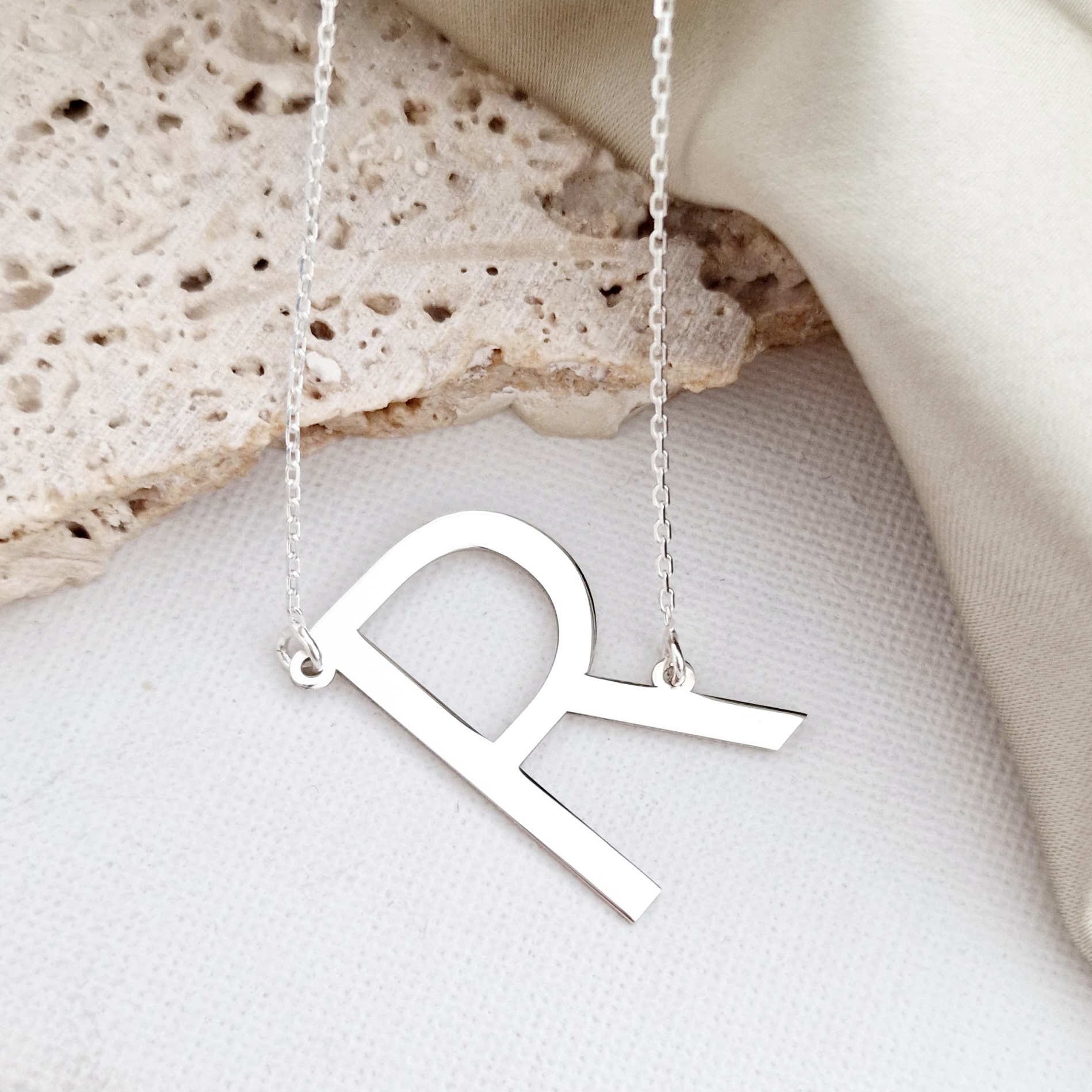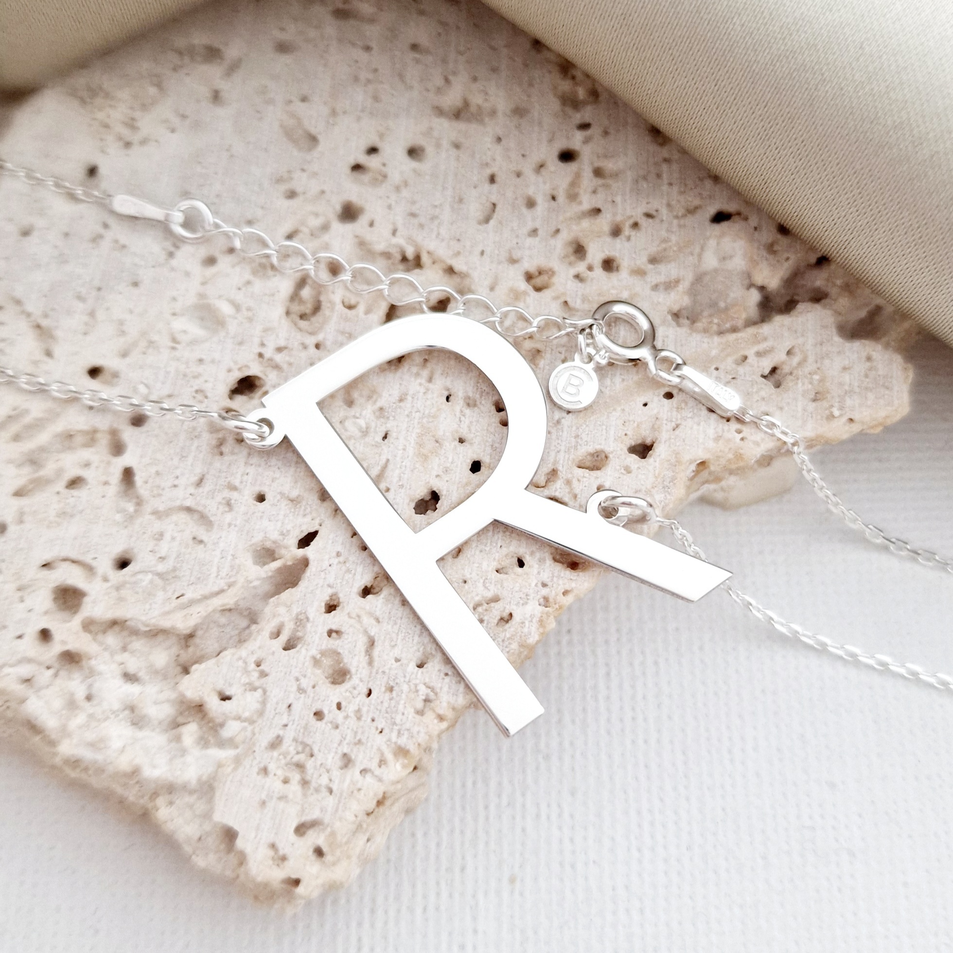 Lantisor cu Initiala supradimensionata - Argint 925 - Inchizatoare carabina