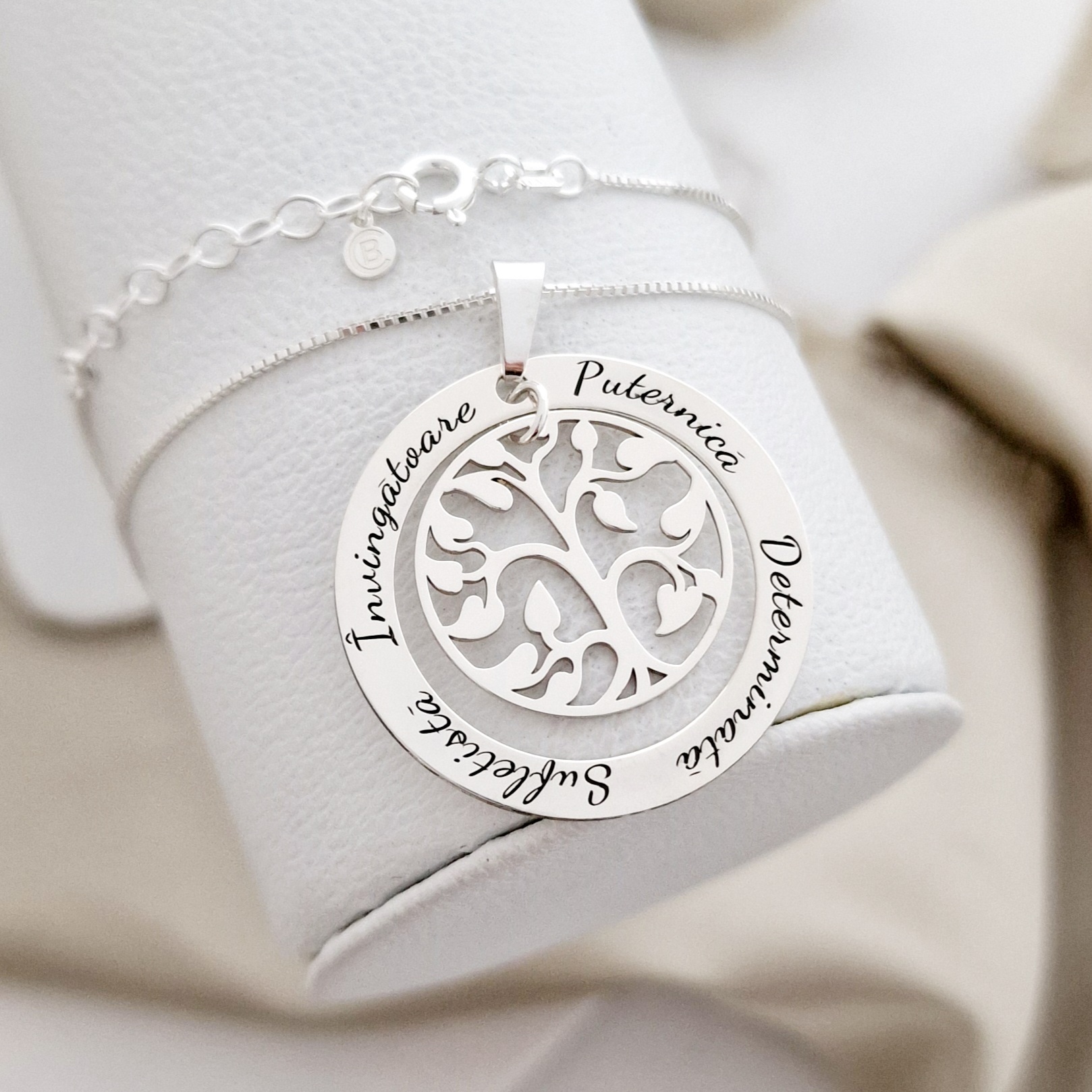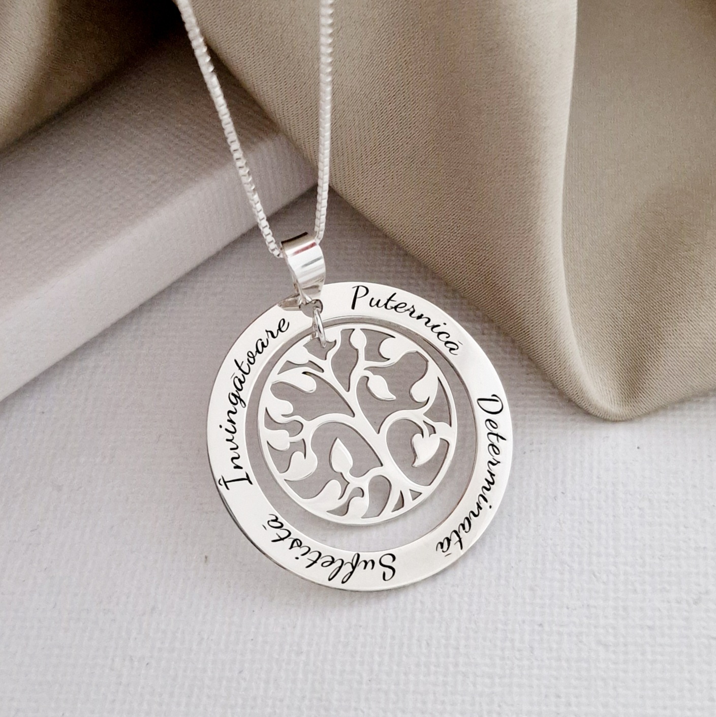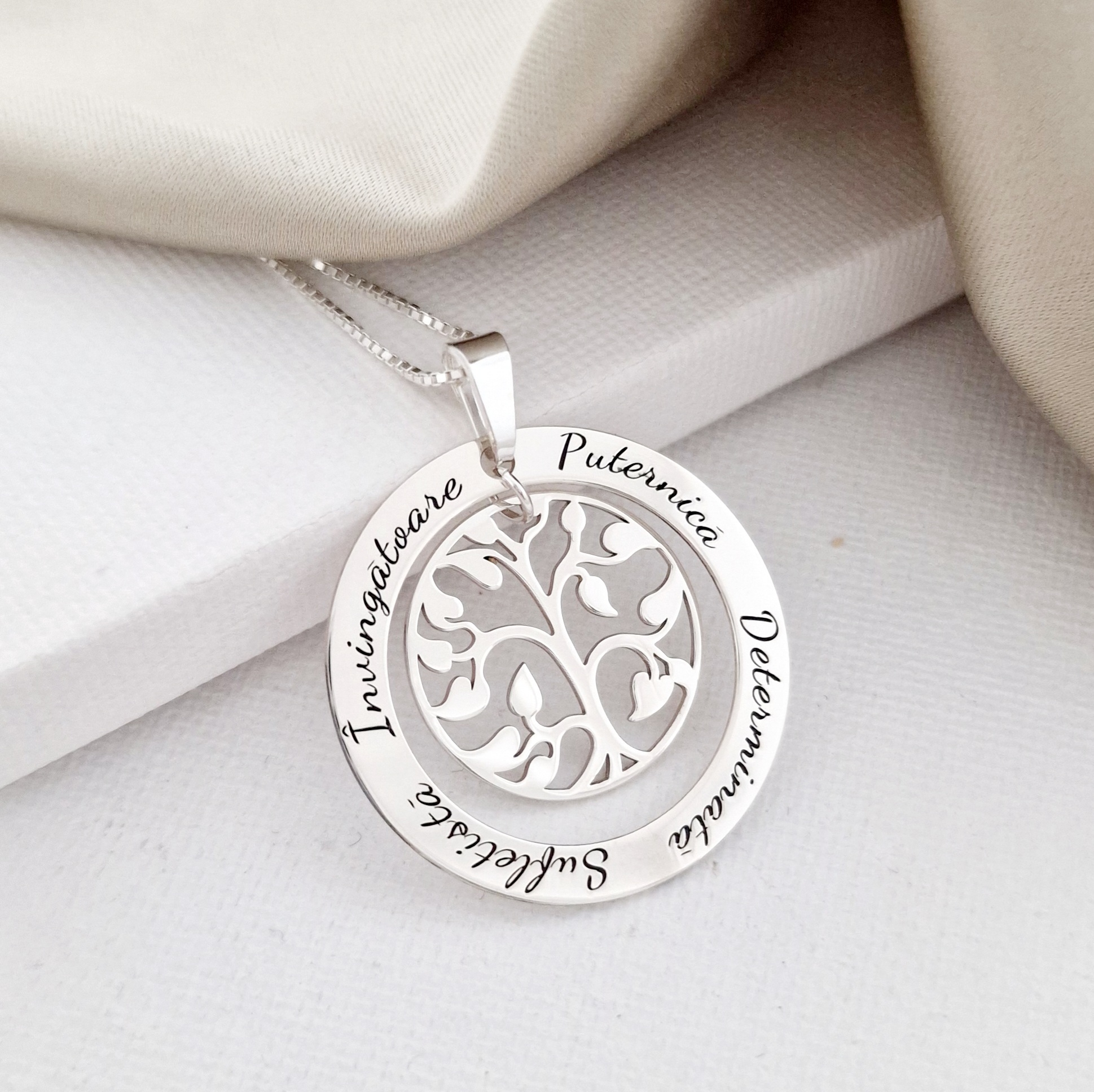 Lantisor cu pandantiv personalizat - Copacul Vietii inconjurat de nume - Argint 925