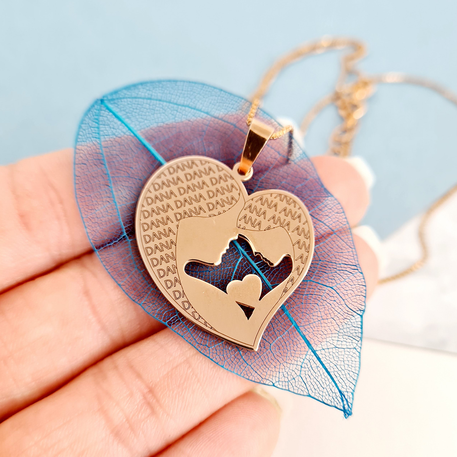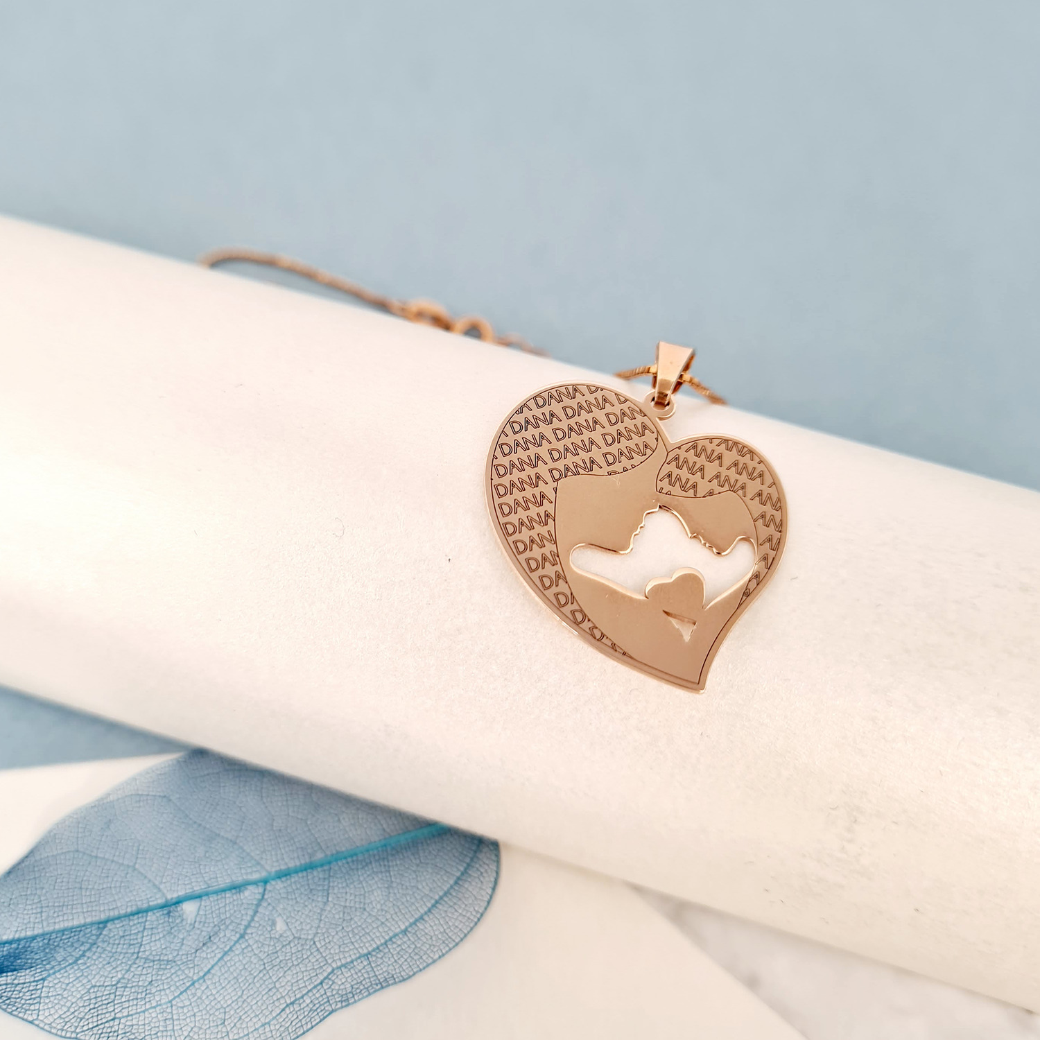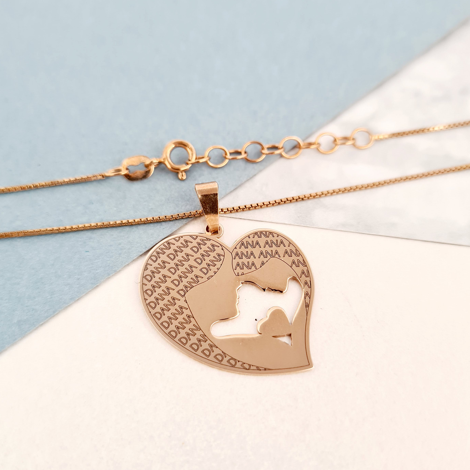 Lantisor Inima - Mama si fiica - Argint 925 placat cu Aur roz 18K