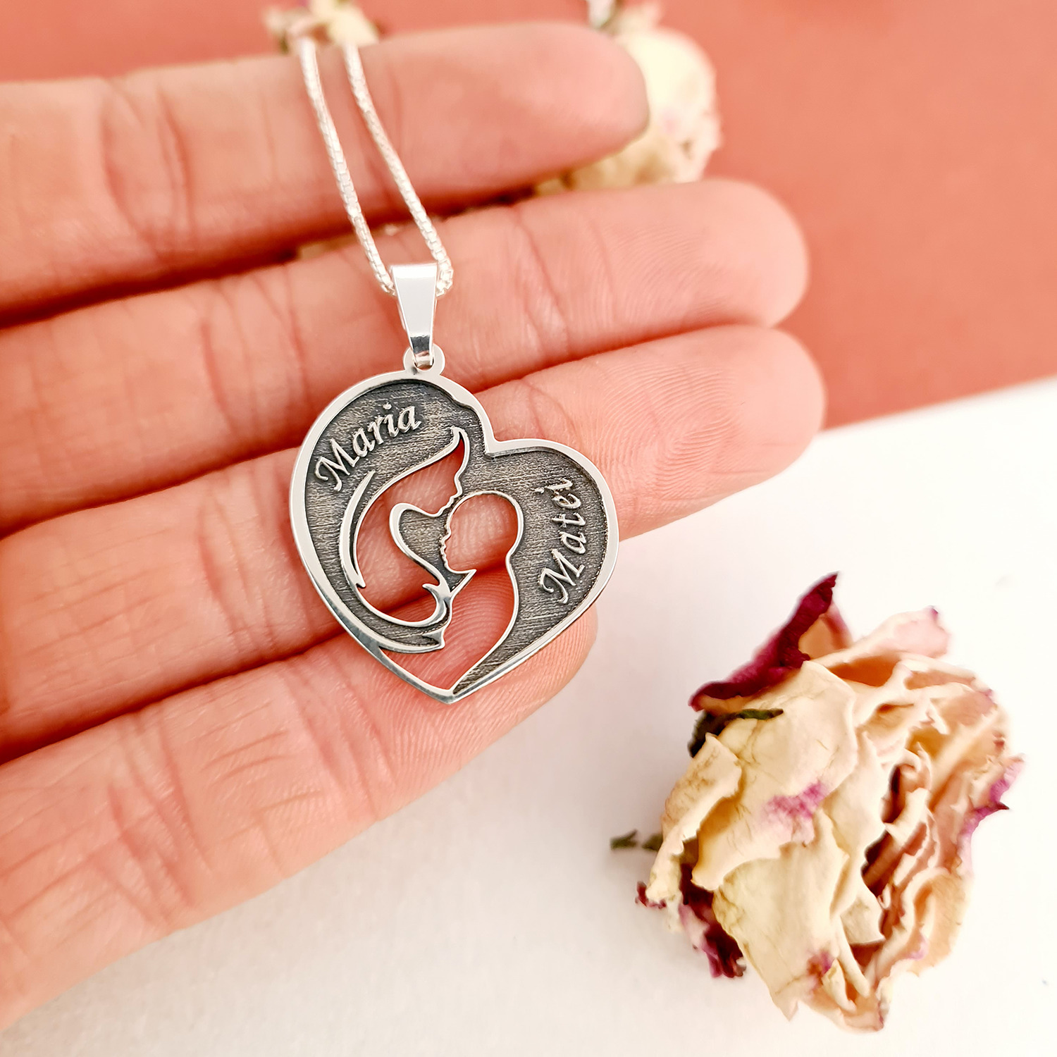 Lantisor personalizat cu nume - Dragostea mamei - Argint 925