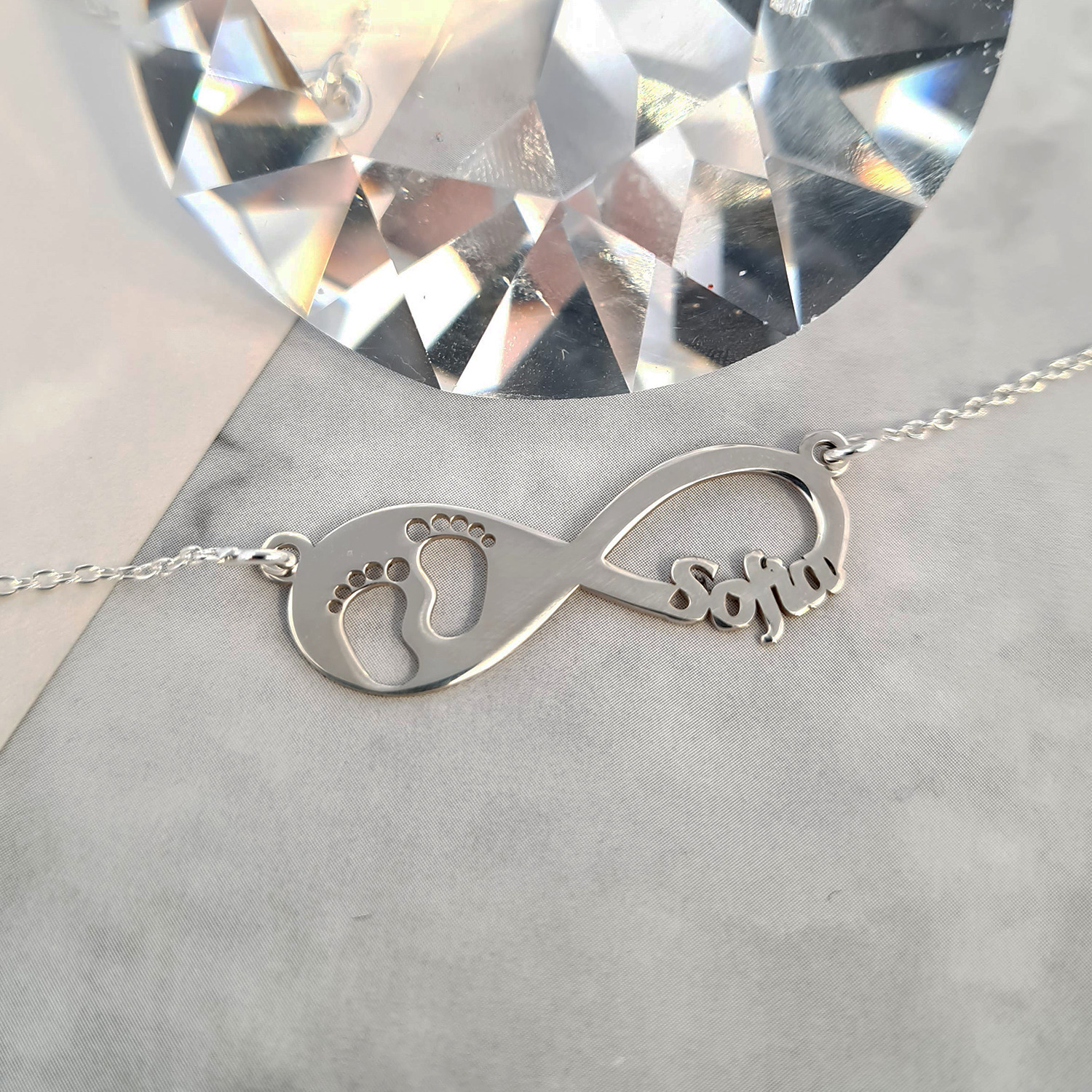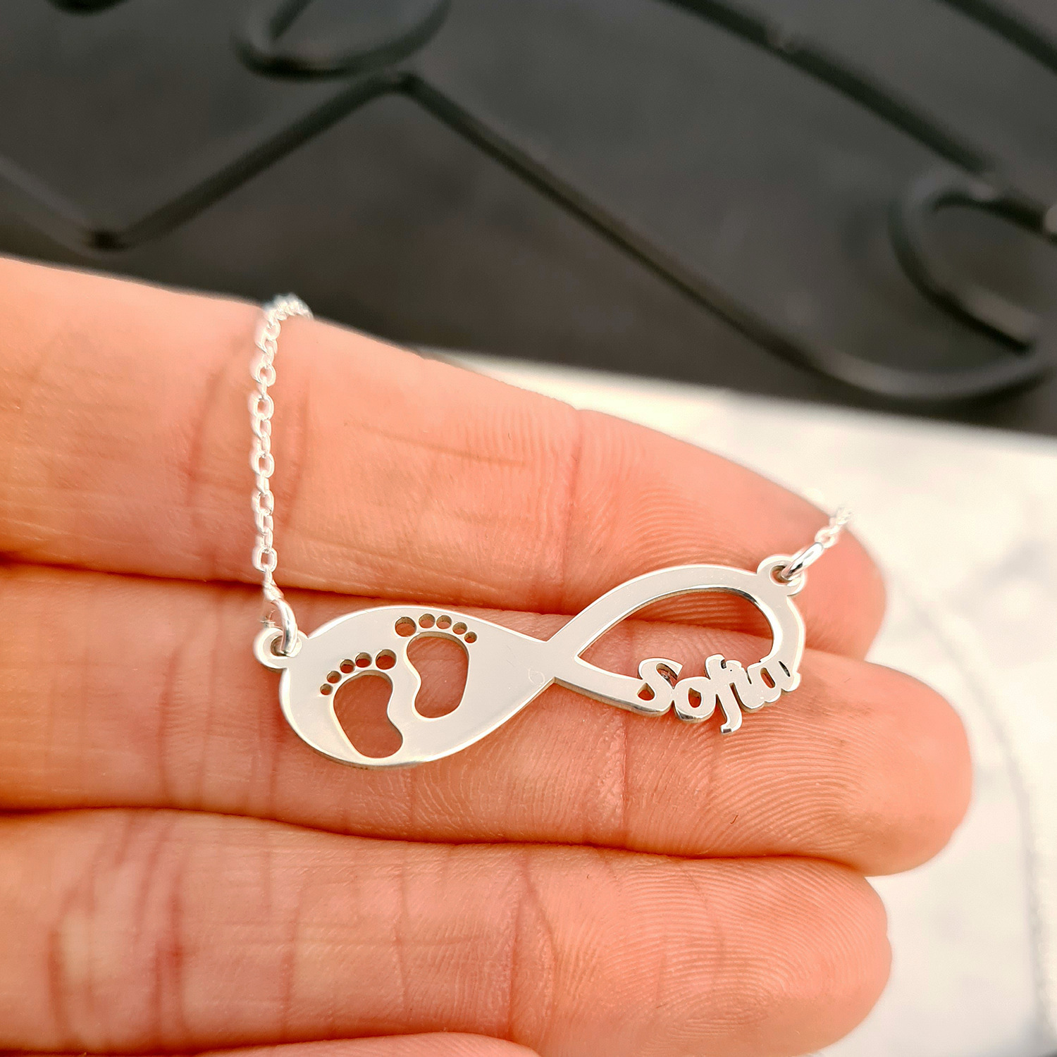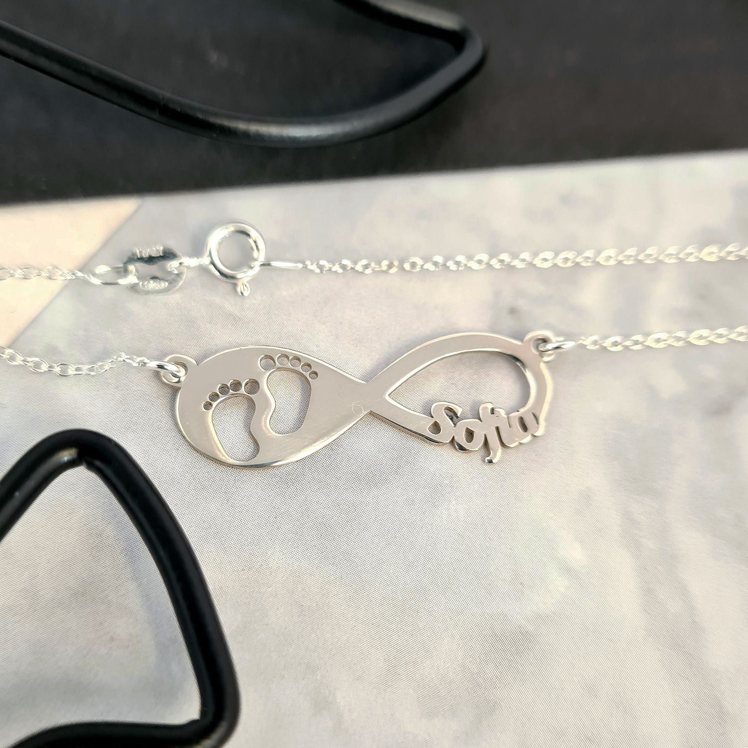 Lantisor personalizat - Pandantiv Infinit cu nume si picioruse decupate - Argint 925