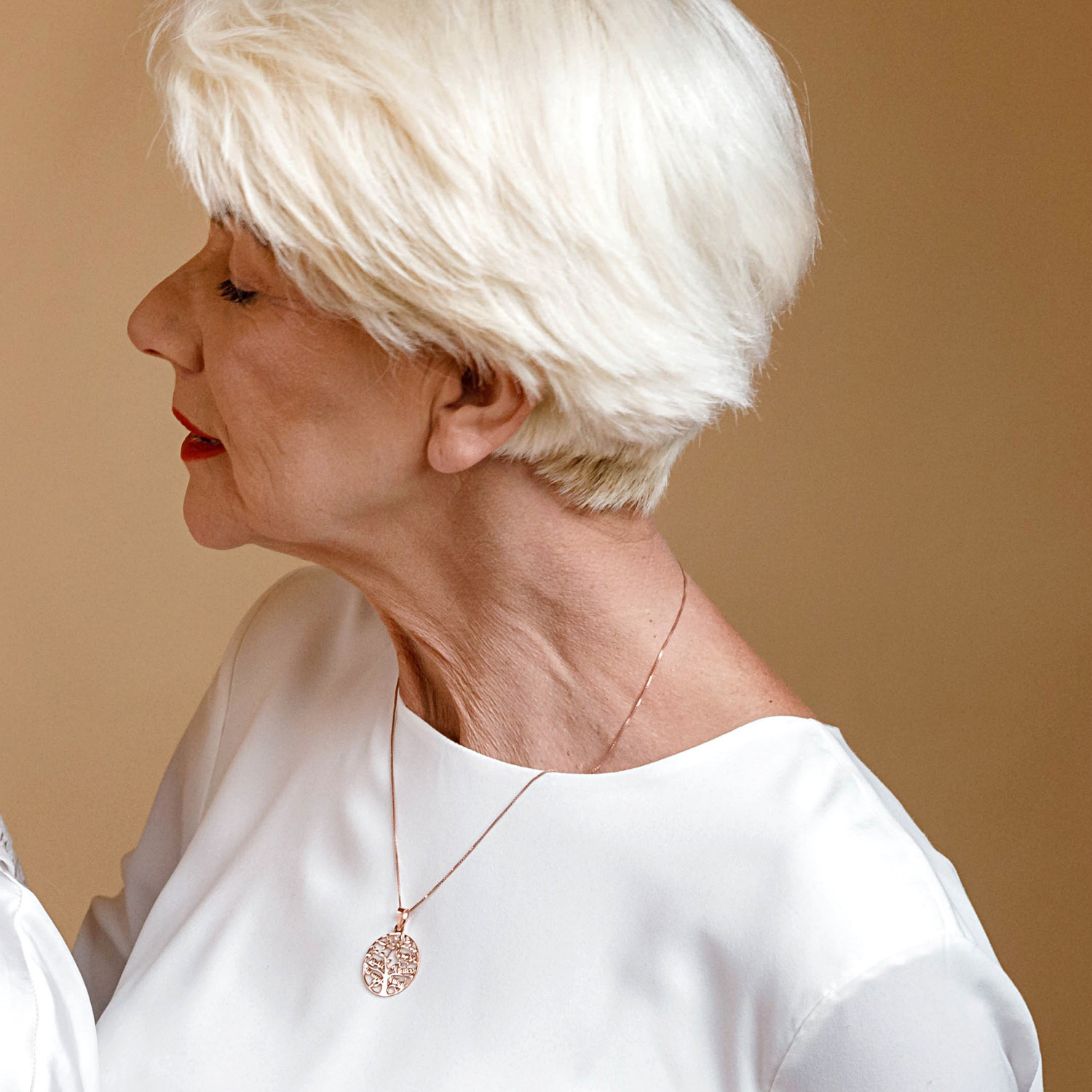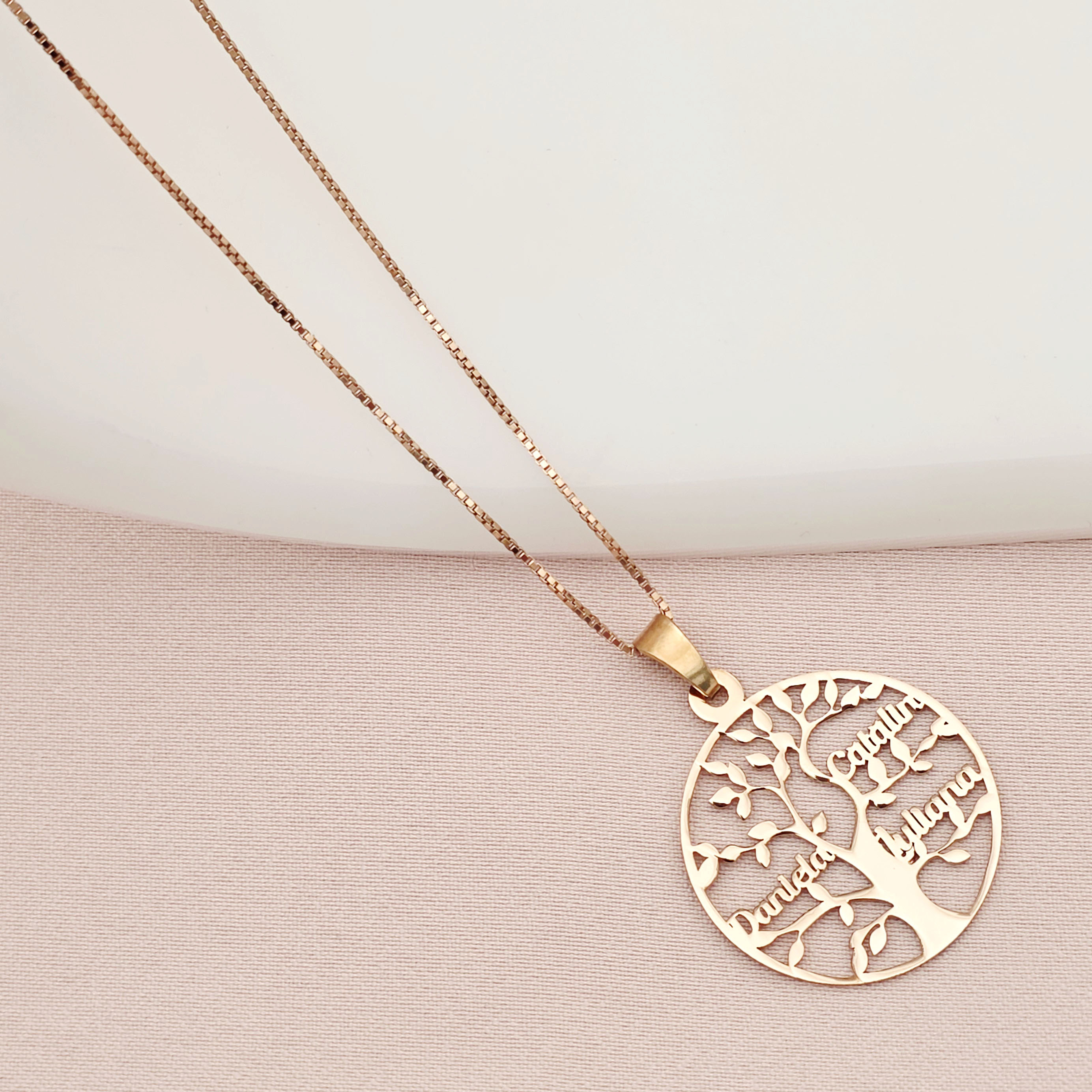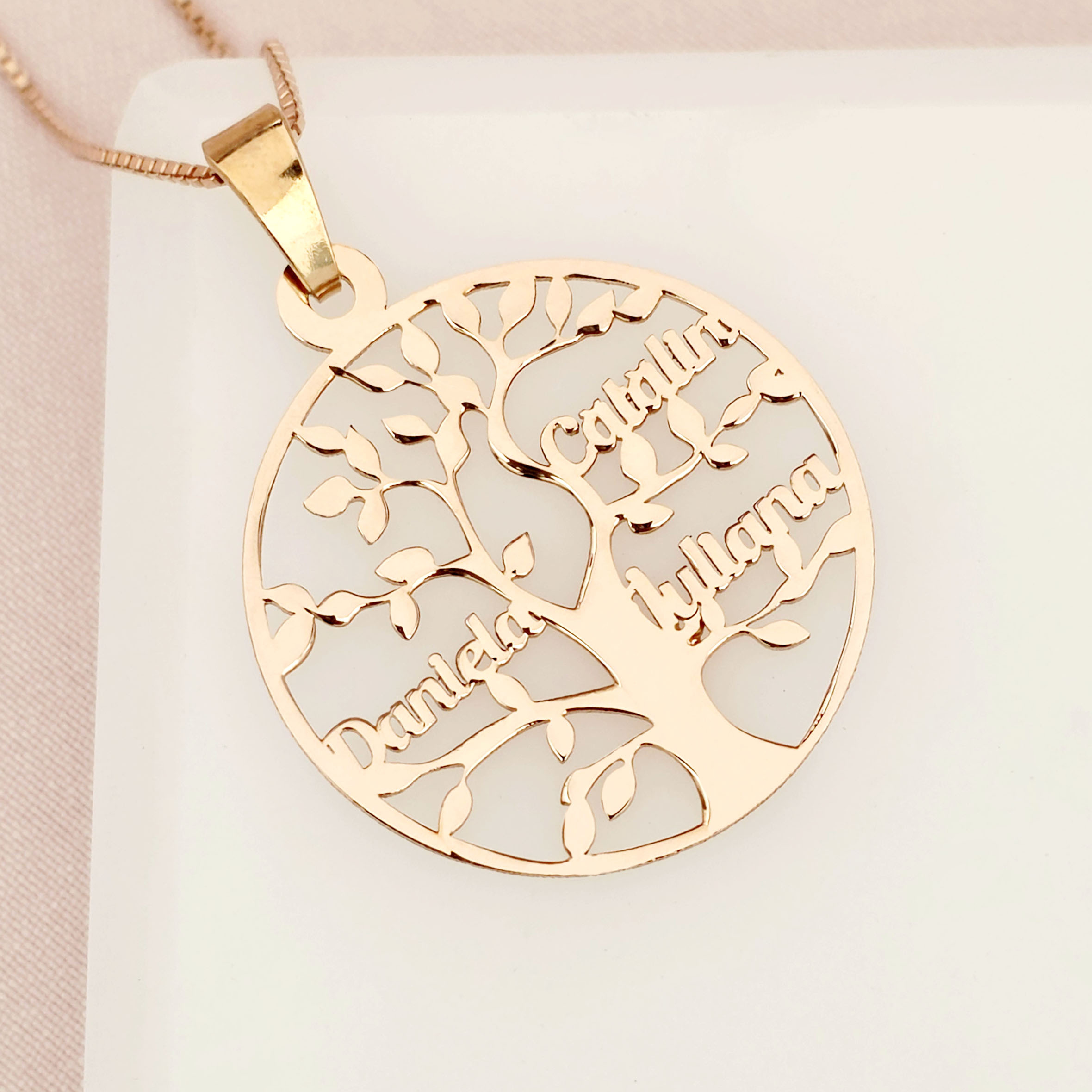 Lantisor premium - Copacul Vietii - personalizat cu nume - Argint 925 placat cu Aur roz 18K