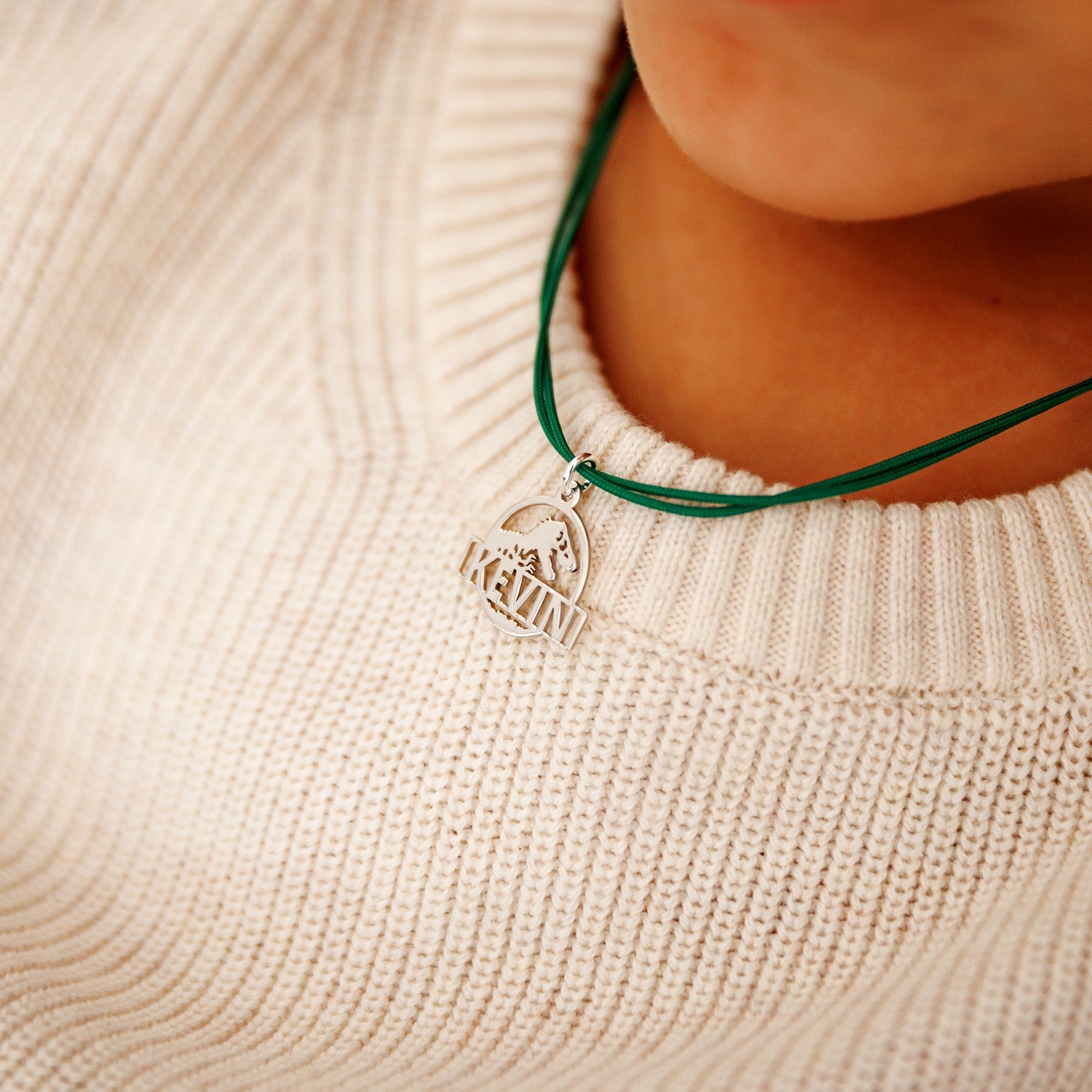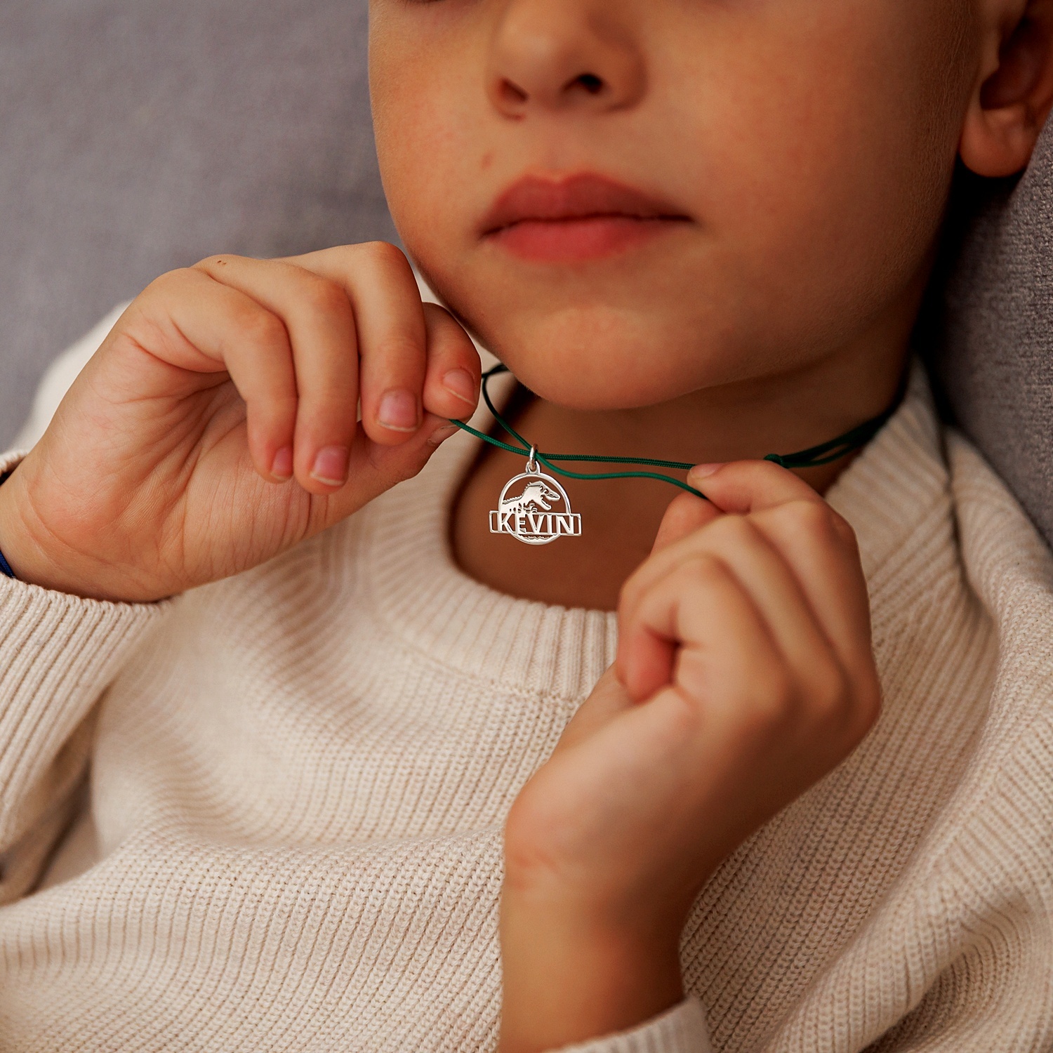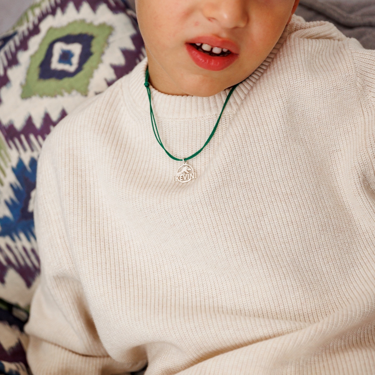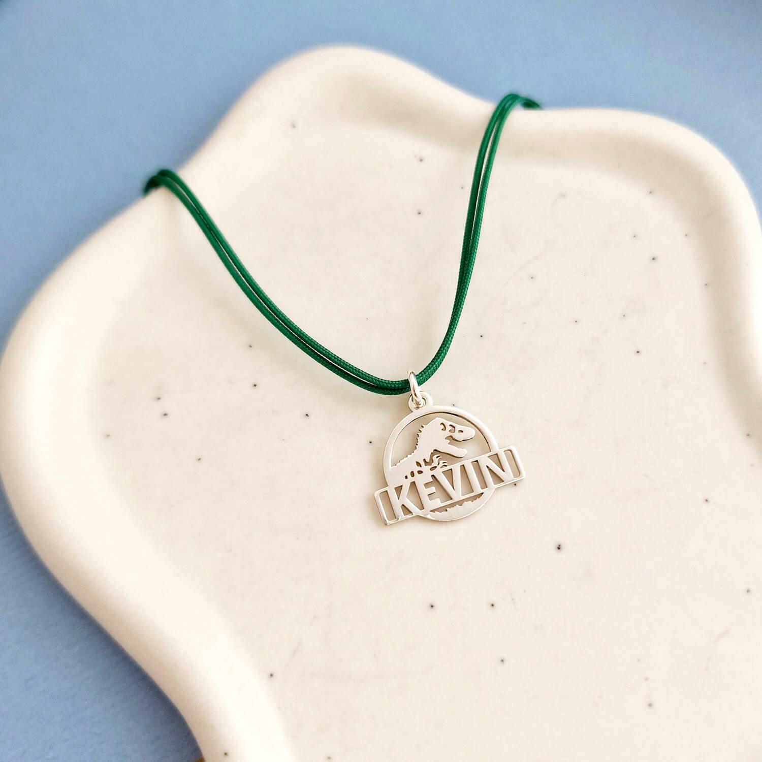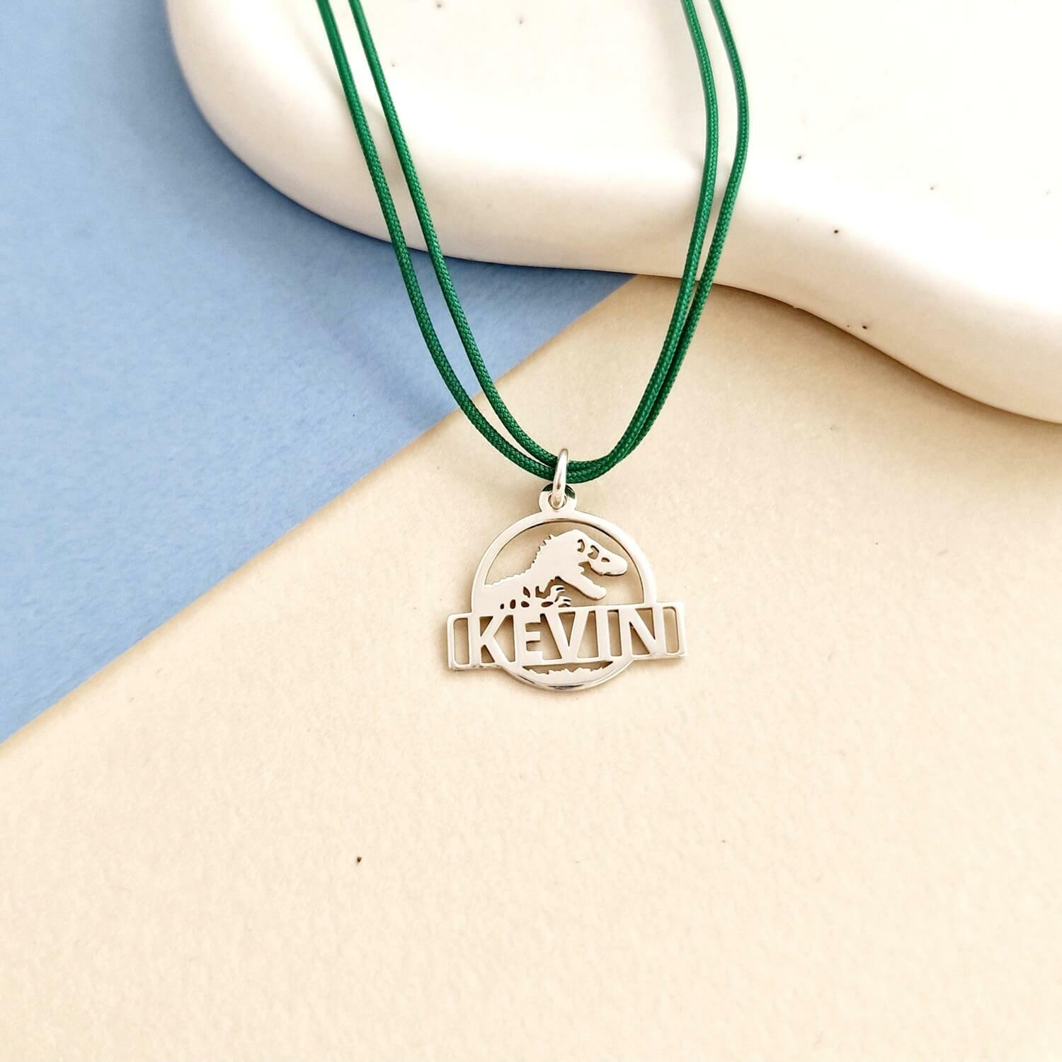 Pandantiv Jurassic Adventure - Personalizat cu nume - Argint 925 - Snur colorat