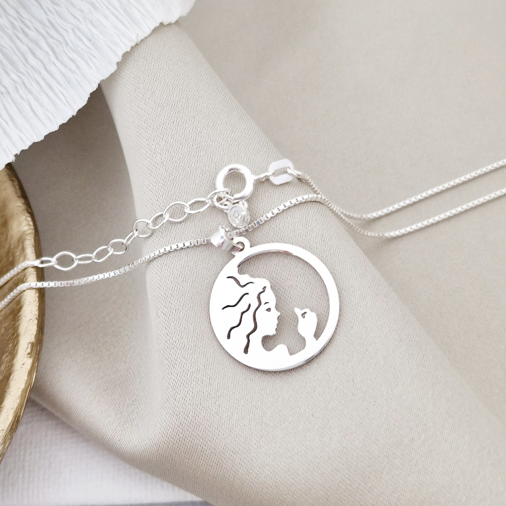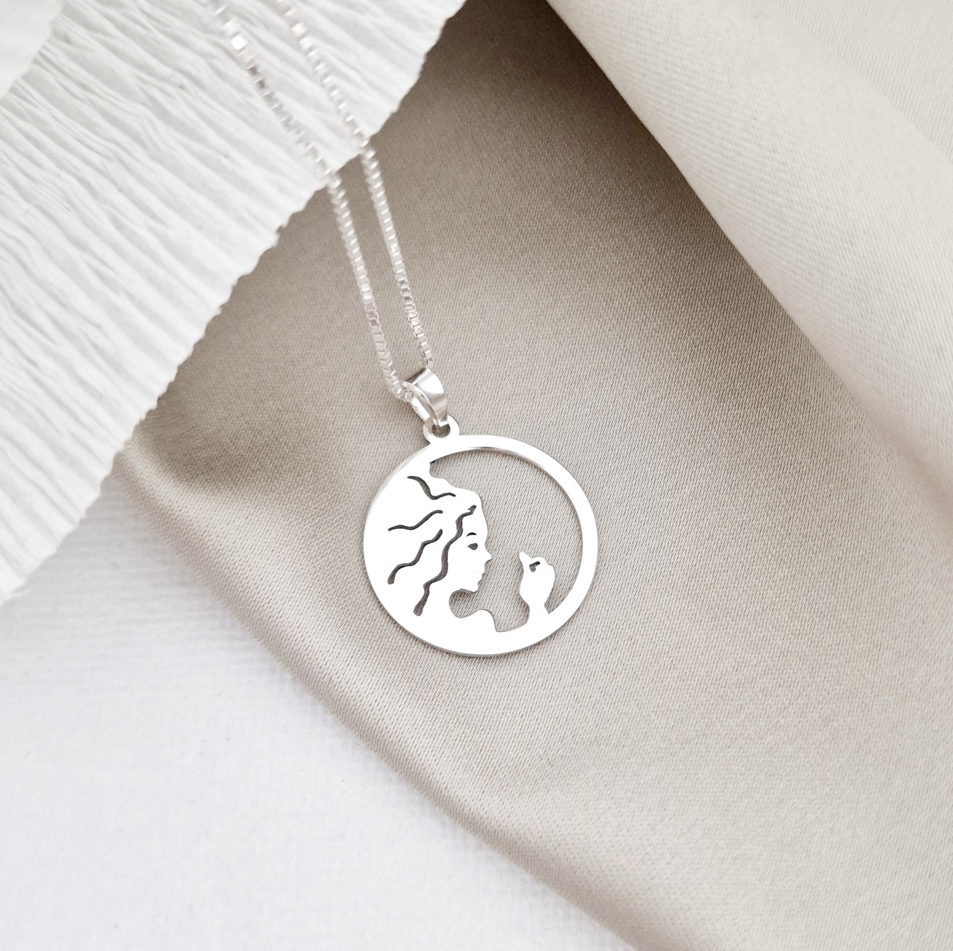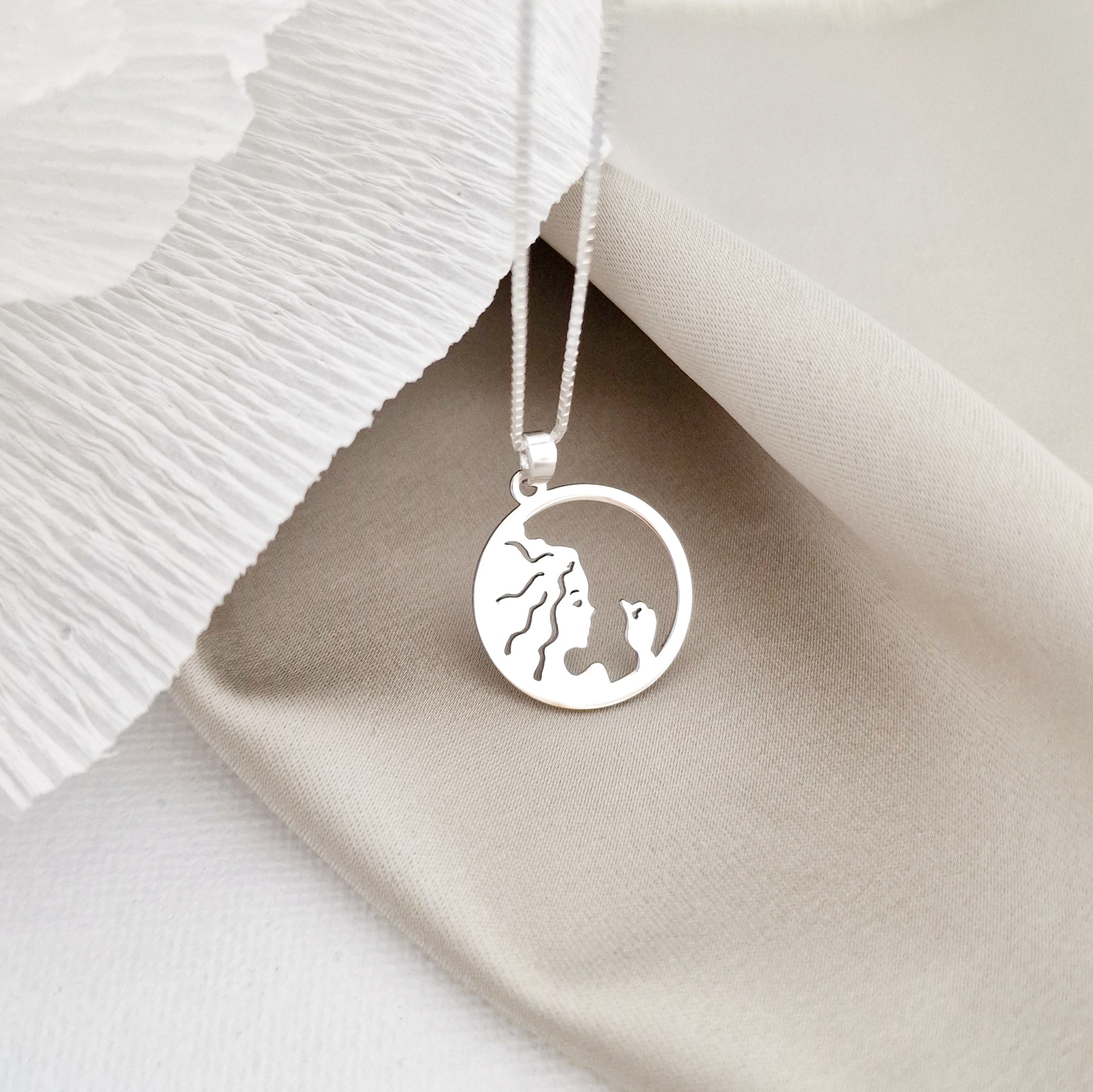 Lantisor zodia ta in armonie - Pandantiv disc cu simbol Fecioara - Argint 925
