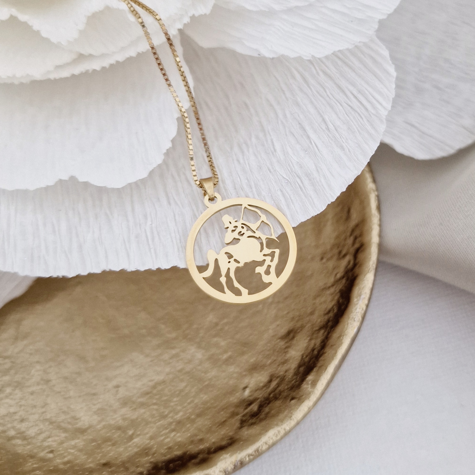Cercul simbolizeaza eternitatea si unitatea, iar simbolul zodiei este un omagiu adus trasaturilor si calitatilor tale astrologice unice. Acest lantisor este un cadou perfect pentru tine sau pentru cineva special, si cu siguranta va afuce magia zodiei in centrul atentiei.