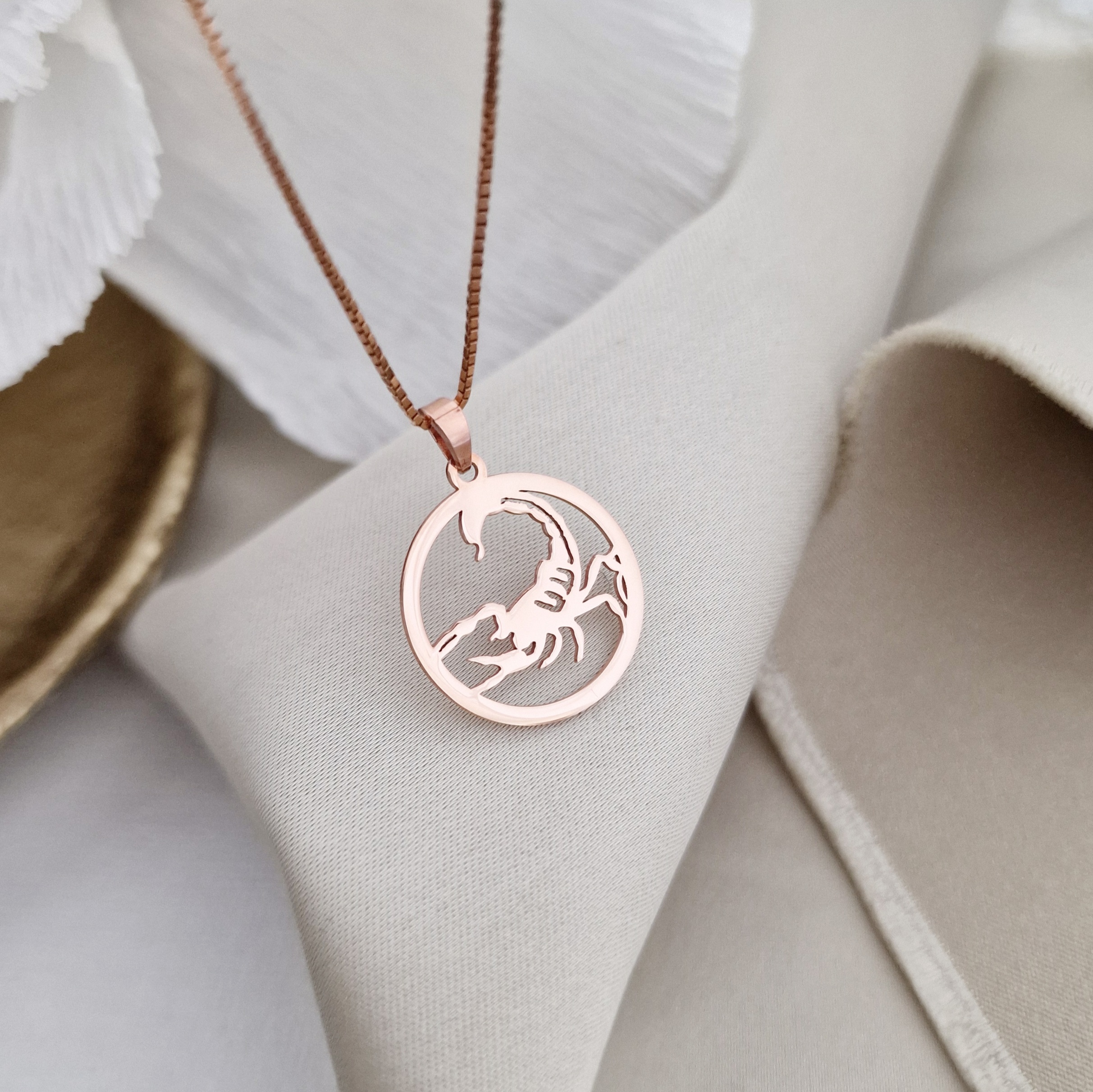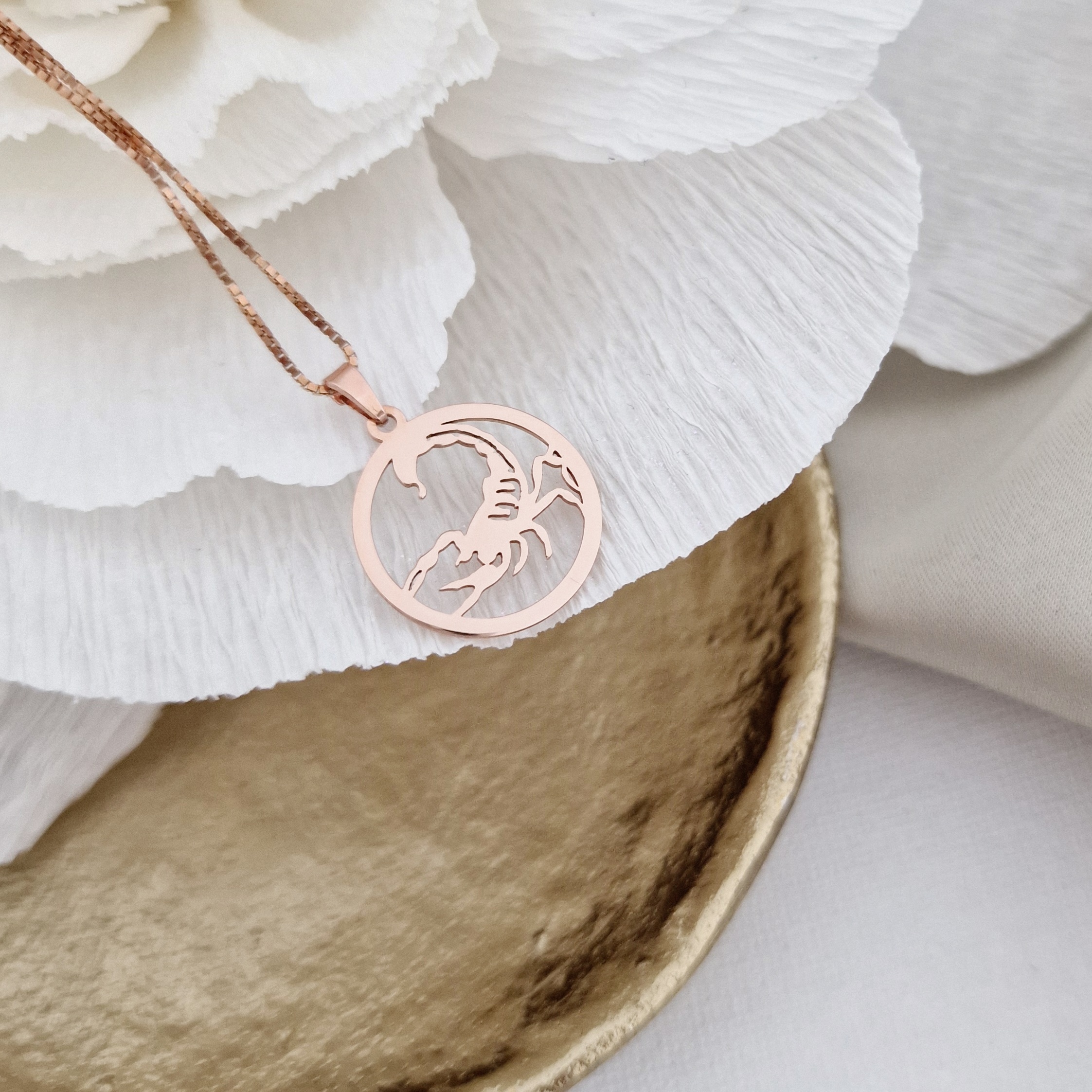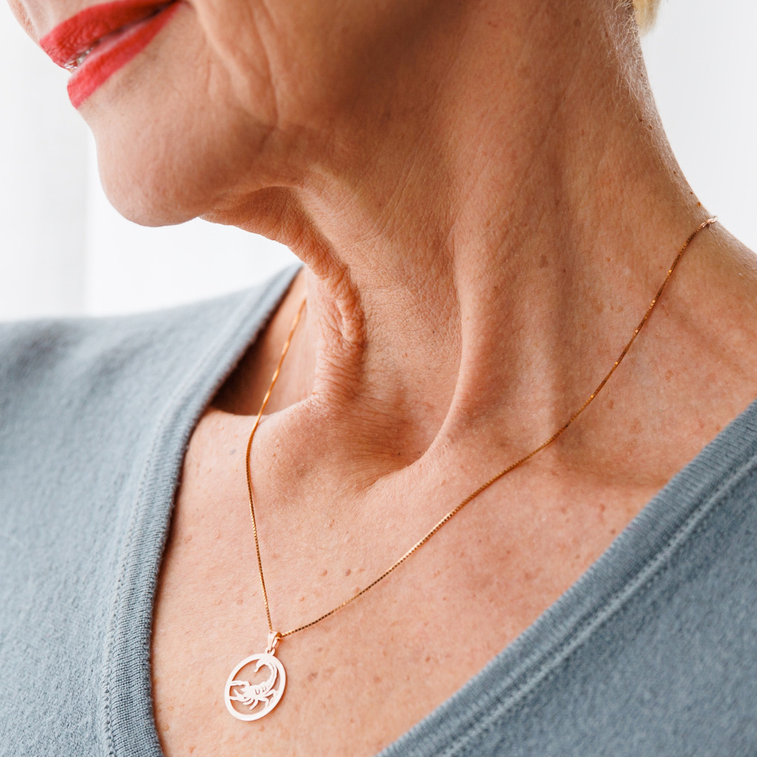 Lantisor zodia ta in armonie - Pandantiv disc cu simbol Scorpion - Argint 925 placat cu Aur Roz 18K