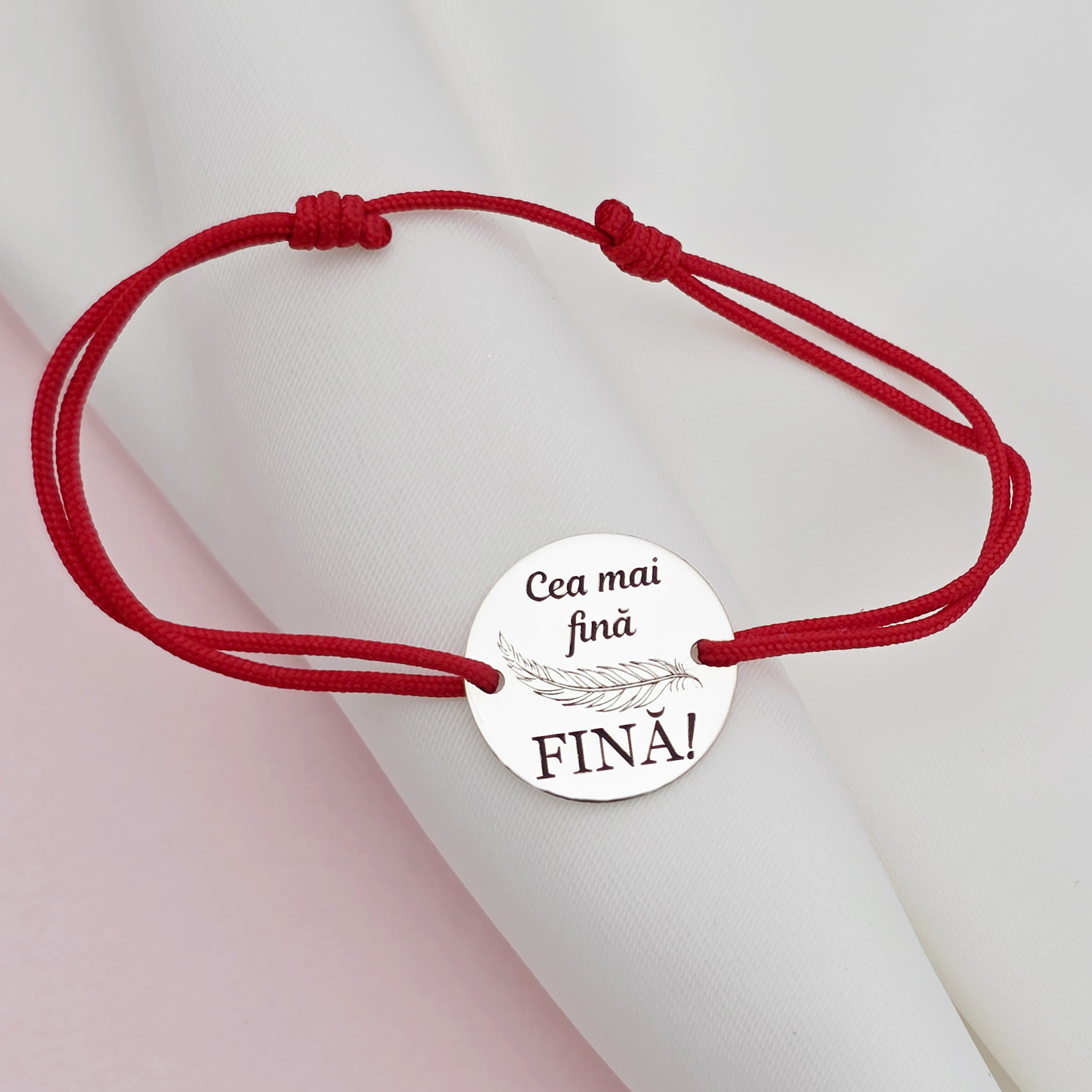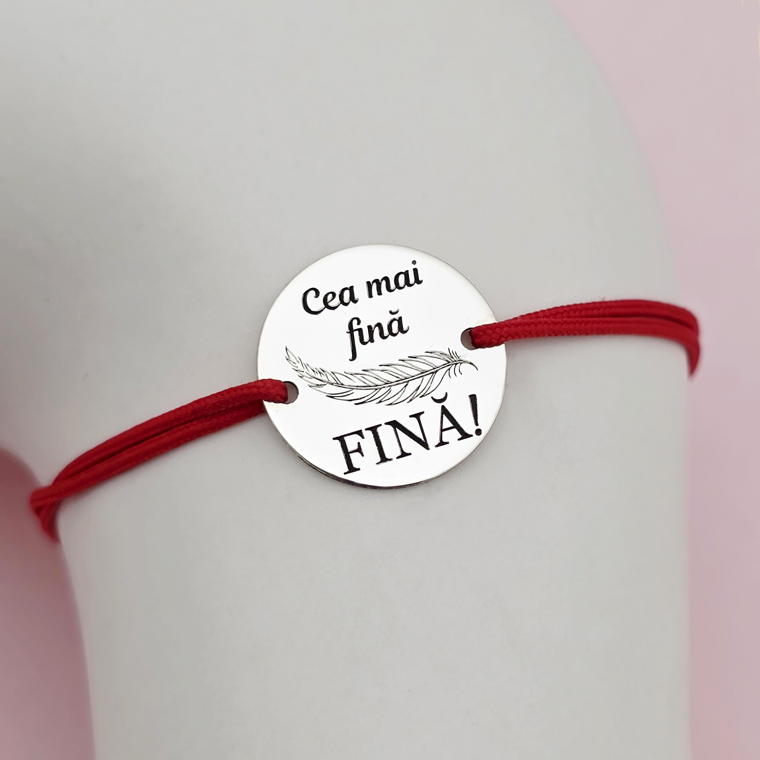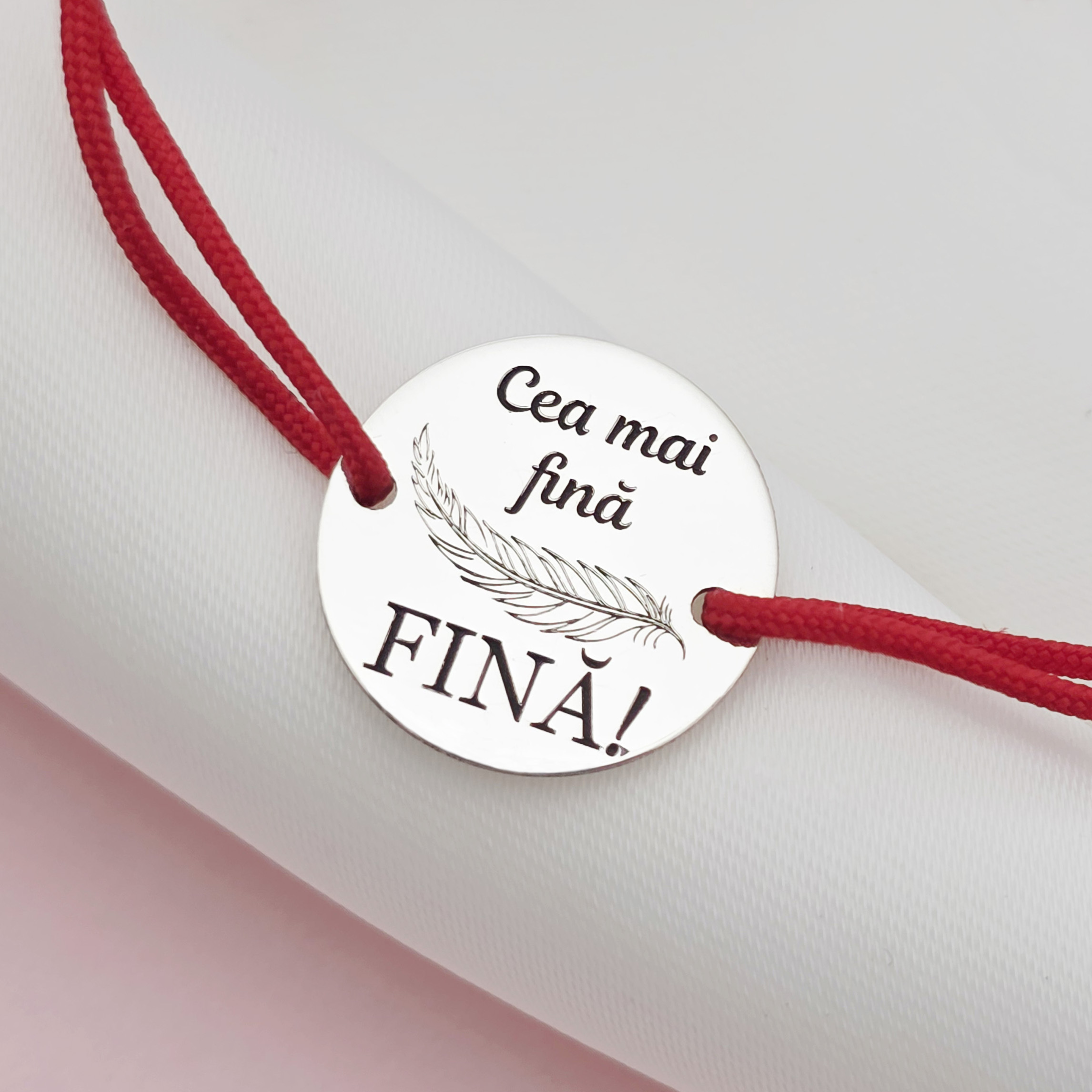 Aceasta bratara care poarta mesajul "Cea mai fina Fina", este o bijuterie delicata, care simbolizeaza legatura puternica dintre fina si familia sa. Mesajul gravat evidentioaza afectiunea si apropierea dintre fina si nasii sai, subliniind statutul sau special in familie.