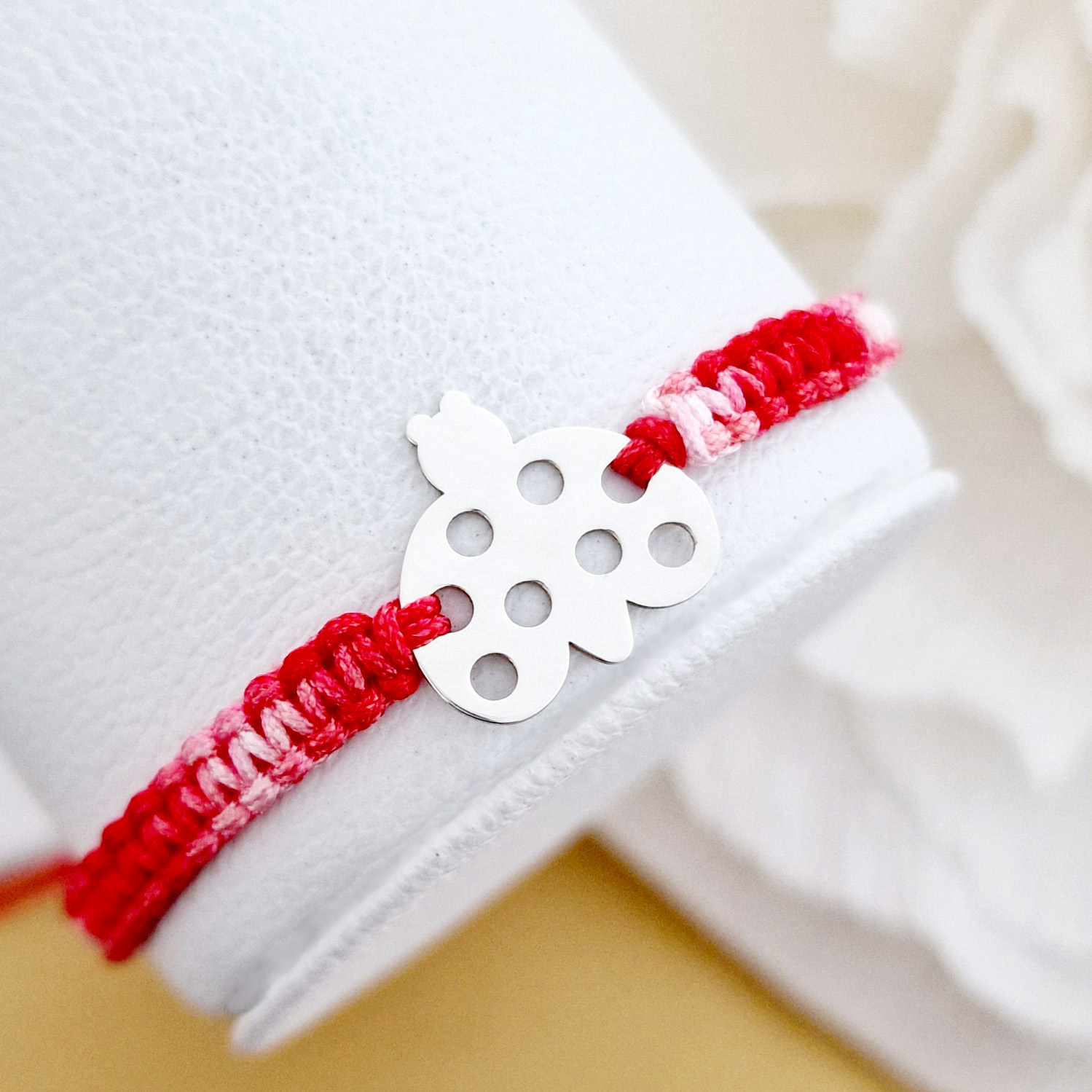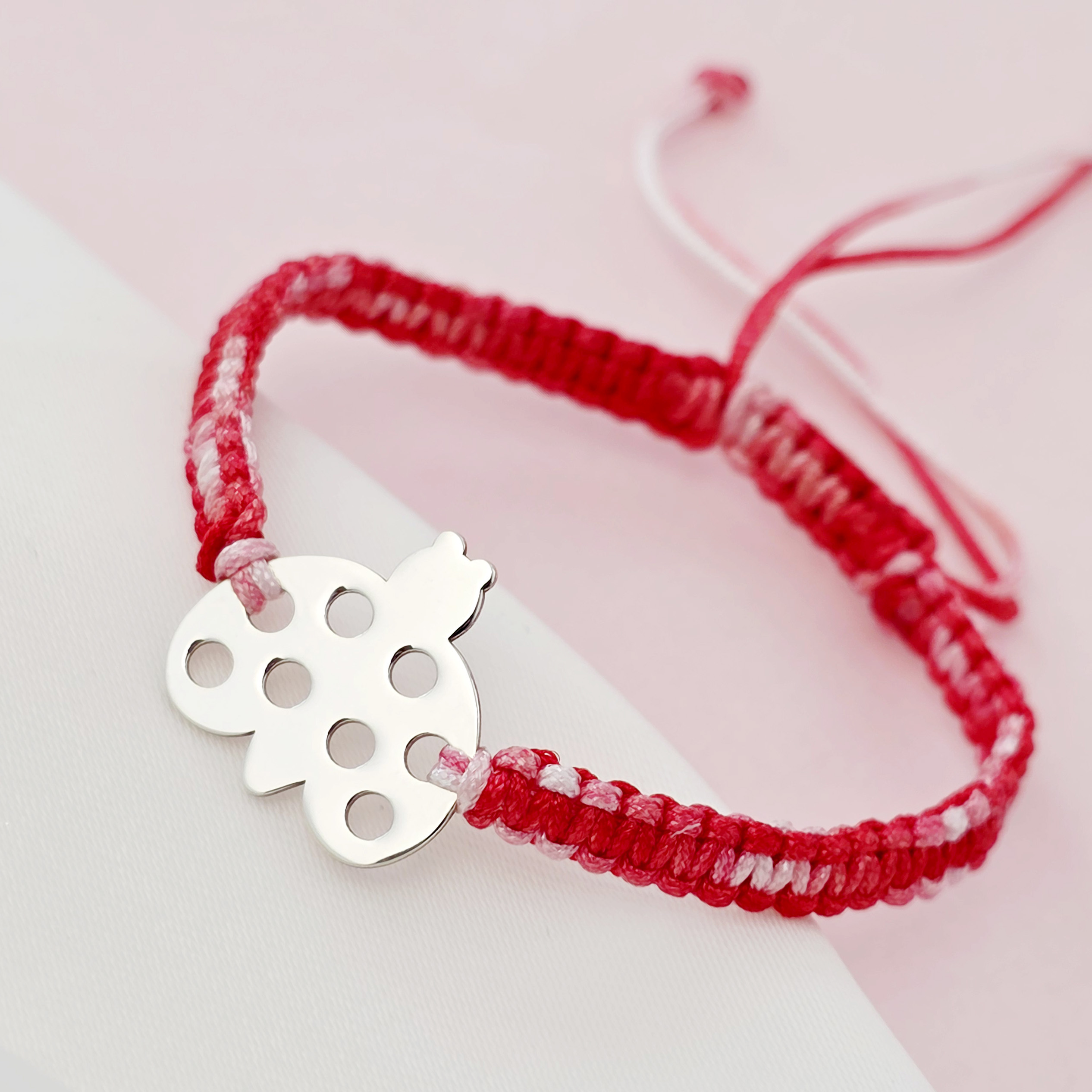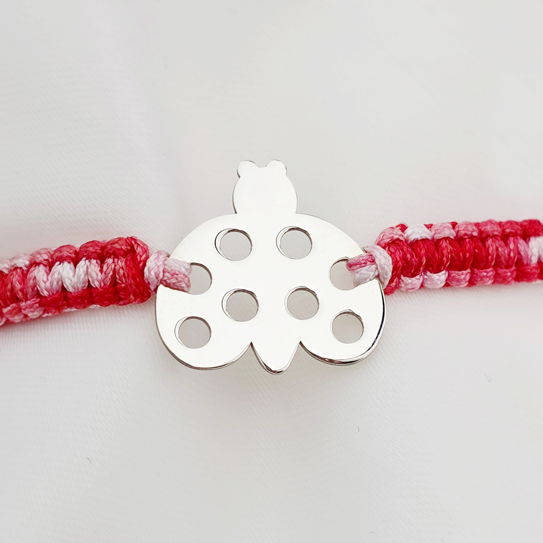Bratara Martisor - Simbol buburuza din Argint 925 - Snur impletit rosu&alb