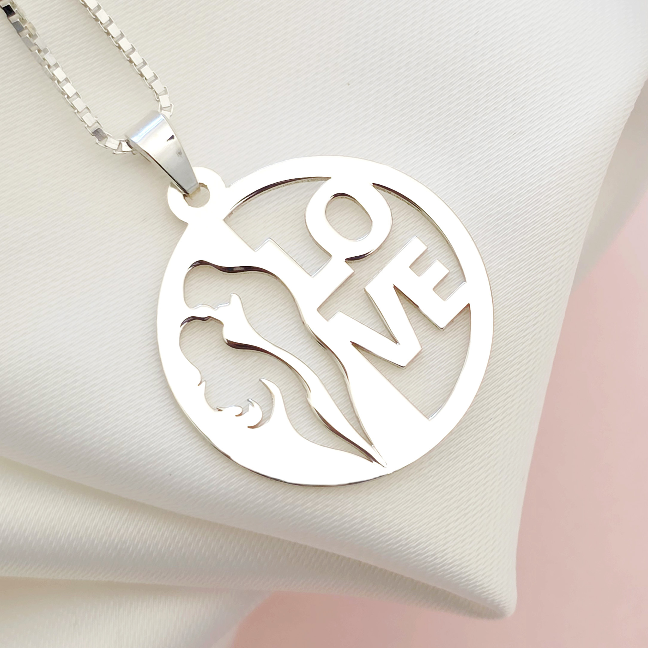 Lantisor cu pandantiv banut - Simbol cuplu decupat - Lant box - Argint 925