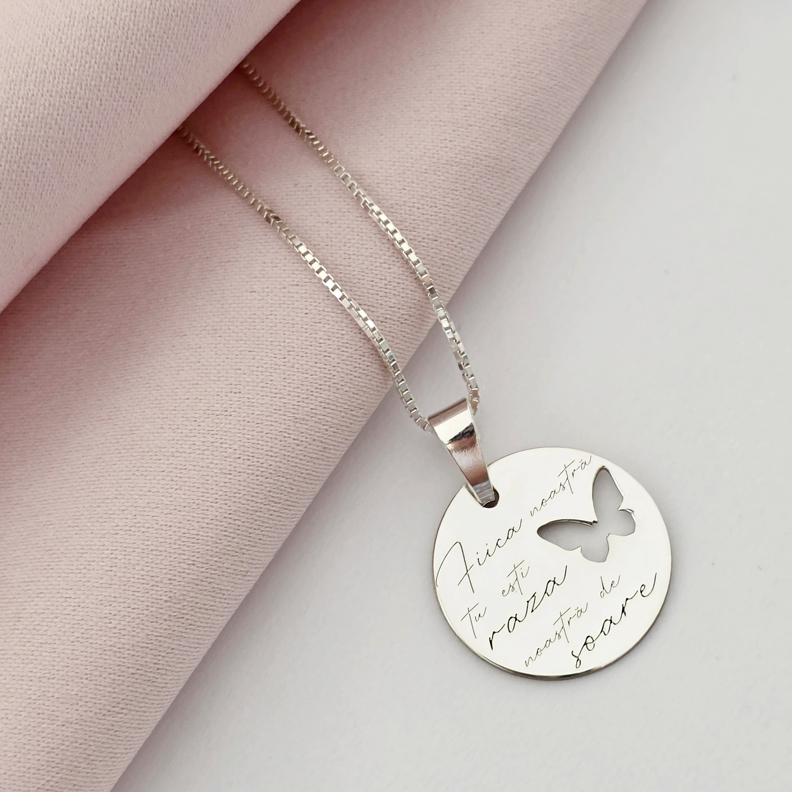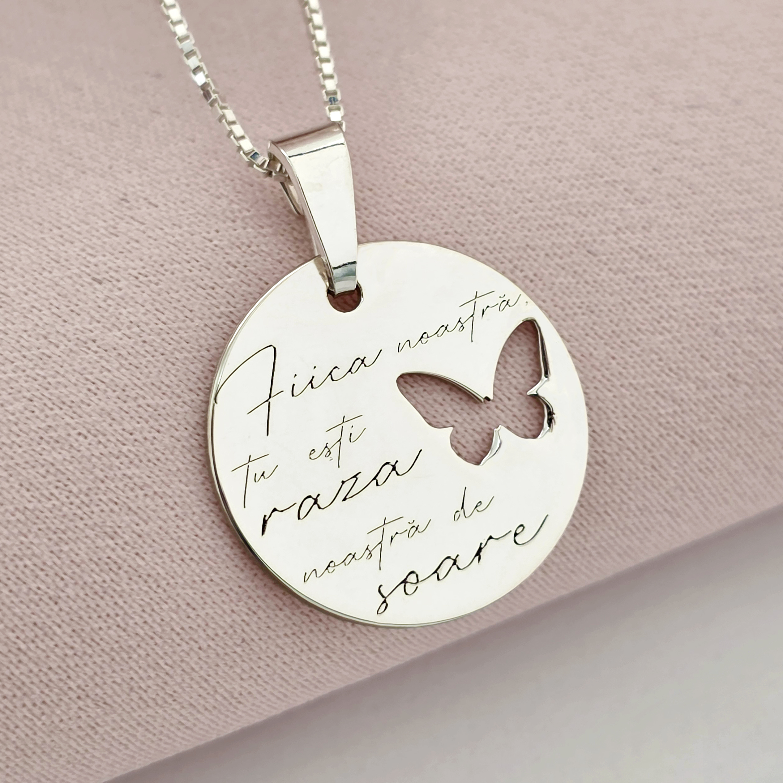 Lantisor cu pandantiv Fiica - Raza de soare - Model banut 18 mm cu fluture decupat - Argint 925