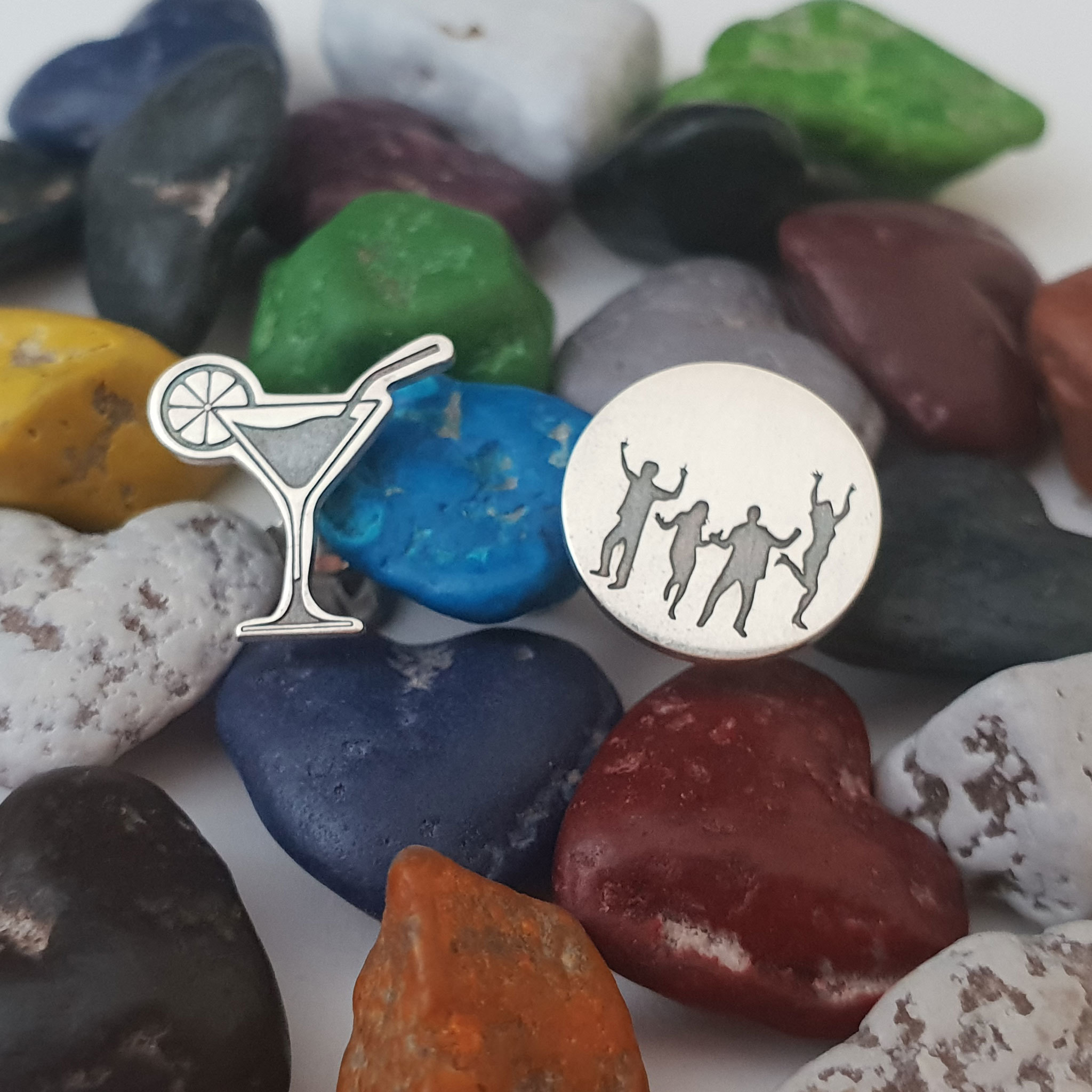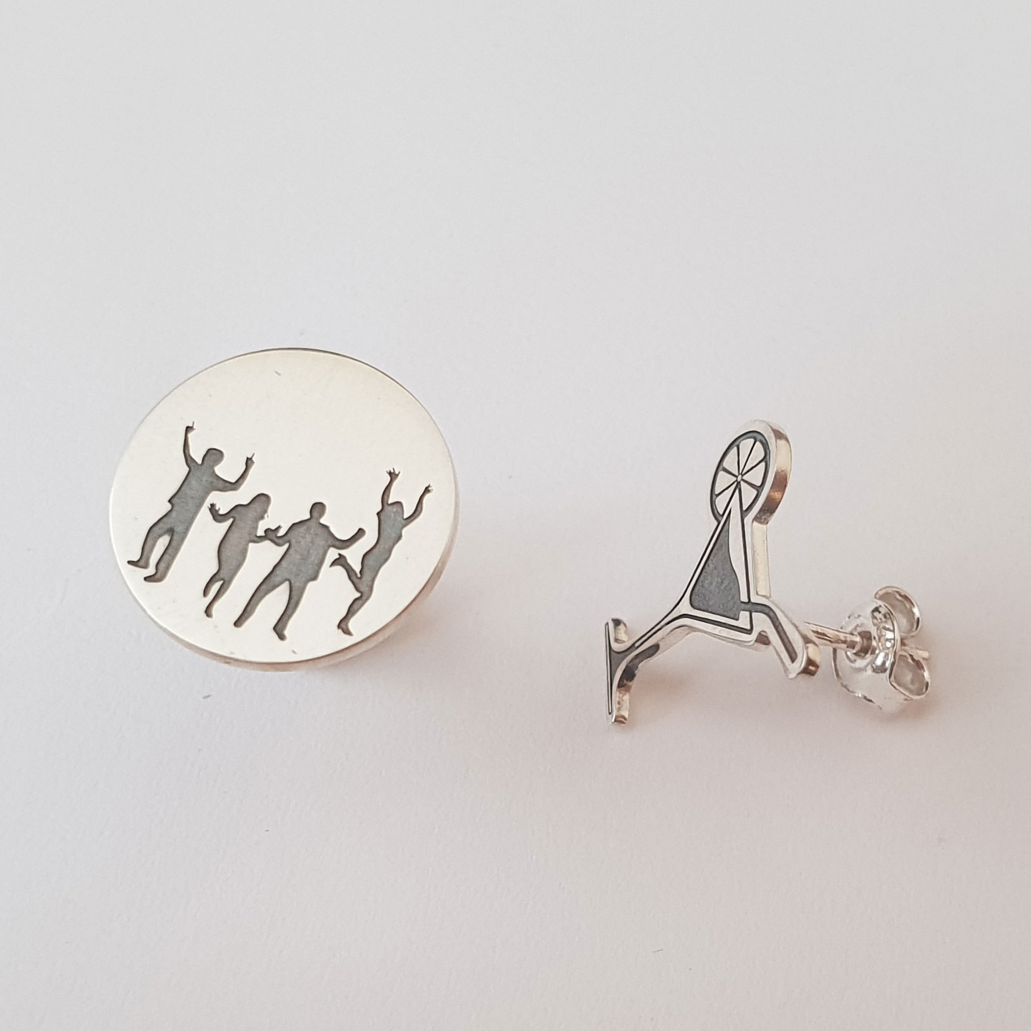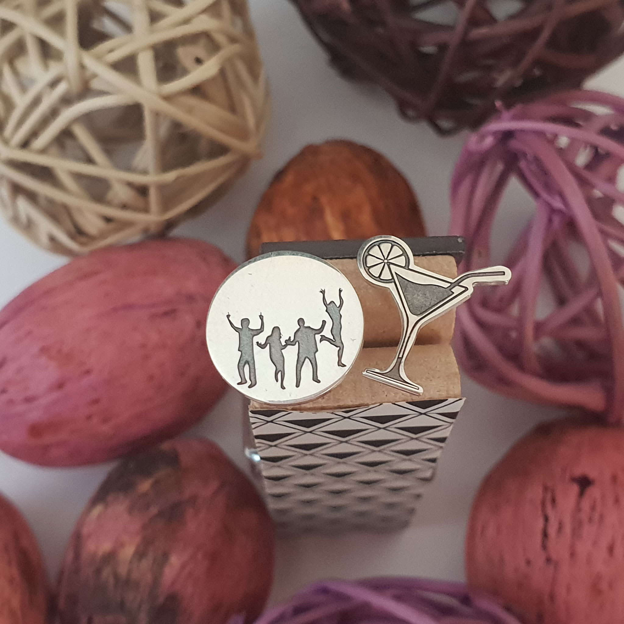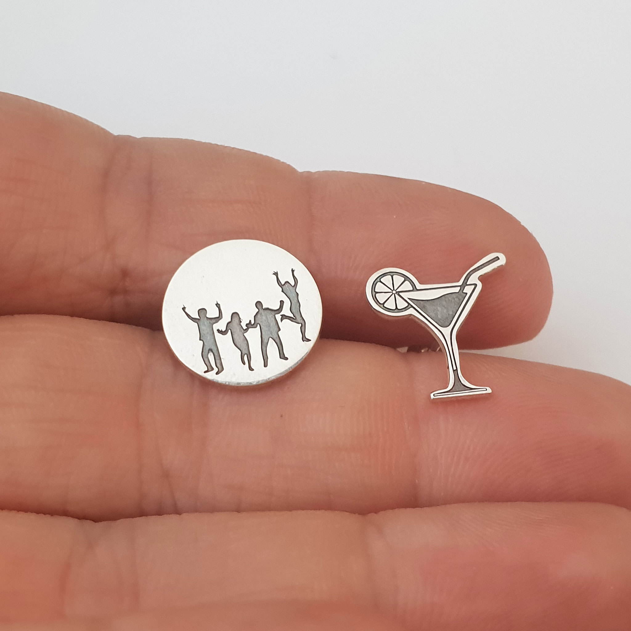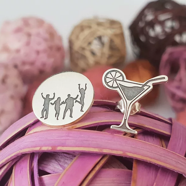 Cerceii sunt reprezentati de un mic si dragut cocktail si de un banut cu un grup de oamnei care danseaza gravati pe el. Acestia sunt creati din Argint 925 in atelierul nostru prin gravare si taiere laser de ultima generatie si sunt finisati cu maiestrie de bijutierii chic.