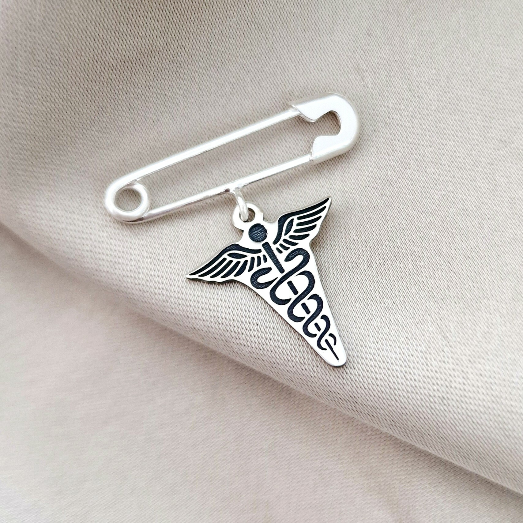 Brosa Ac de siguranta - Pandantiv Caduceus – Argint 925