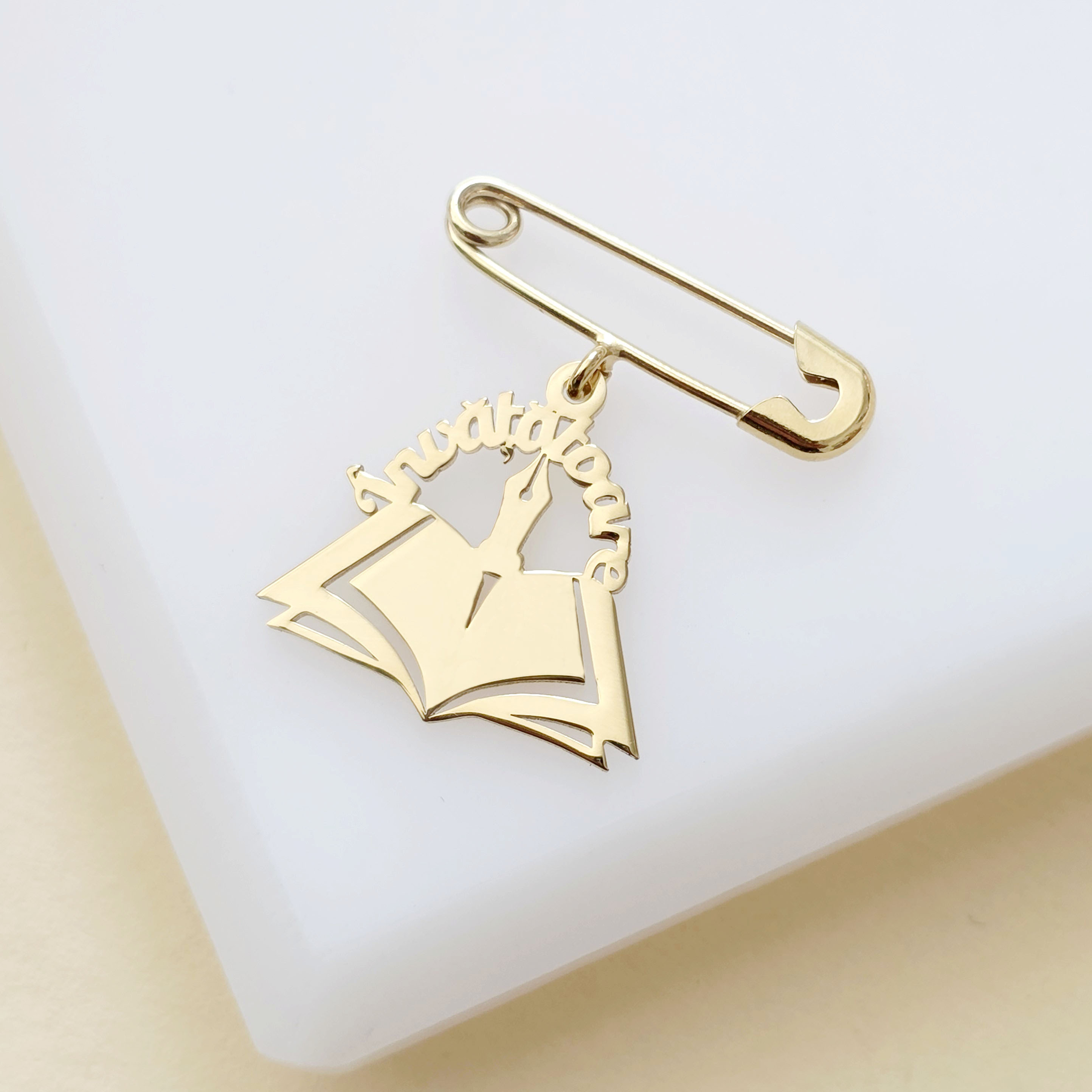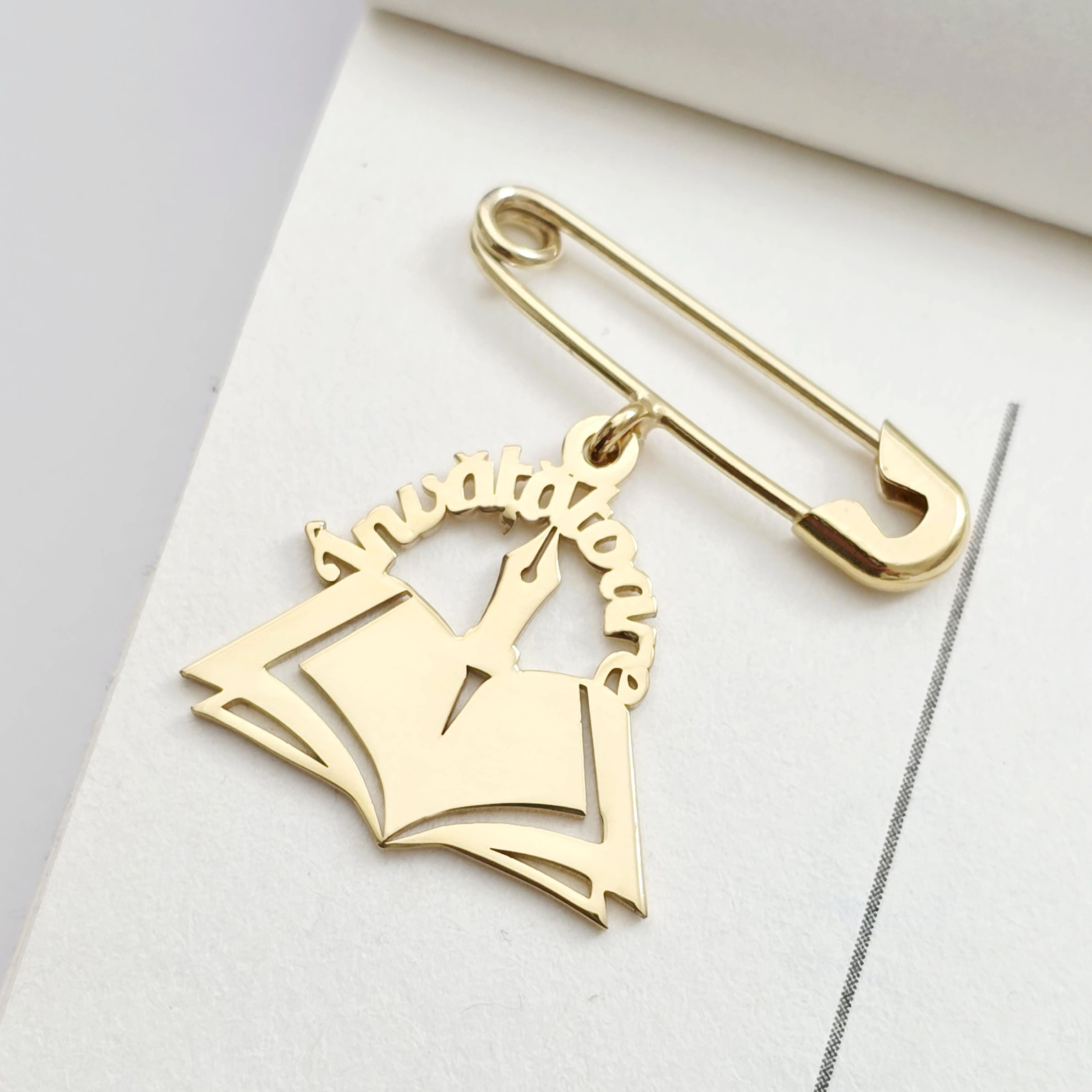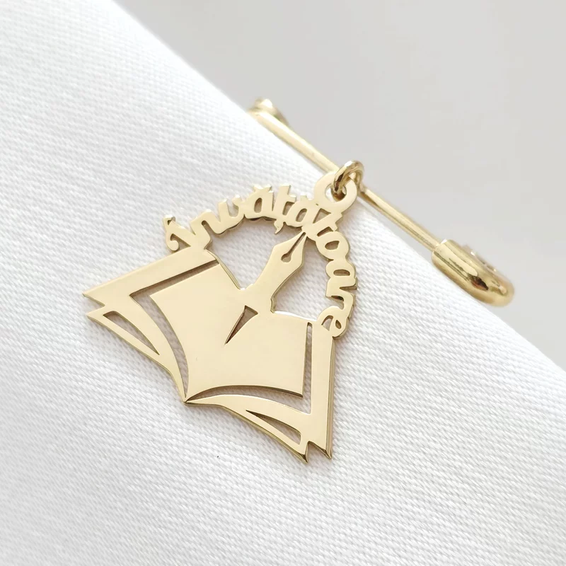 Brosa Ac de siguranta - Pandantiv Carte Invatatoare – Argint 925 placat cu Aur Galben 18K