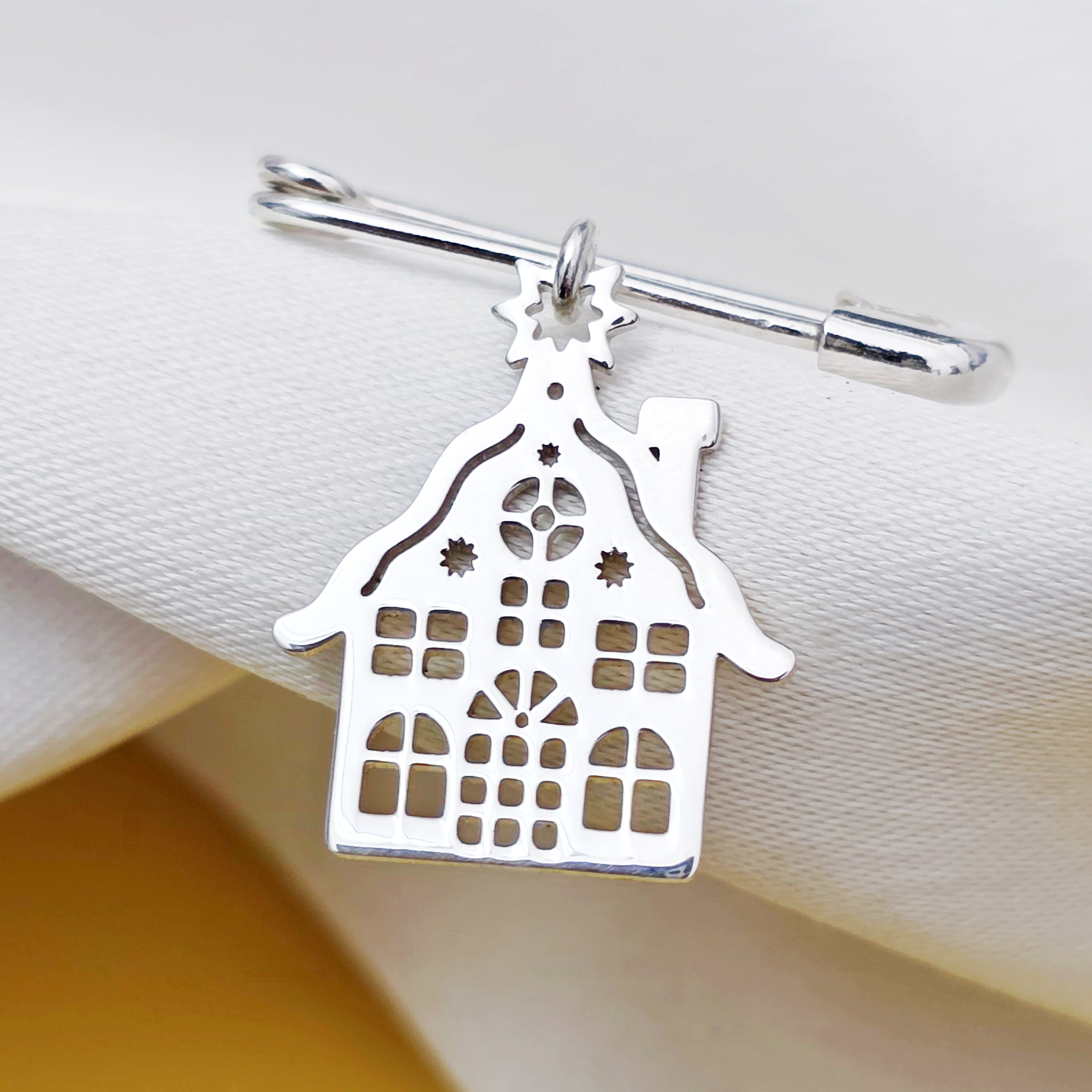 Brosa Ac de siguranta - Pandantiv Casuta decupata – Argint 925