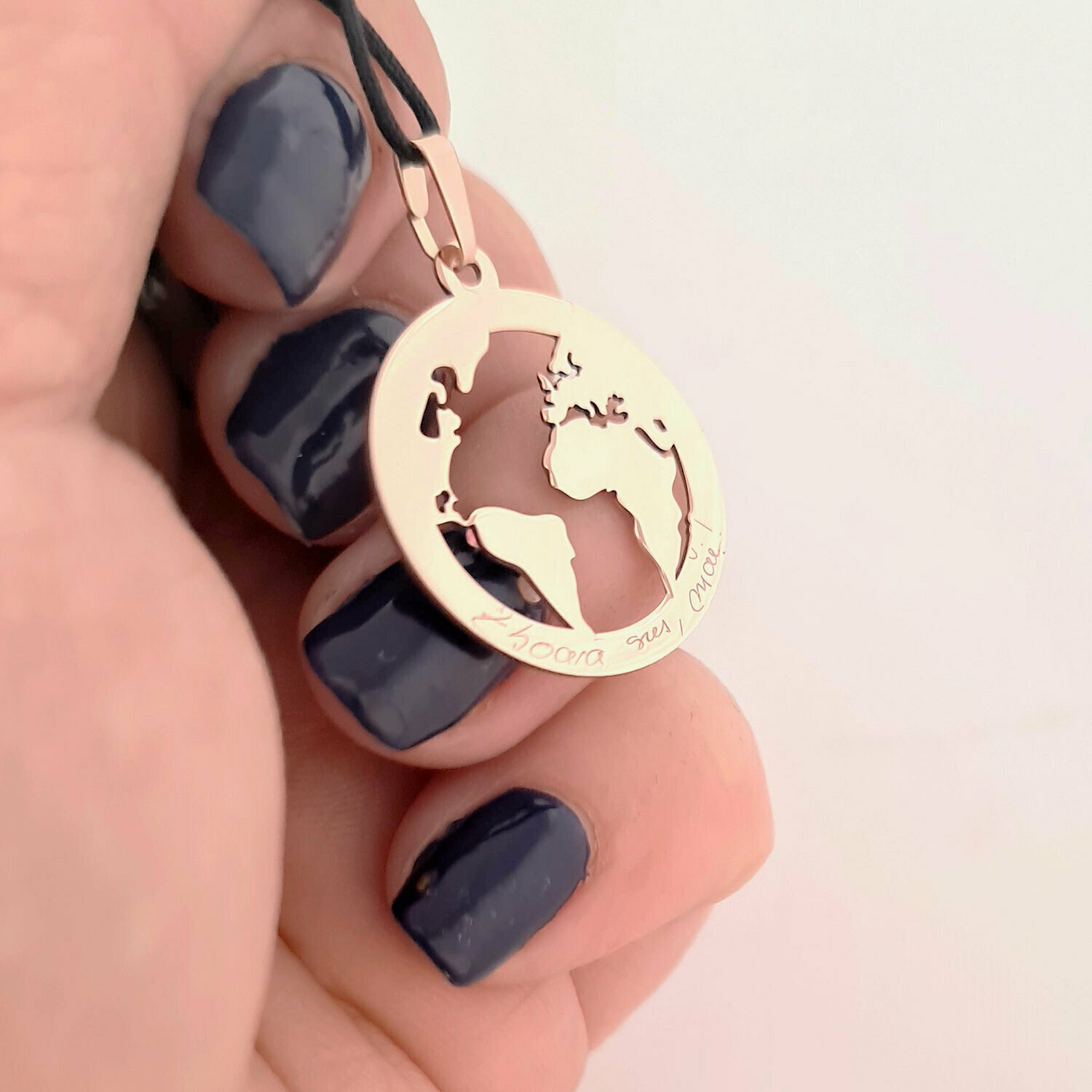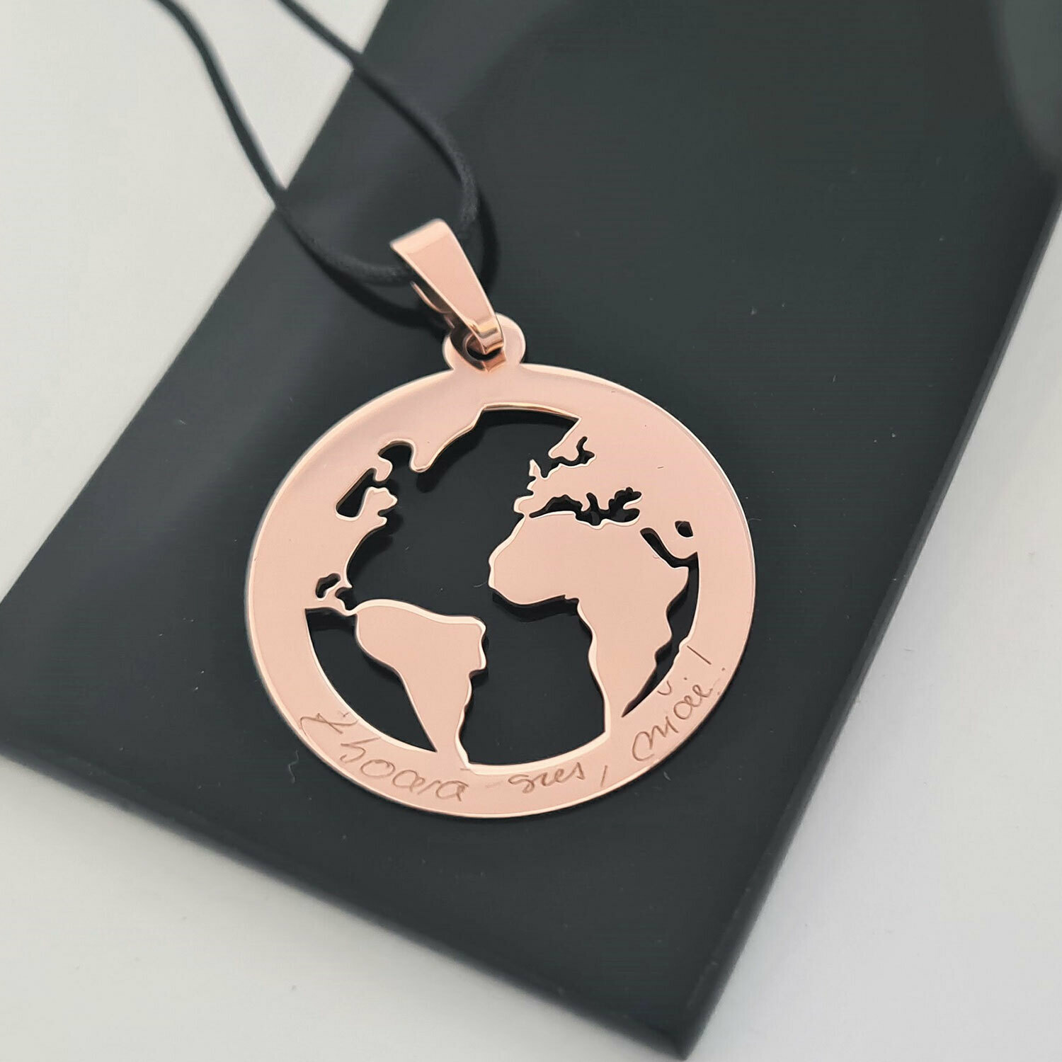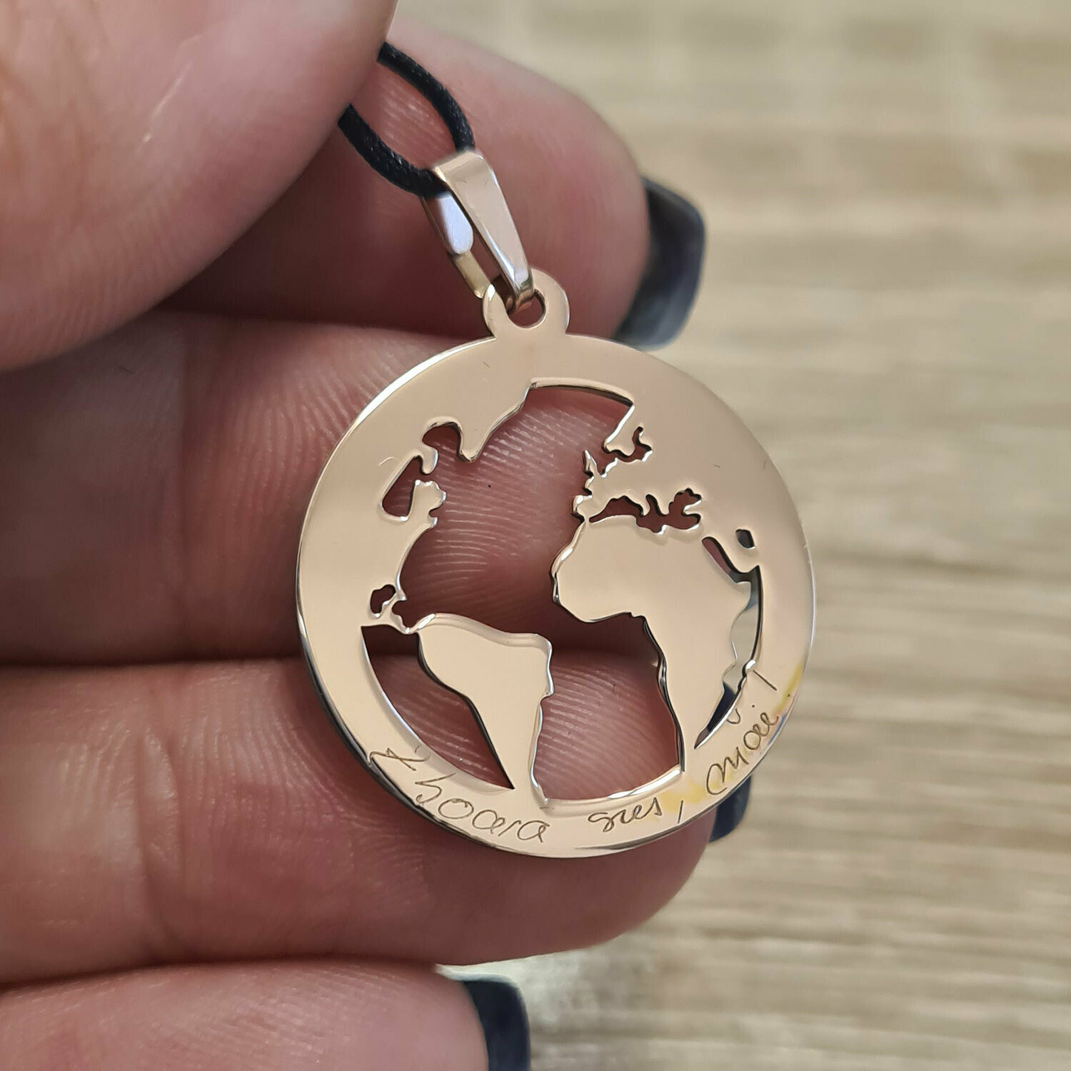 Pandantiv Globul Pamantesc 2D - Personalizat cu mesaj - Aur Roz 14K