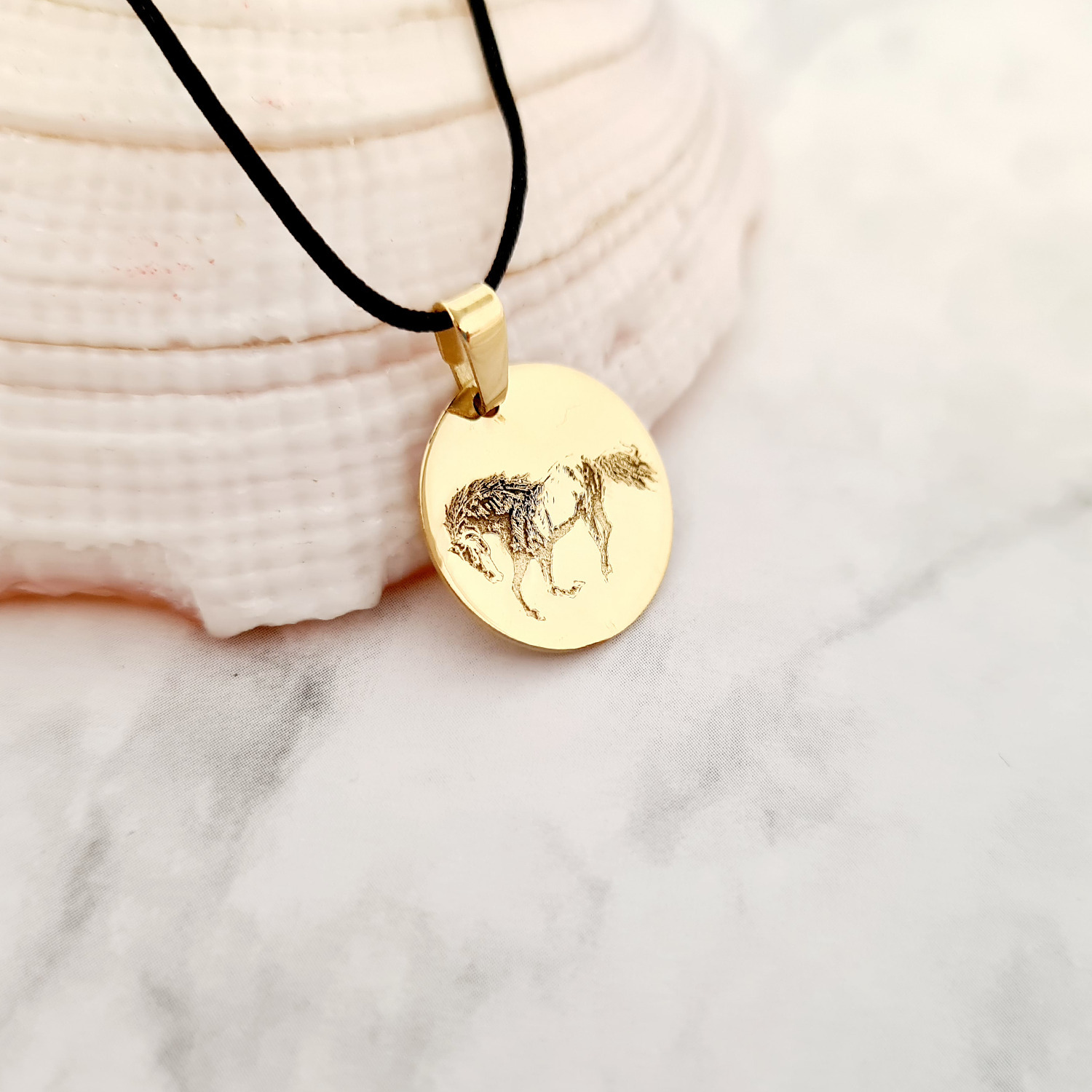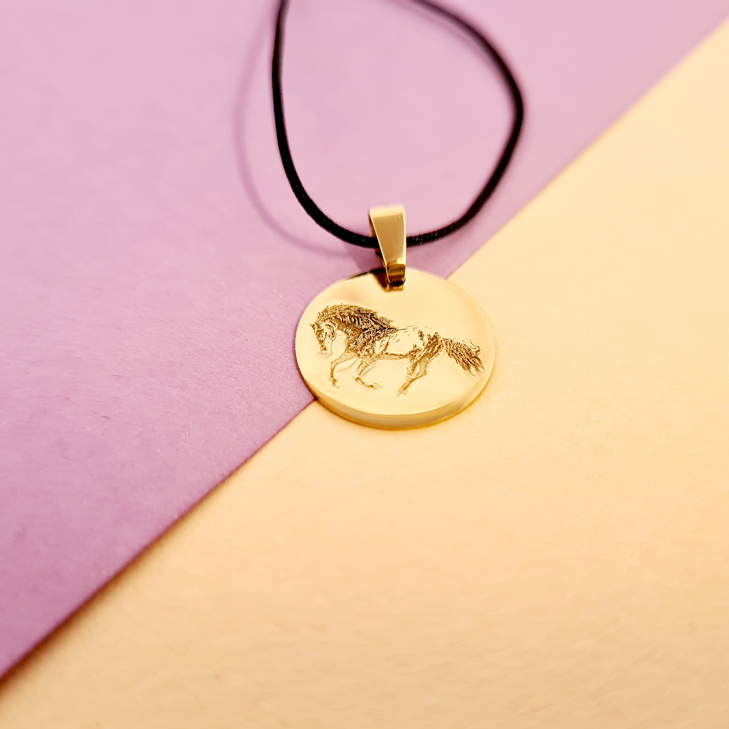 Pandantiv personalizat - Model cal - Banut de 15 mm - Aur Galben 14k