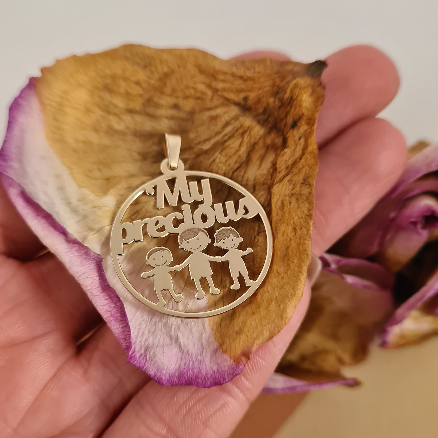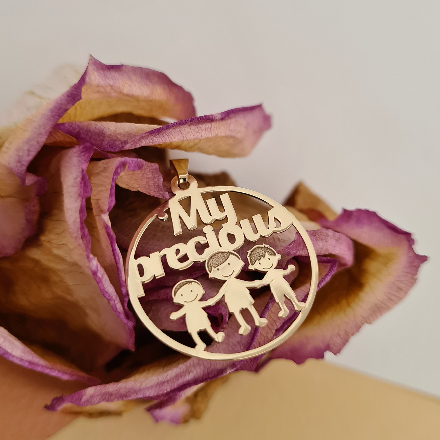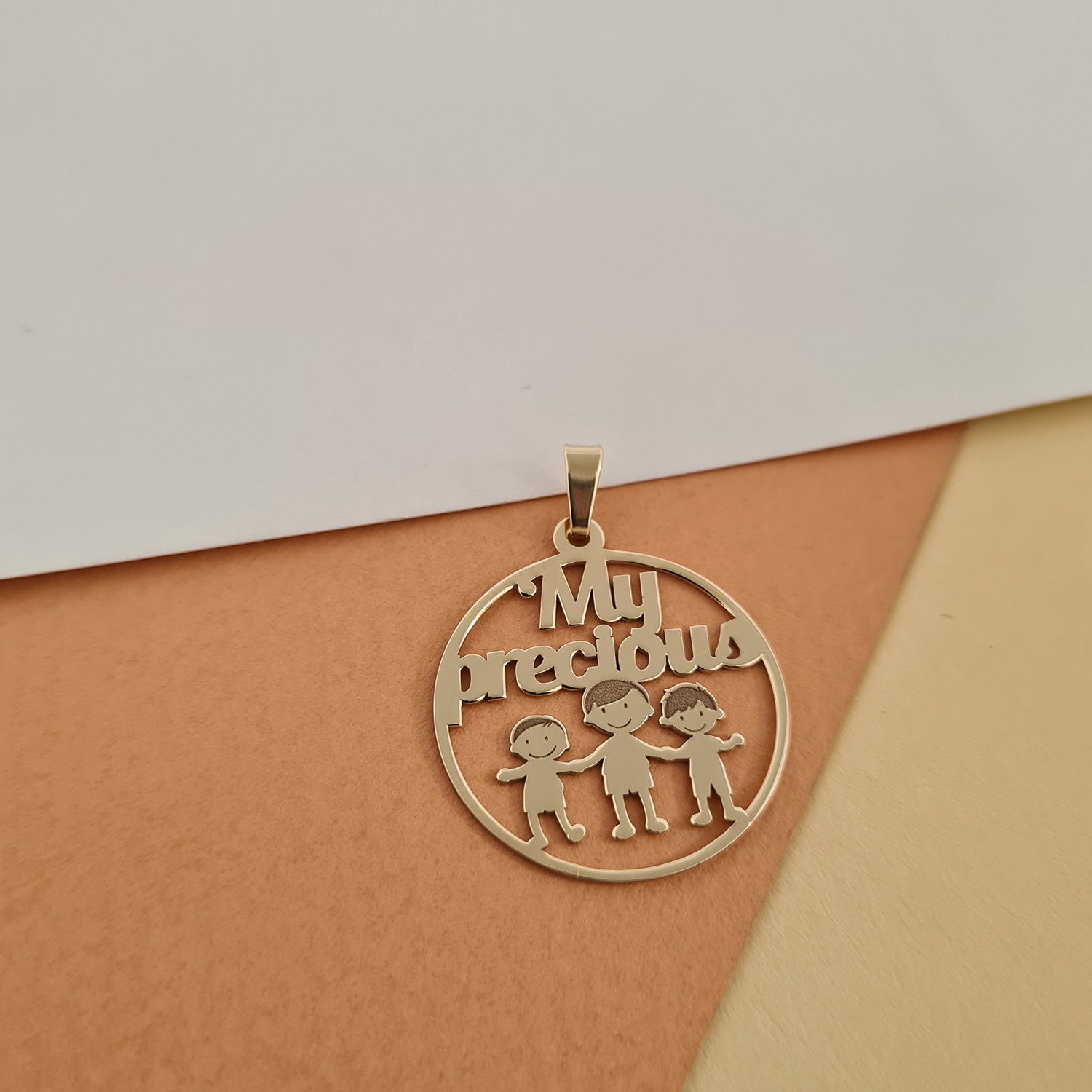 Pandantiv personalizat - My precious Family - 3 Membri - Aur Galben 14K