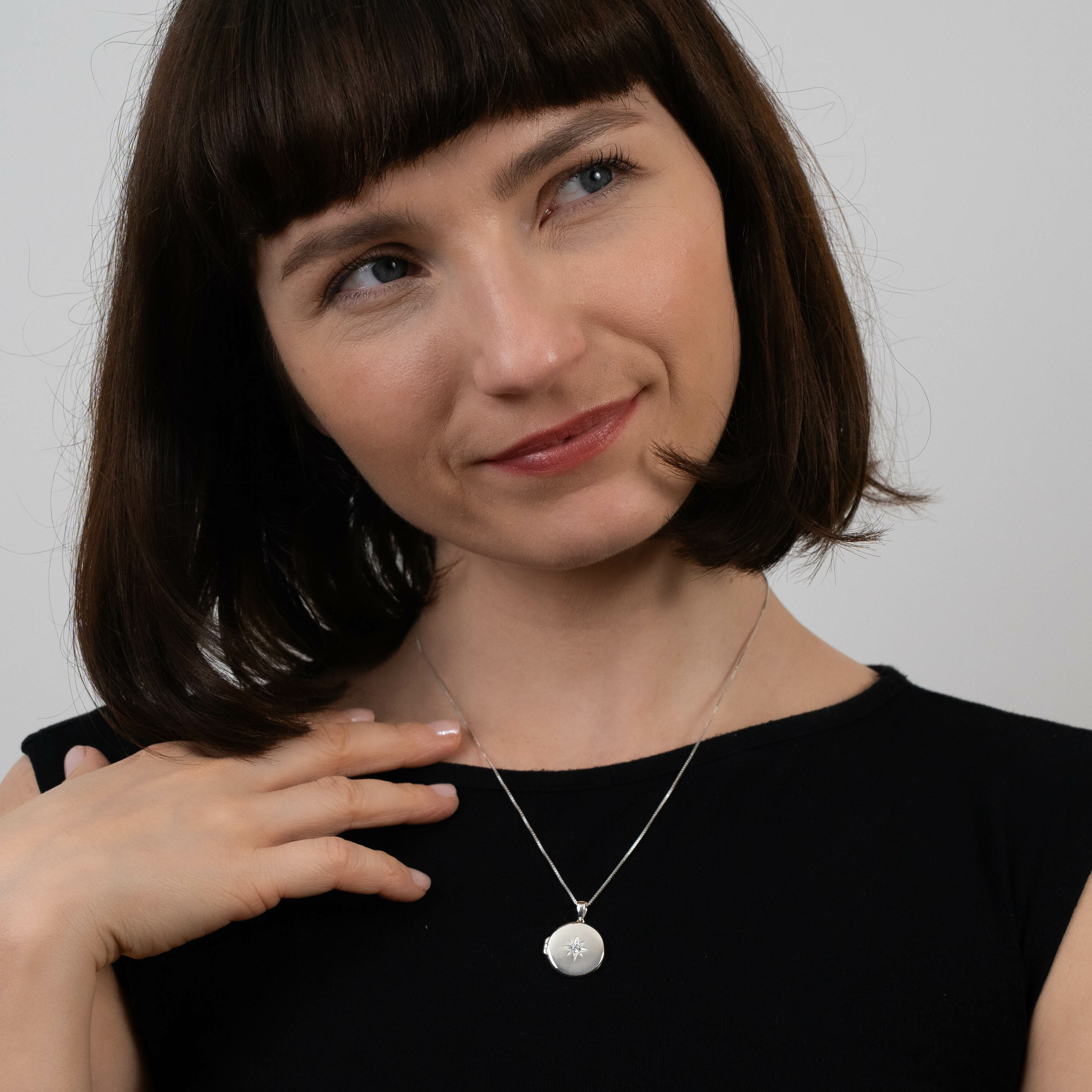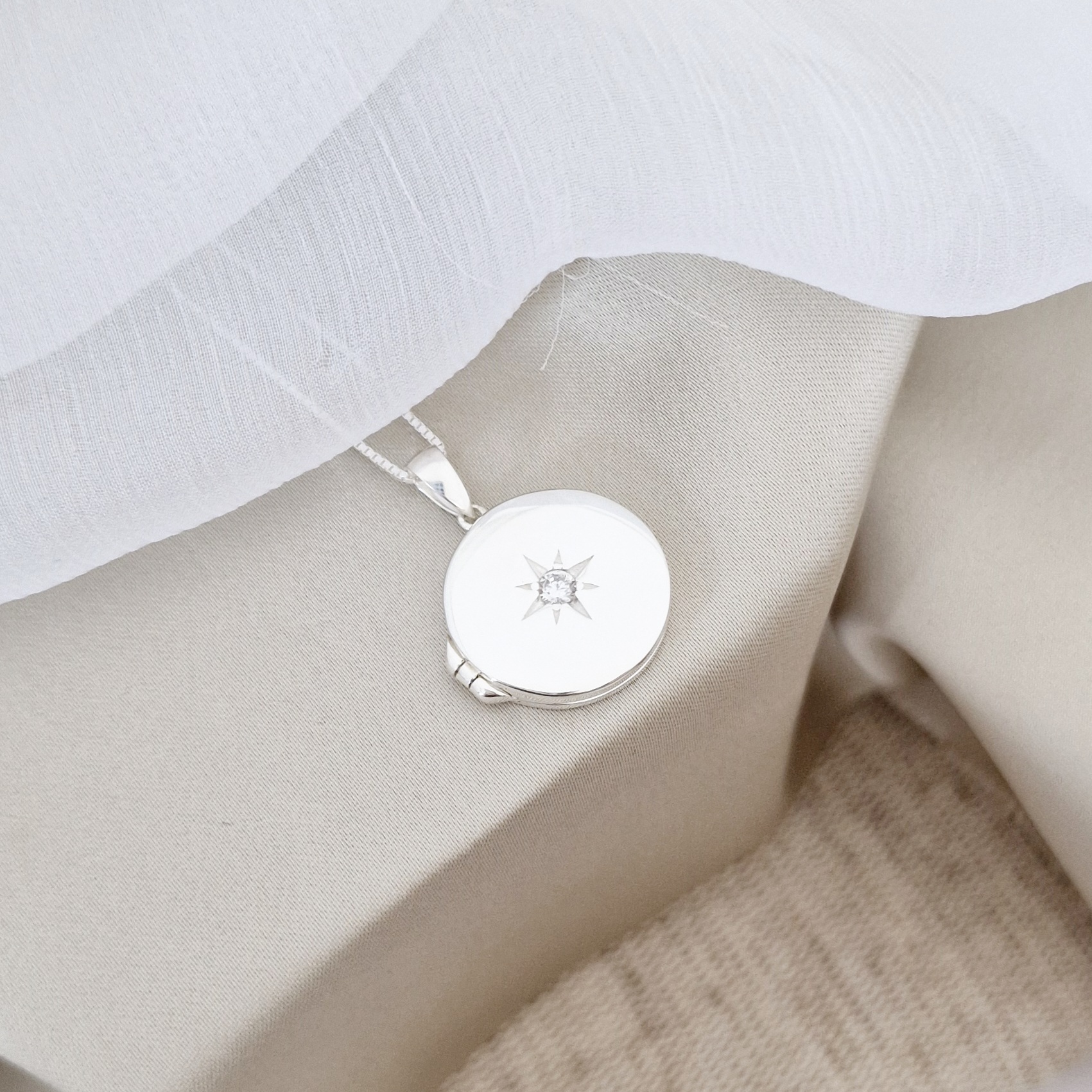Medalion Eterna stea - Locket cu poze in interior - Argint 925 si cristal Zirconia