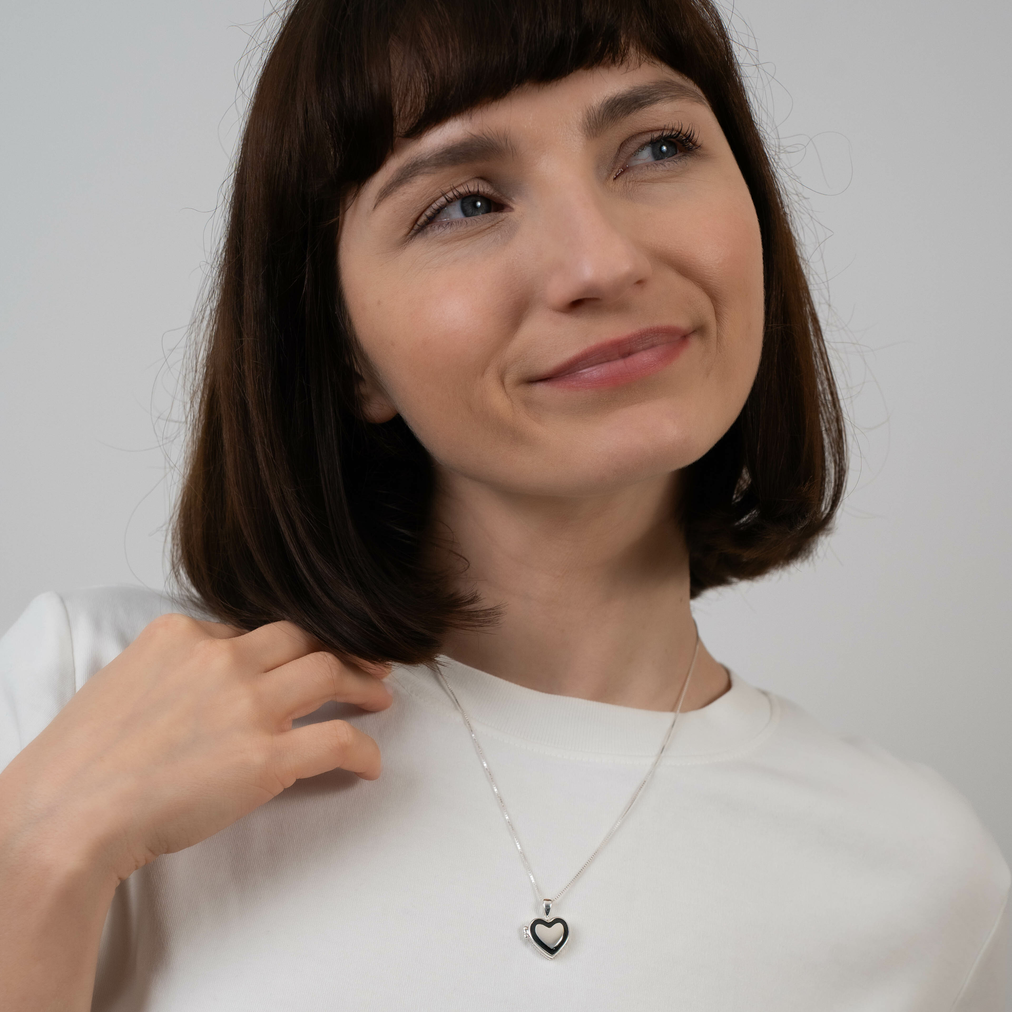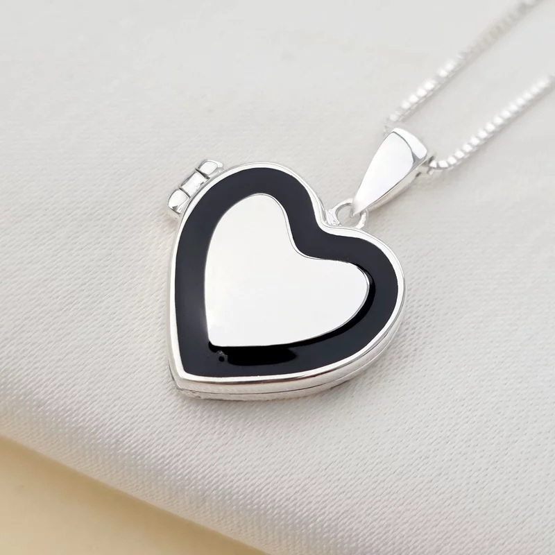 Medalion Eternitate in inima - Locket cu poze in interior - Argint 925 si email negru