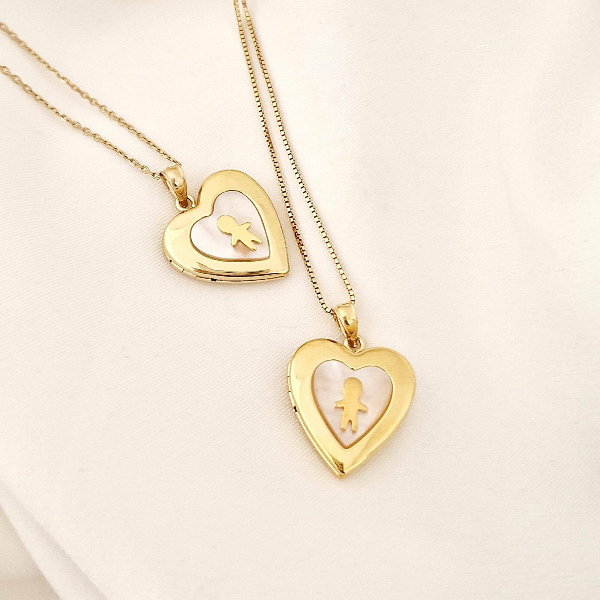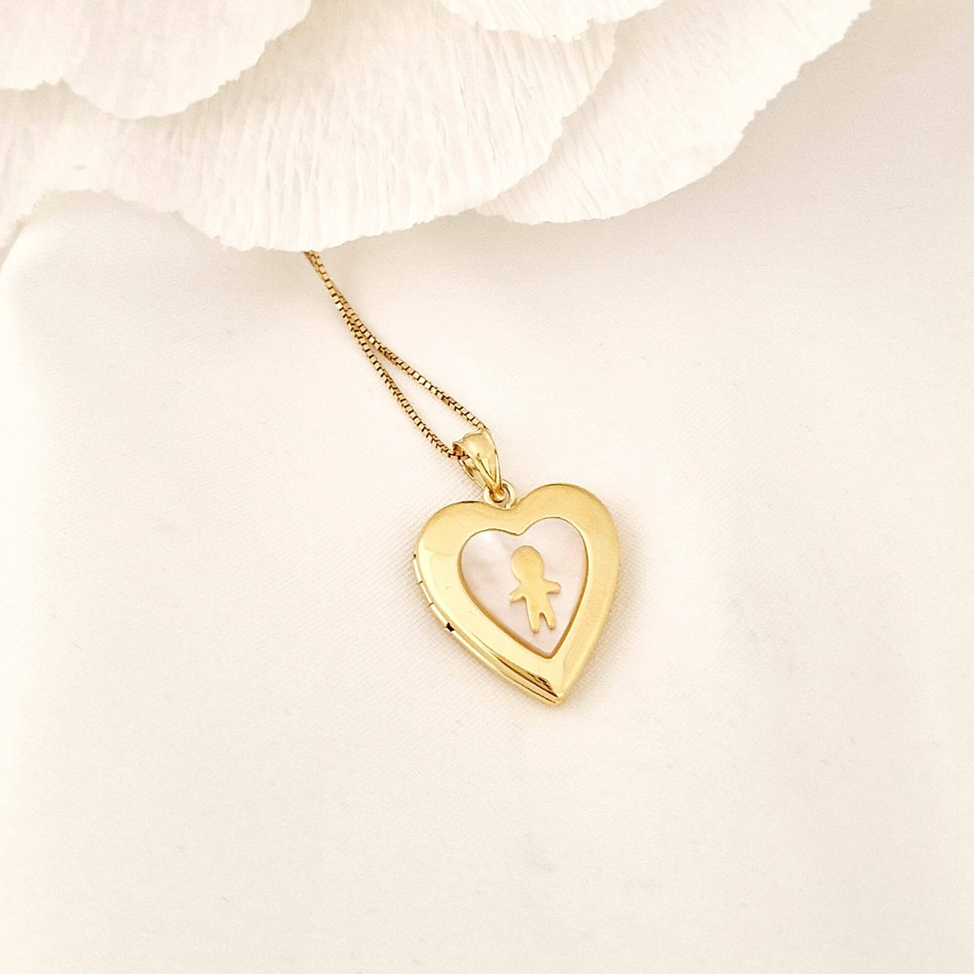 Medalion inima cu poze in interior - Boy & Mother of Pearl - Argint 925 placat cu Aur Galben 18K