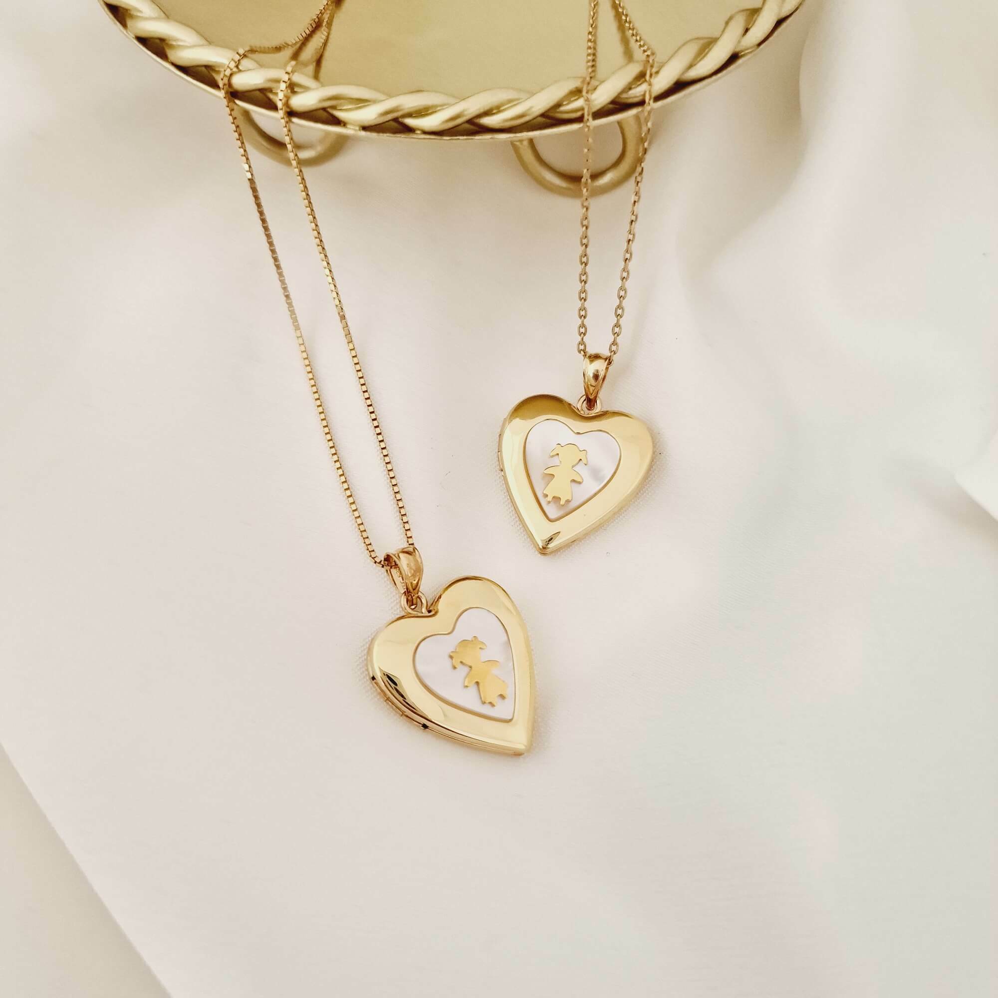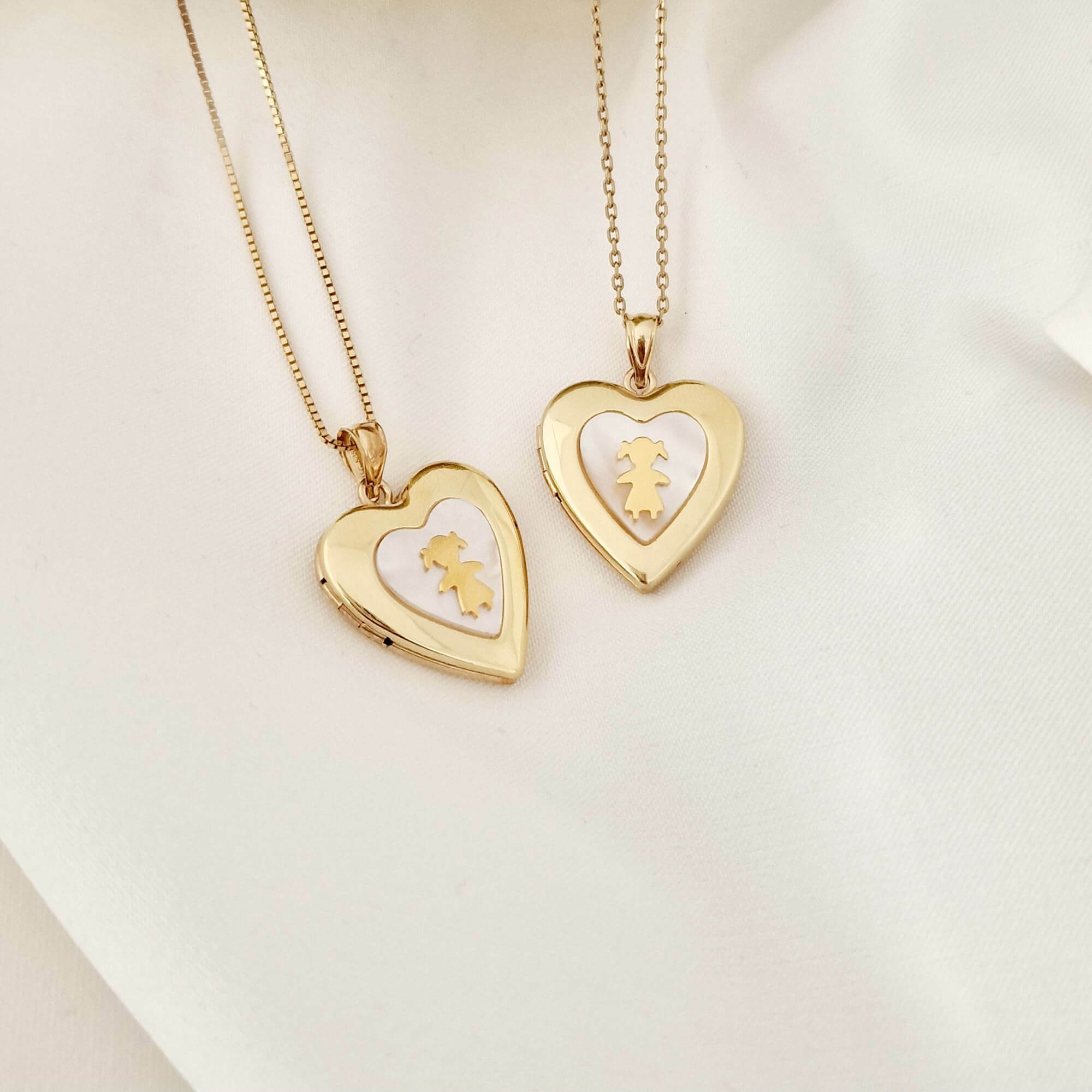 Medalion inima cu poze in interior - Girl & Mother of Pearl - Argint 925 placat cu Aur Galben 18K