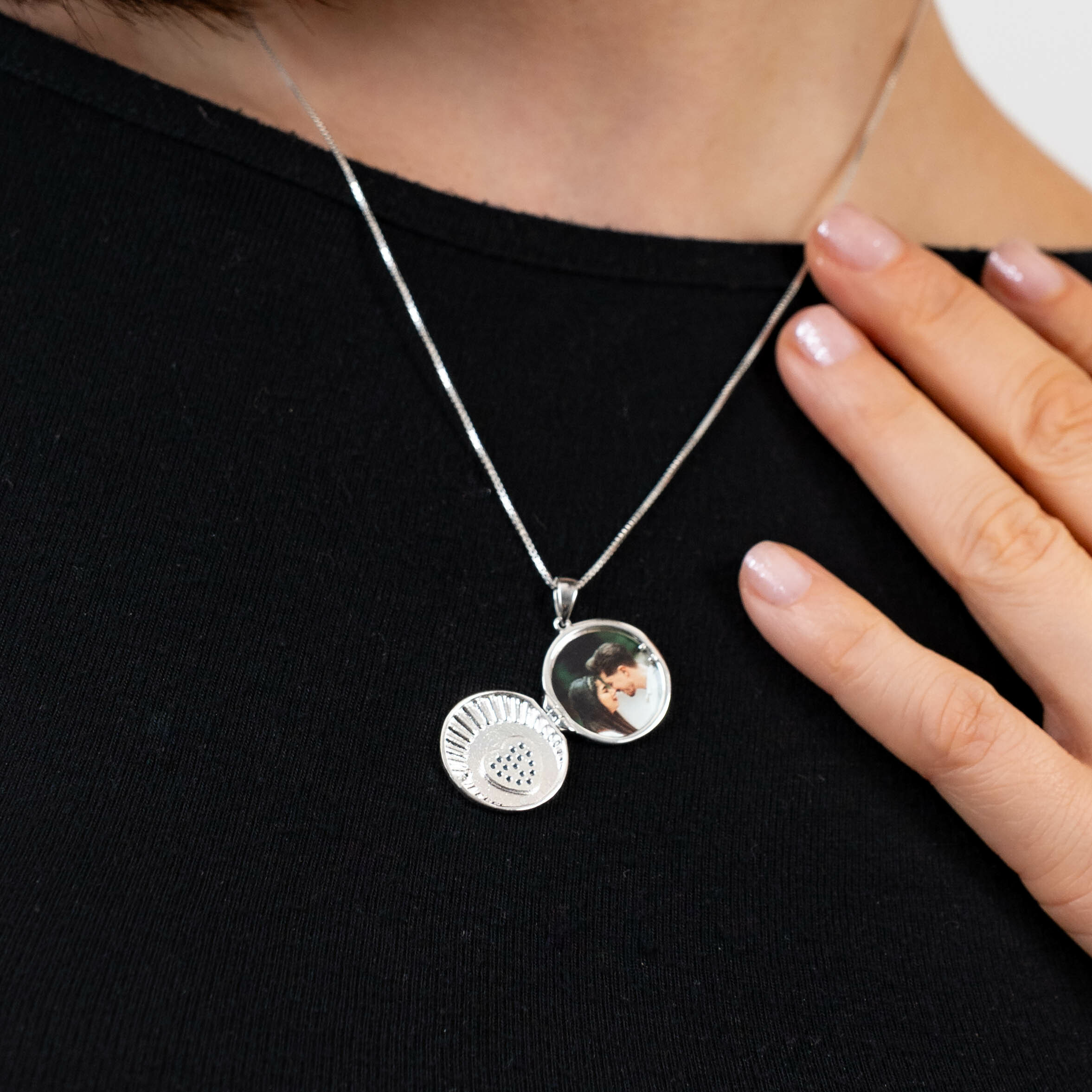 Elegant și strălucitor, pandantivul se deschide pentru a dezvalui una sau doua poze personale pe care le ai mereu langa sufletul tau.