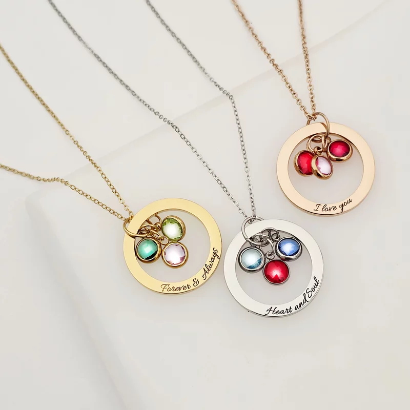 Lantisor Universul meu - Disc & Zirconii in culorile lunii de nastere - Otel Inoxidabil 316L