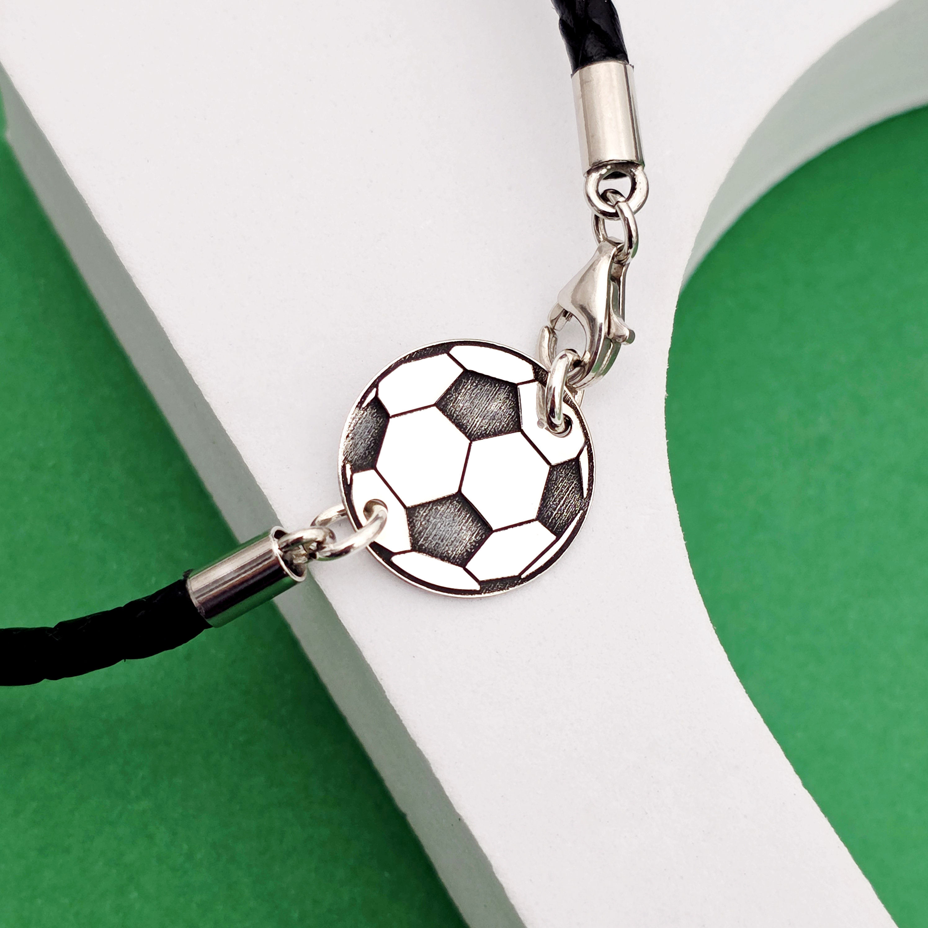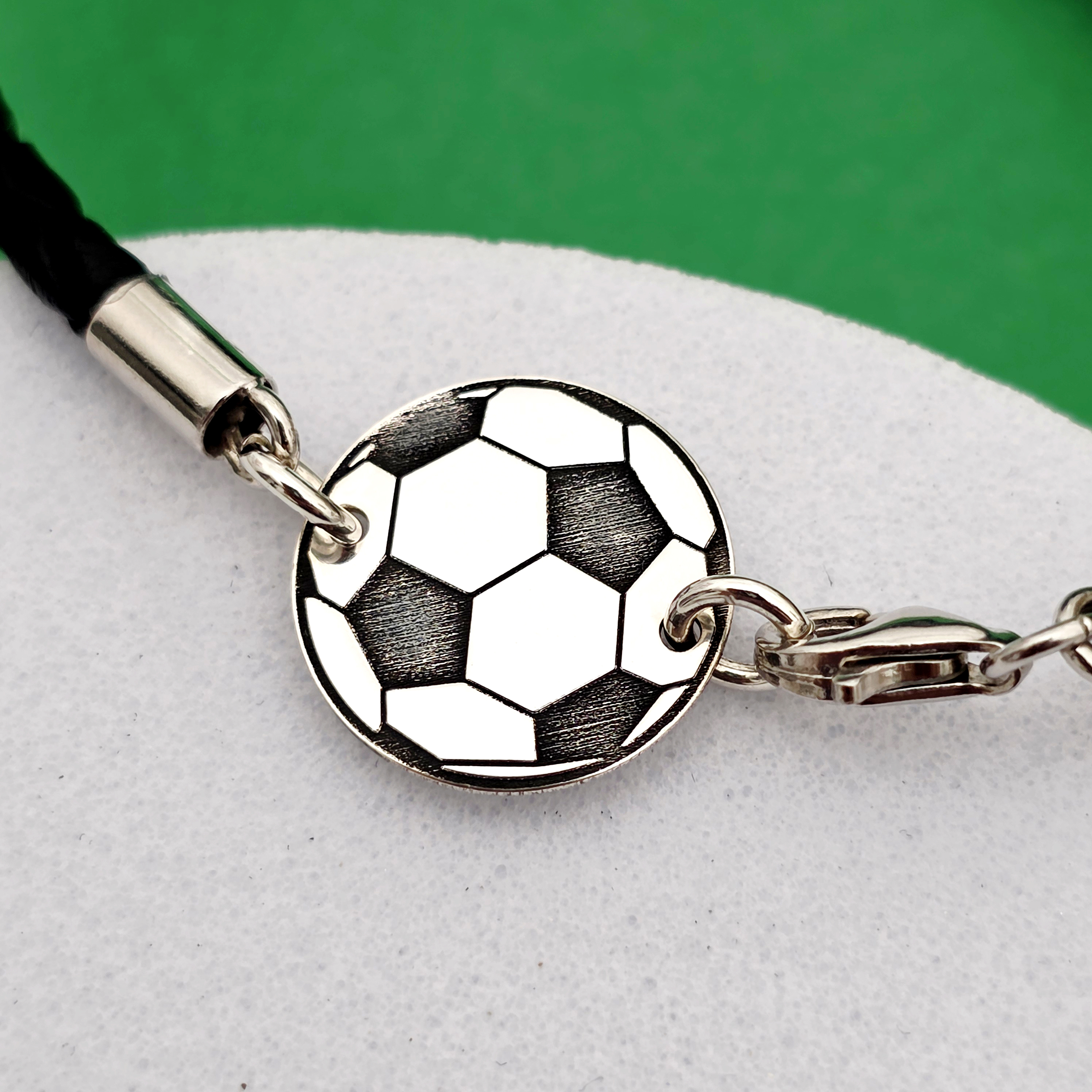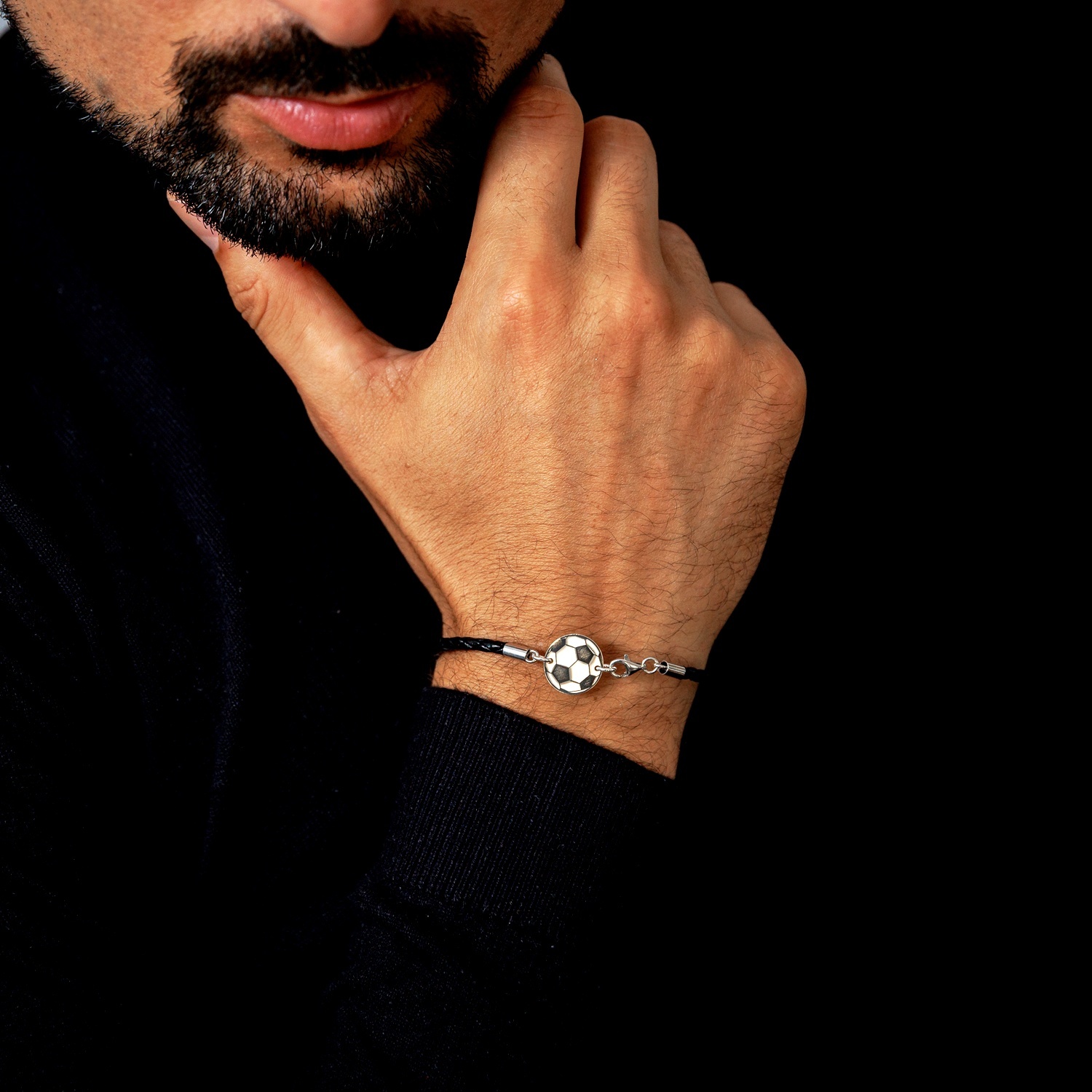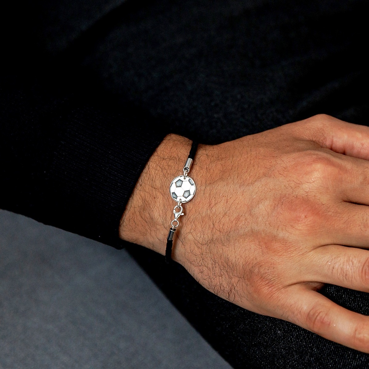 Bratara minge de fotbal - Argint 925 - piele impletita