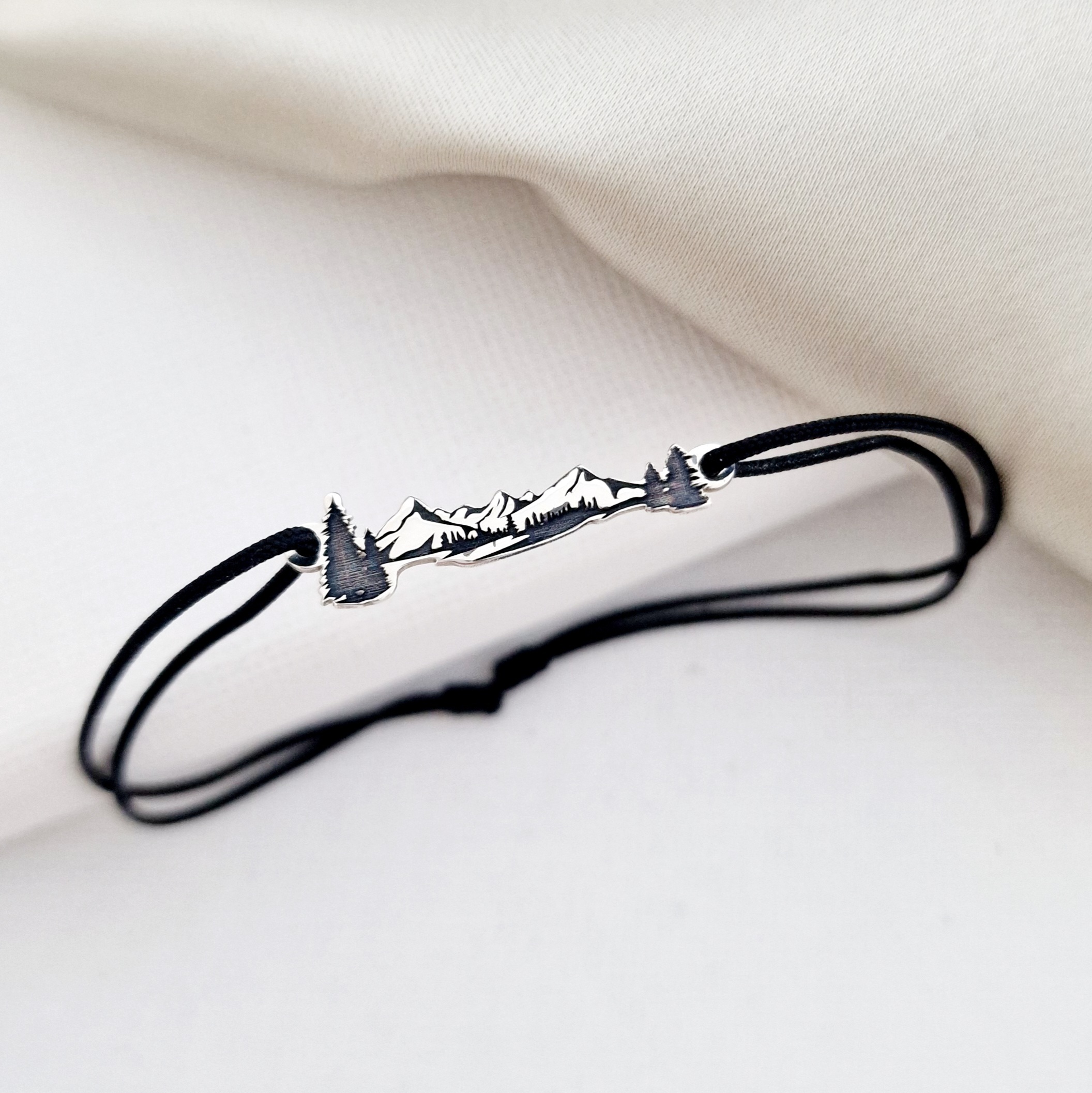Bratara personalizata - Peisaj de munte - Argint 925 - Snur reglabil