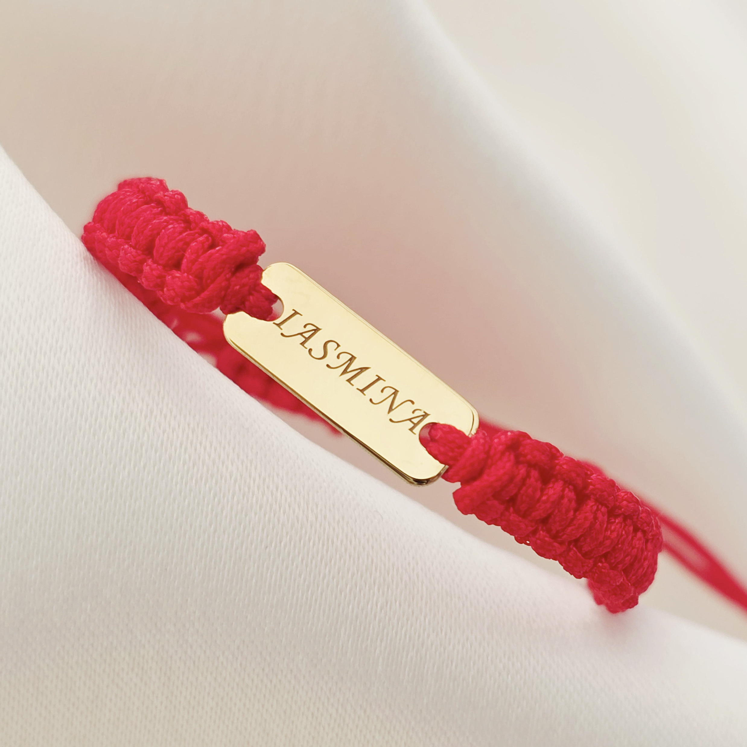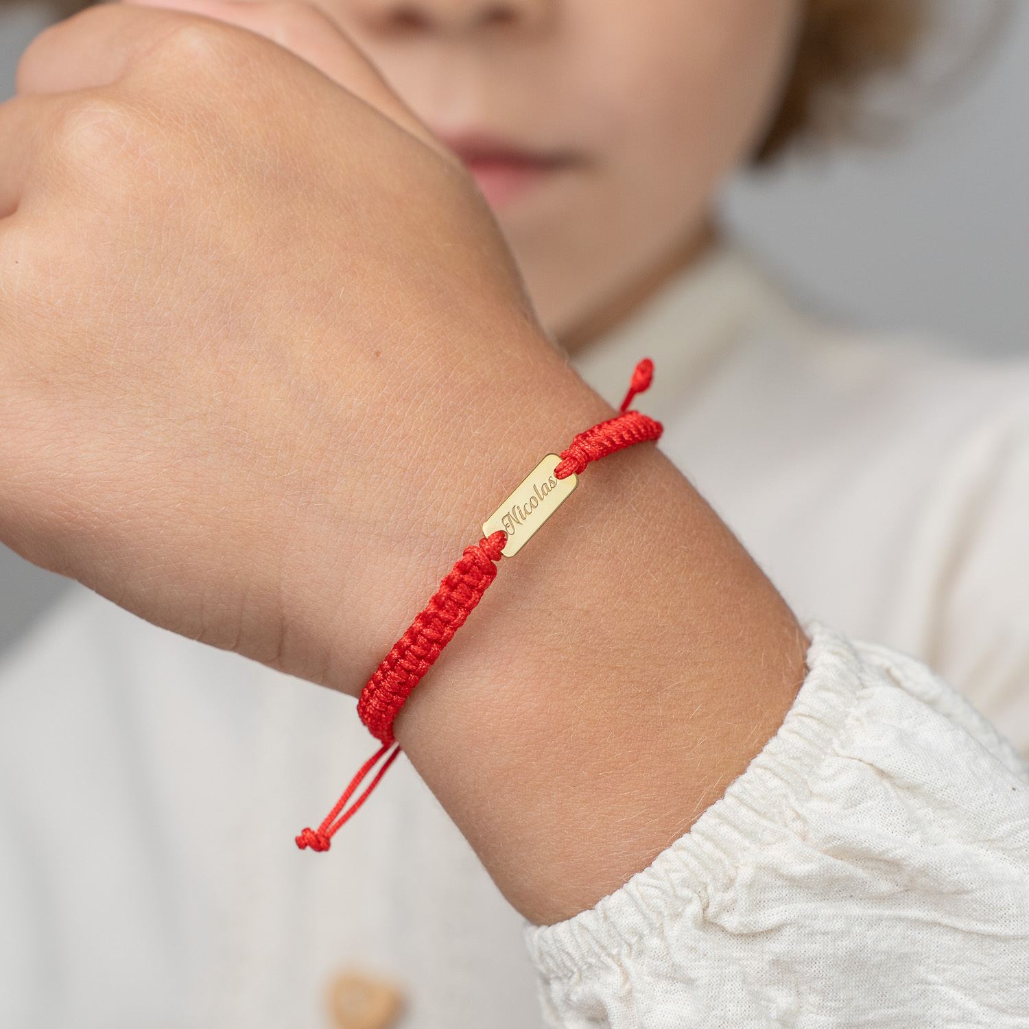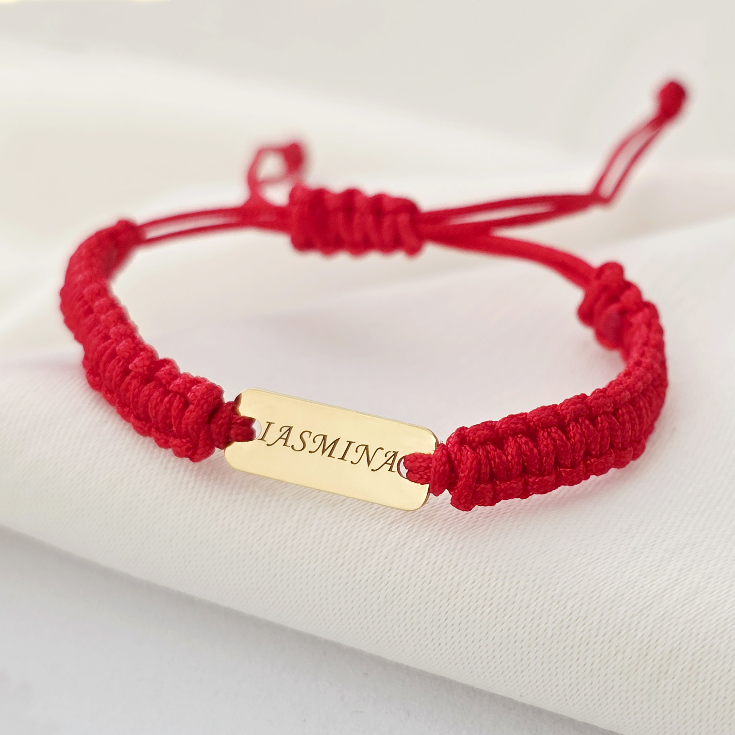 Bratara Placuta cu nume - Bebe - Argint 925 placat cu Aur Galben 18K, snur rosu impletit