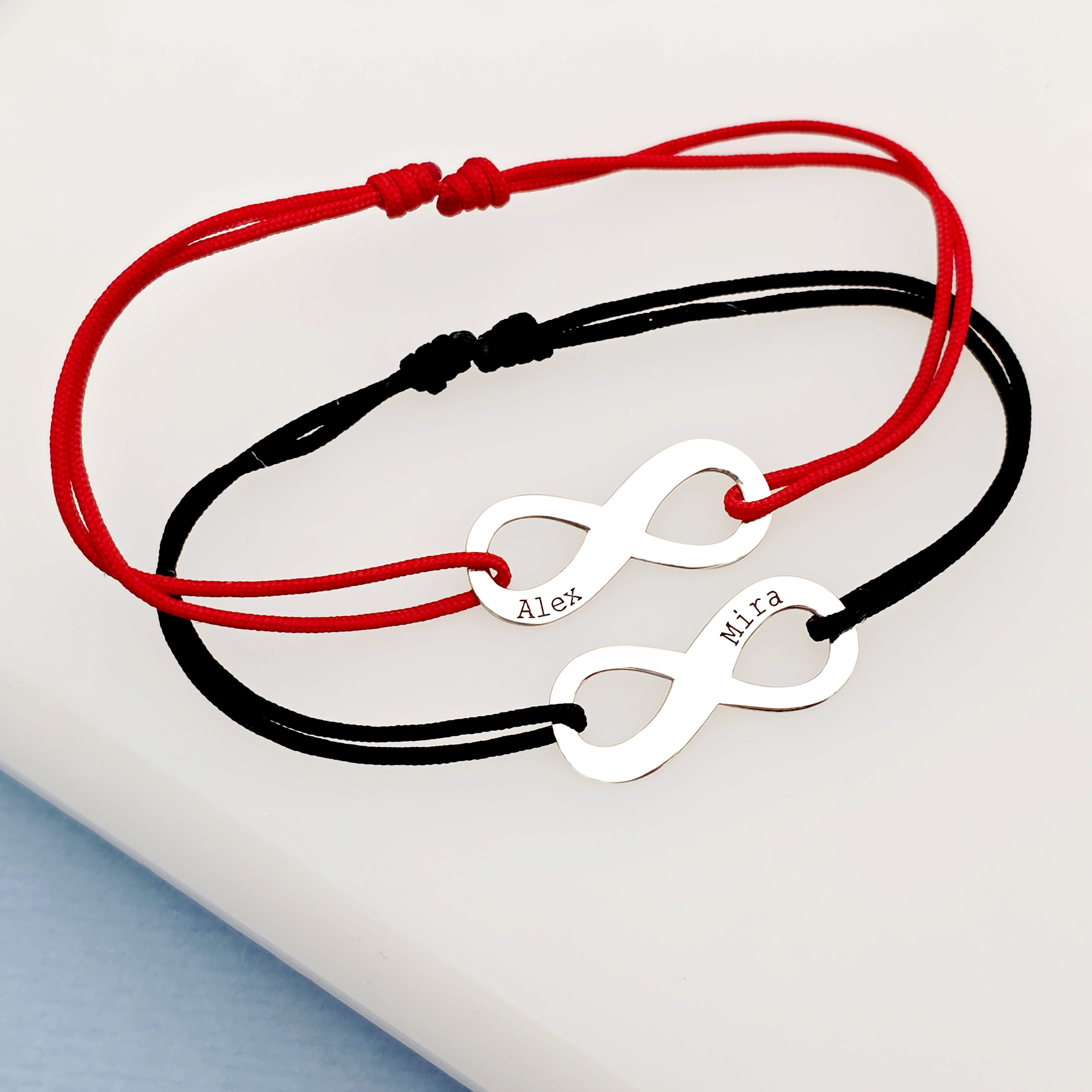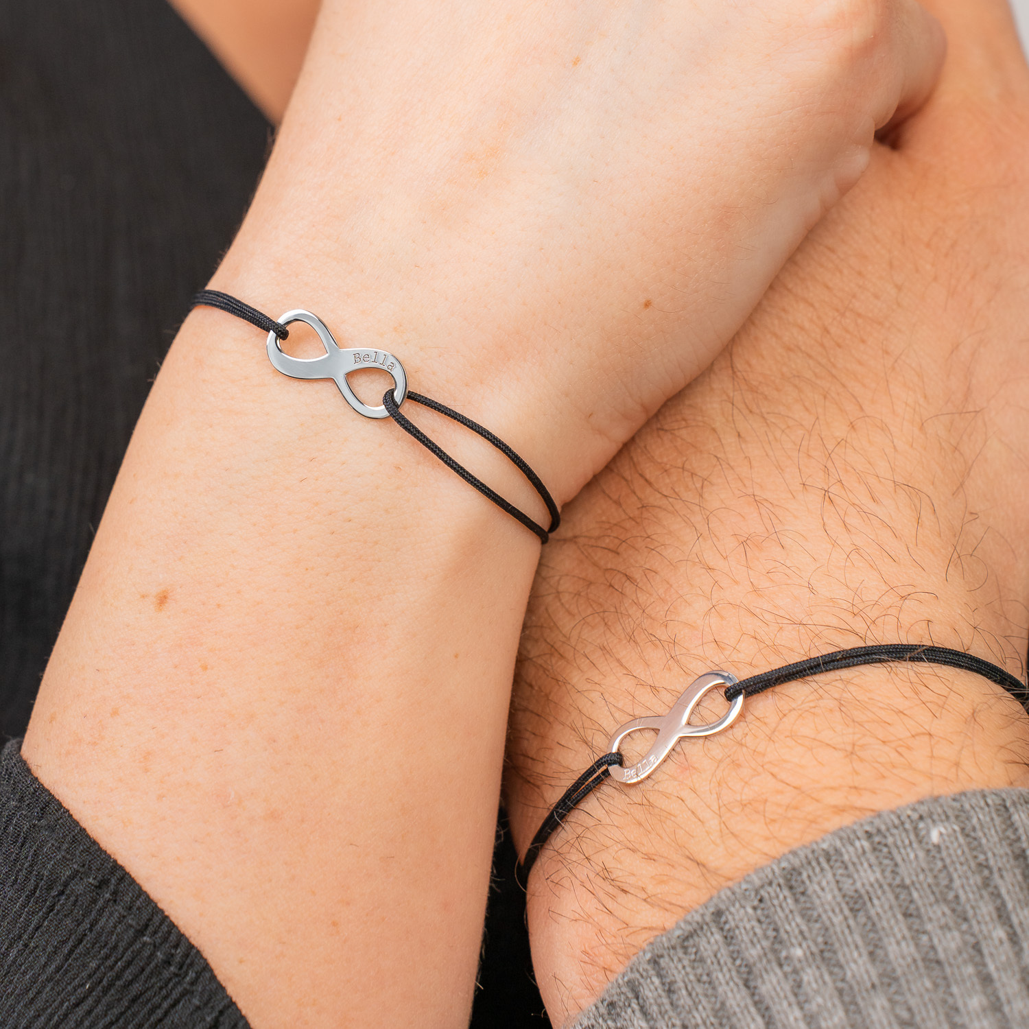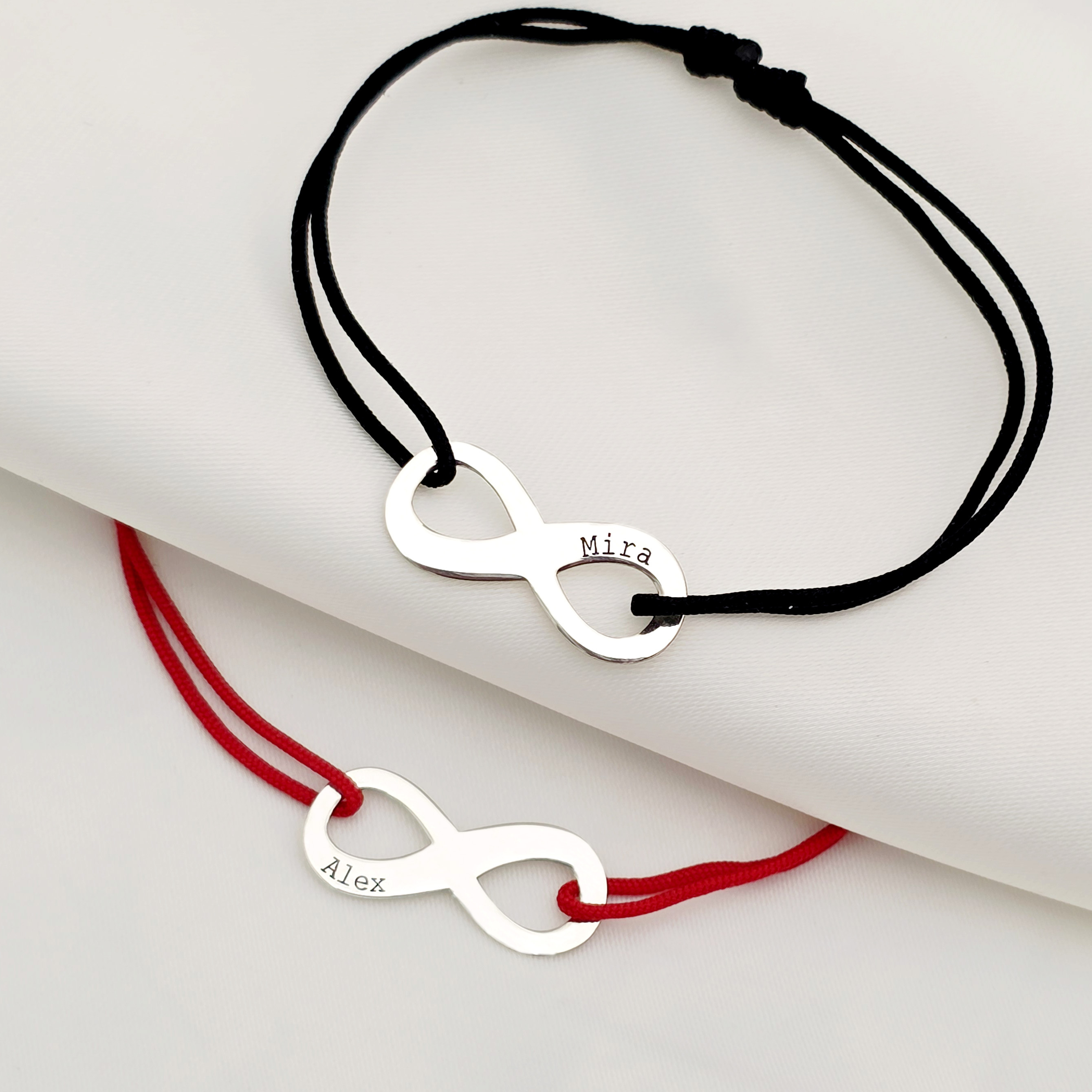 Set 2 bratari personalizate - Model infinit - Argint 925 - Snur reglabil, diverse culori