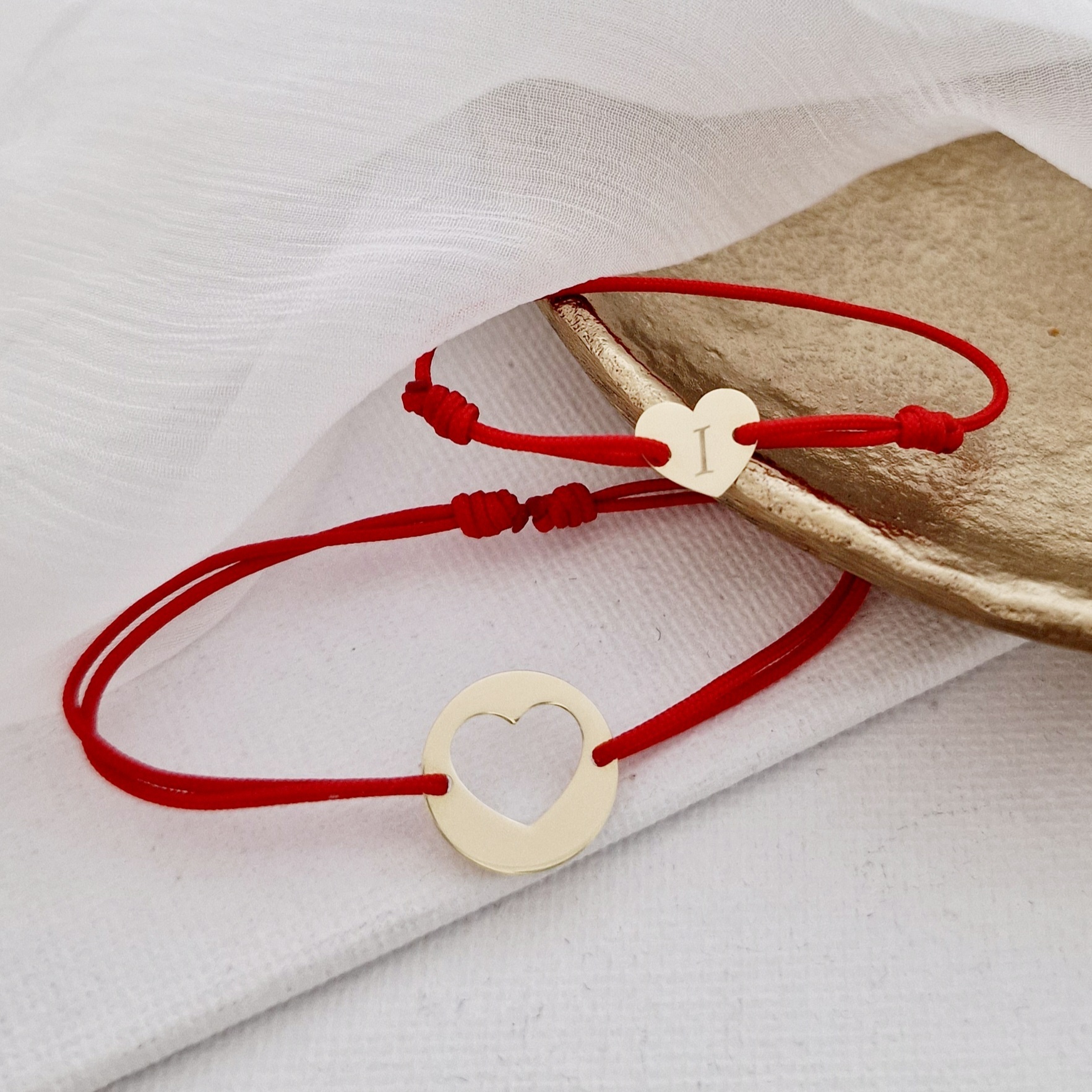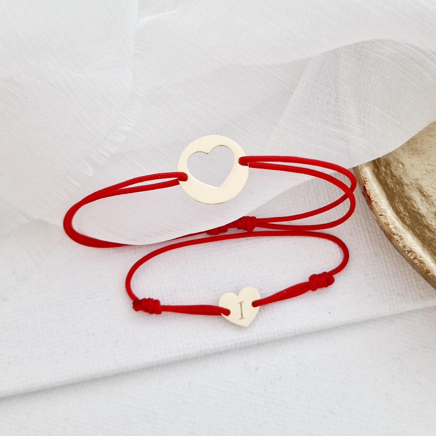 Set 2 bratari - banut si inima decupata - Aur Galben 9K - snur reglabil