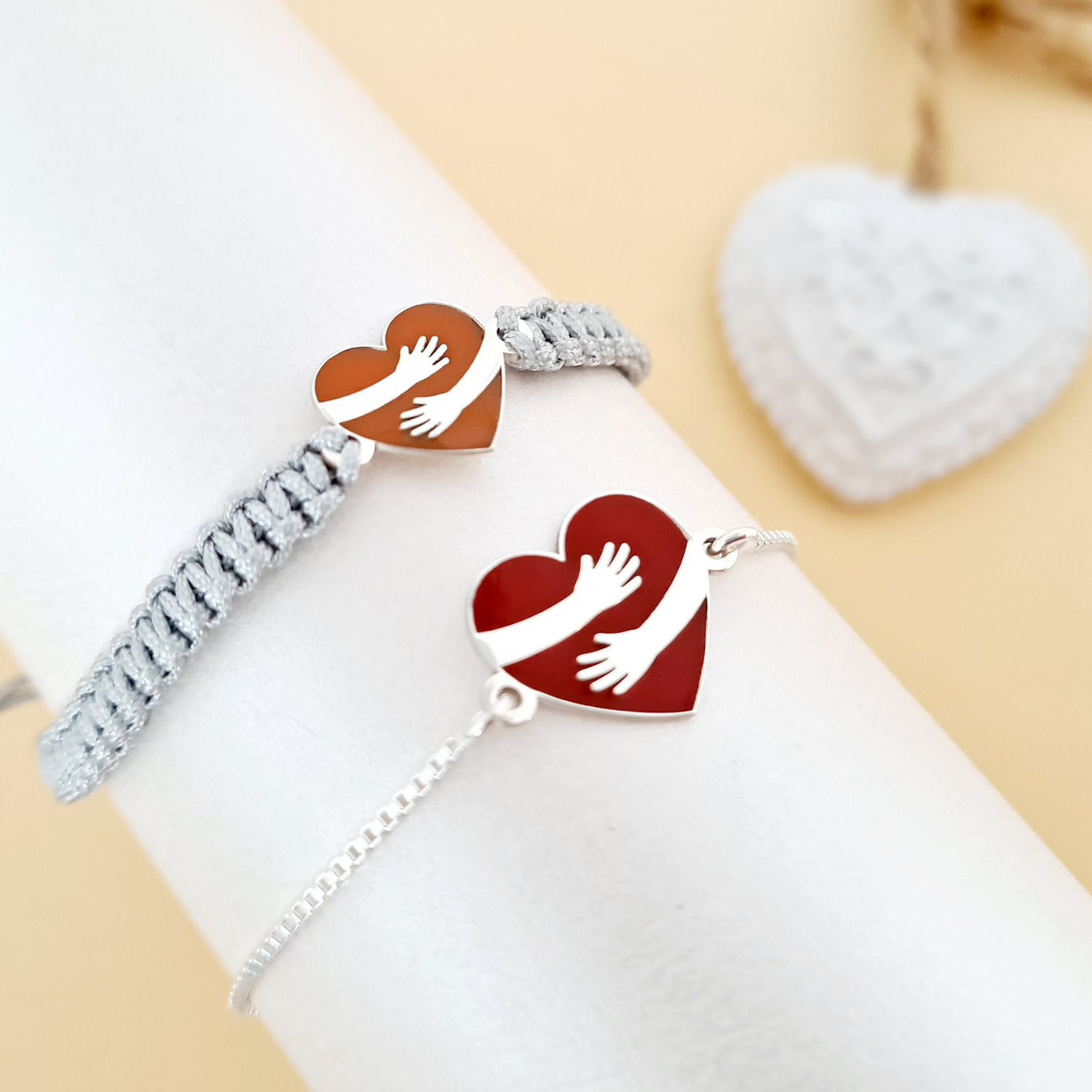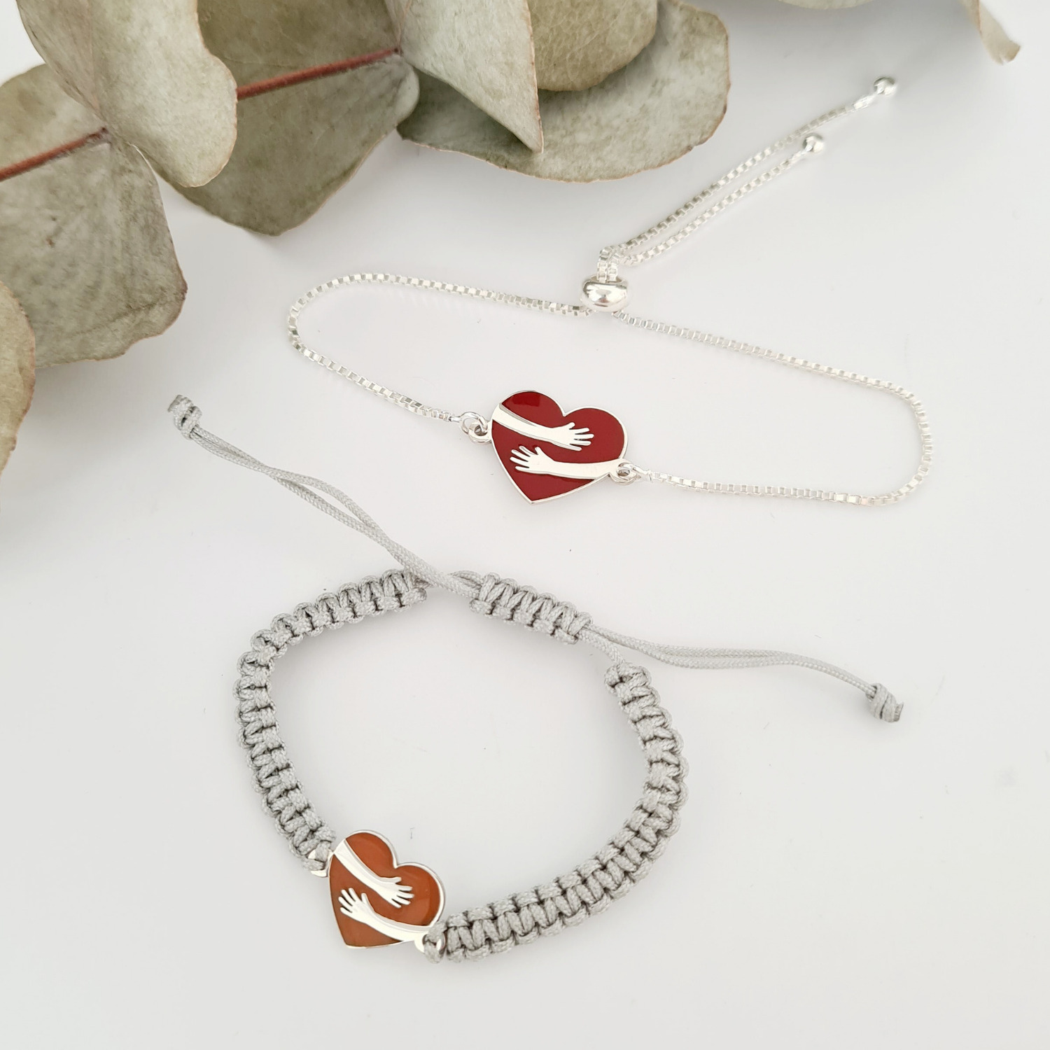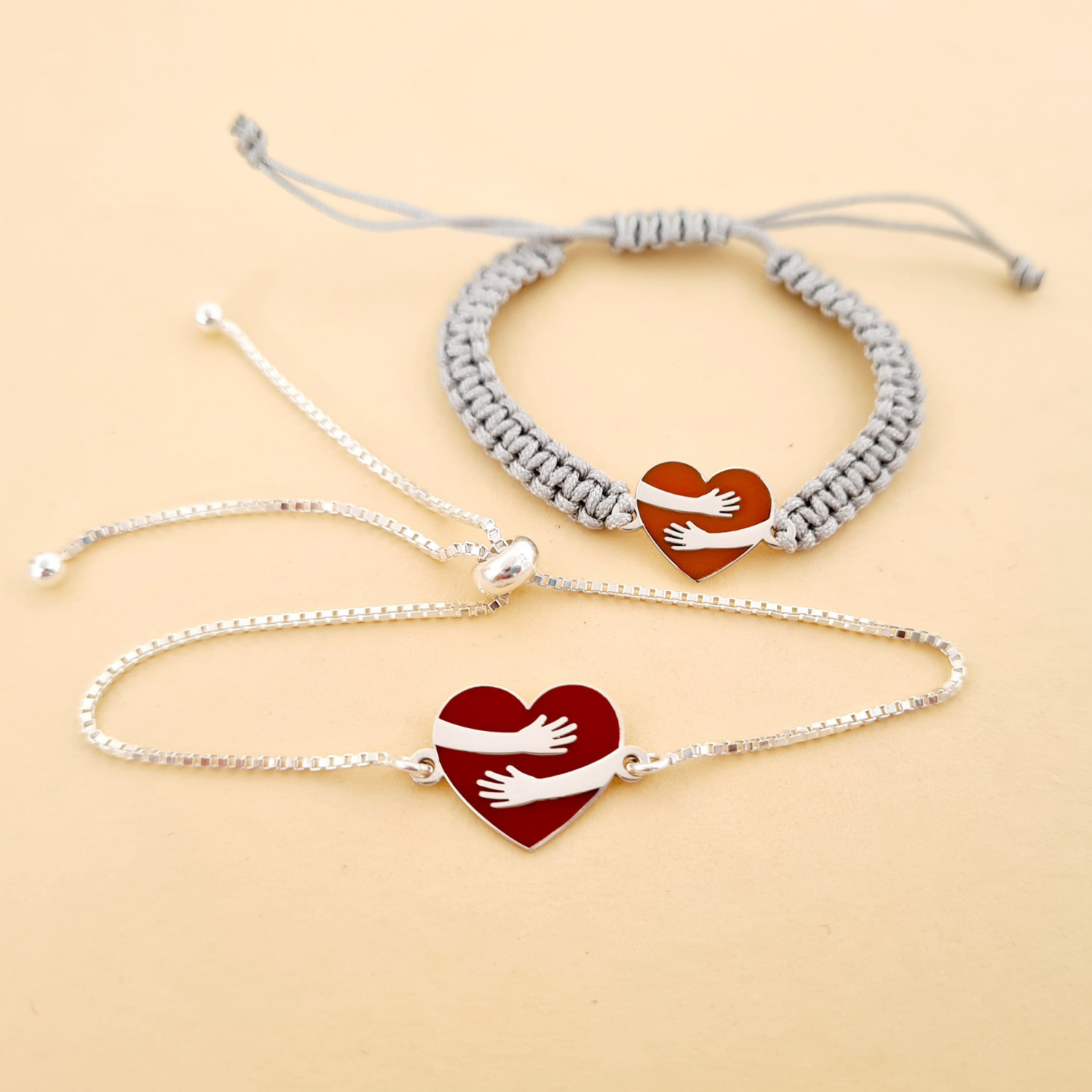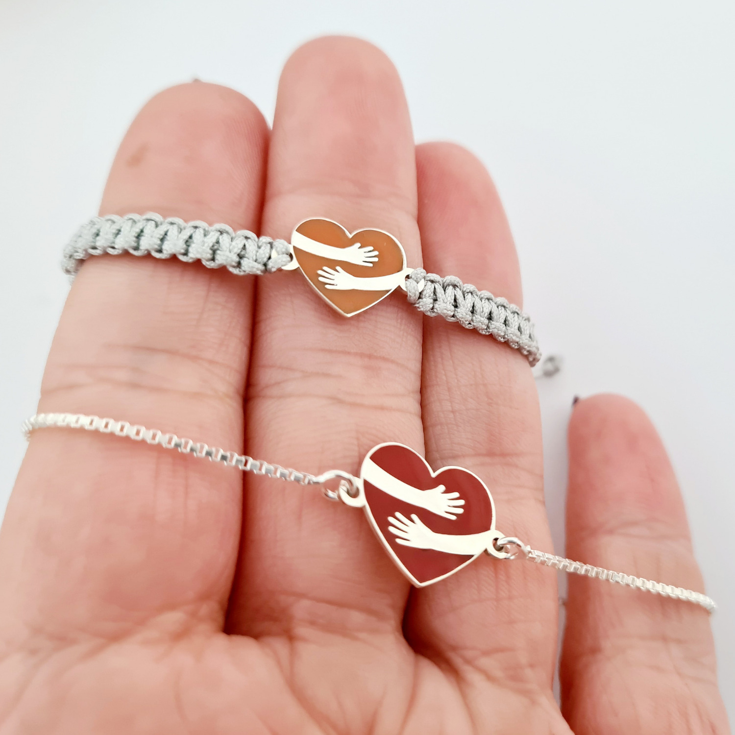 Set 2 bratari - Dor de tine - Inima colorata cu email - Argint 925 - Lantisor glisant si snur reglabil impletit