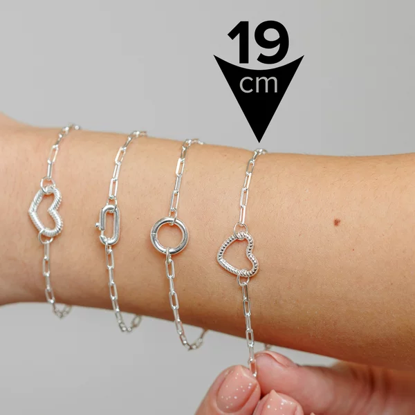 Pentru bratarile cu lantisor pentru dama avem 2 optiuni – una cu inchidere glisanta, care este potrivita pe mai multe dimensiuni de incheietura, precum si una simpla, cu inchidere intre 15 si 18 cm. Pentru copii, bratarile cu lantisor au 2 zone de inchidere: la 12 cm, respectiv 14 cm. Pentru o potrivire cat mai perfecta, te rugam sa masori circumferinta incheieturii.
