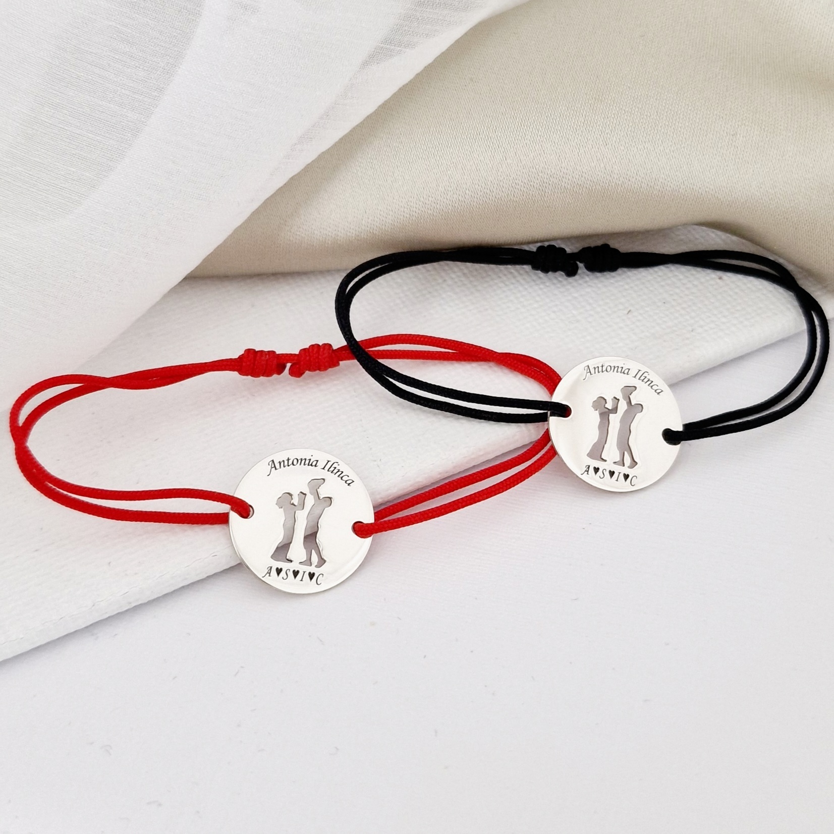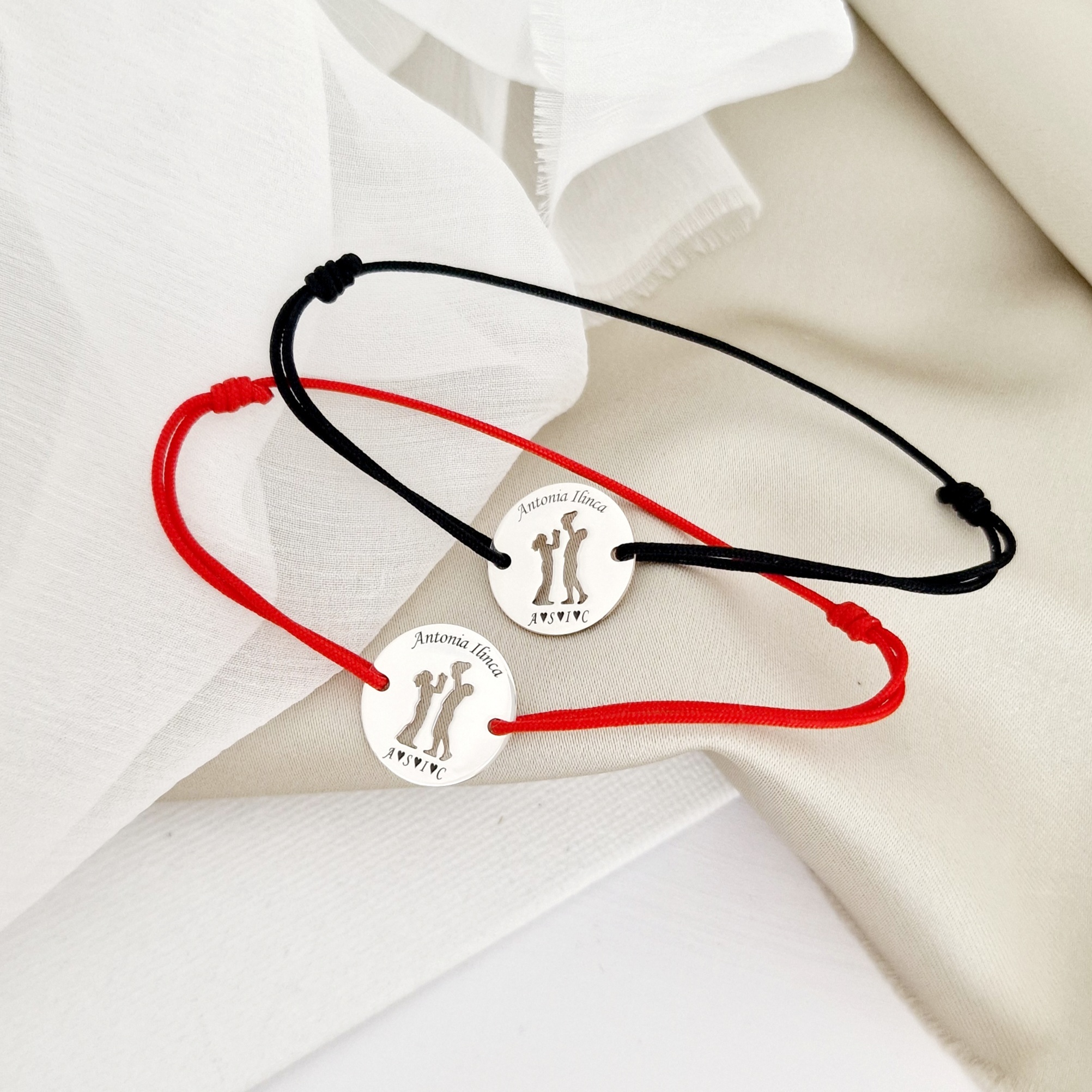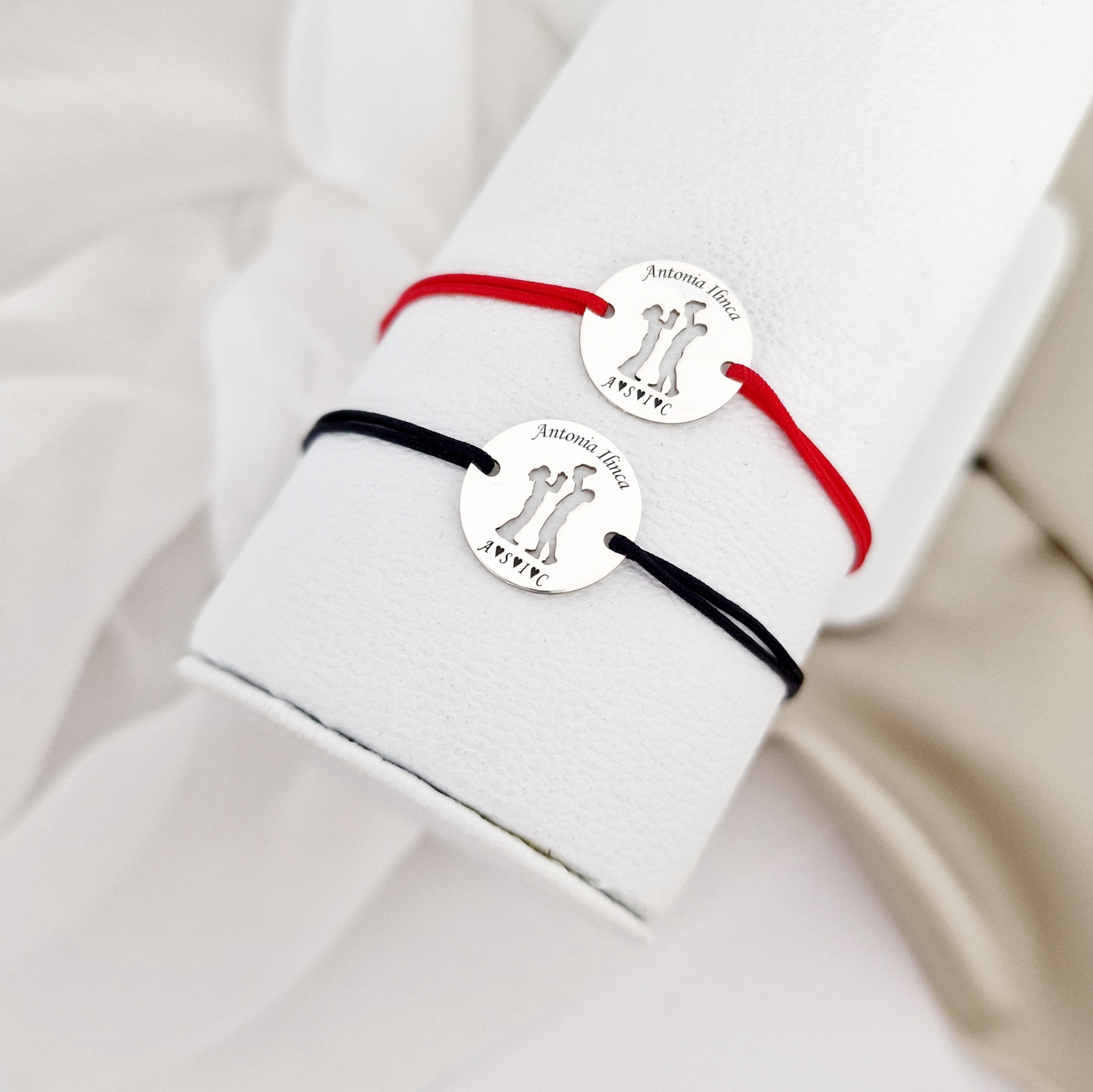 Set 2 bratari personalizate - Banuti cu model decupat - Mama, tata si copil/bebe - Argint 925 - snur reglabil
