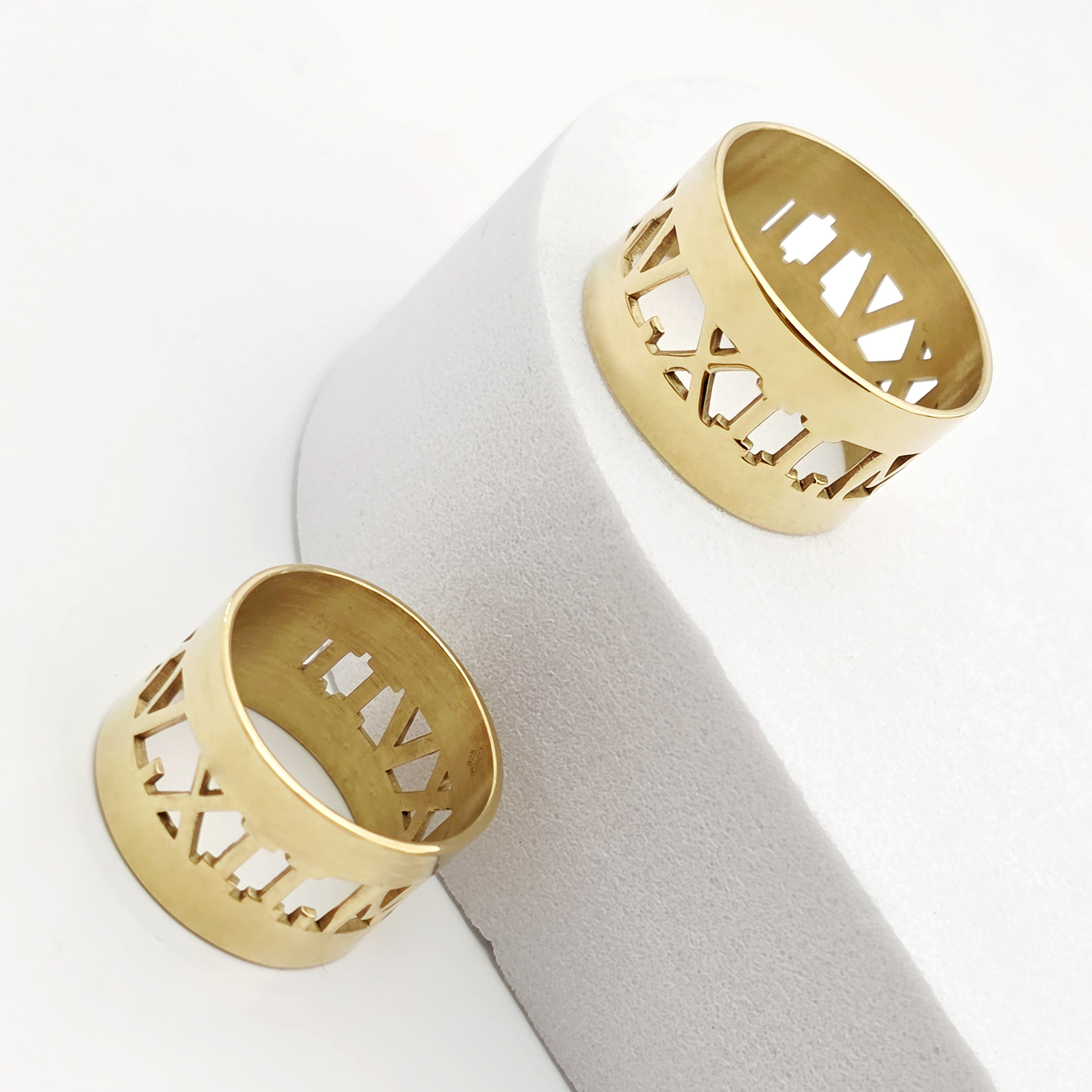 Set 2 Inele Personalizate cu Cifre Romane Pentru Ea și El - Argint 925 Placat cu Aur Galben 18K