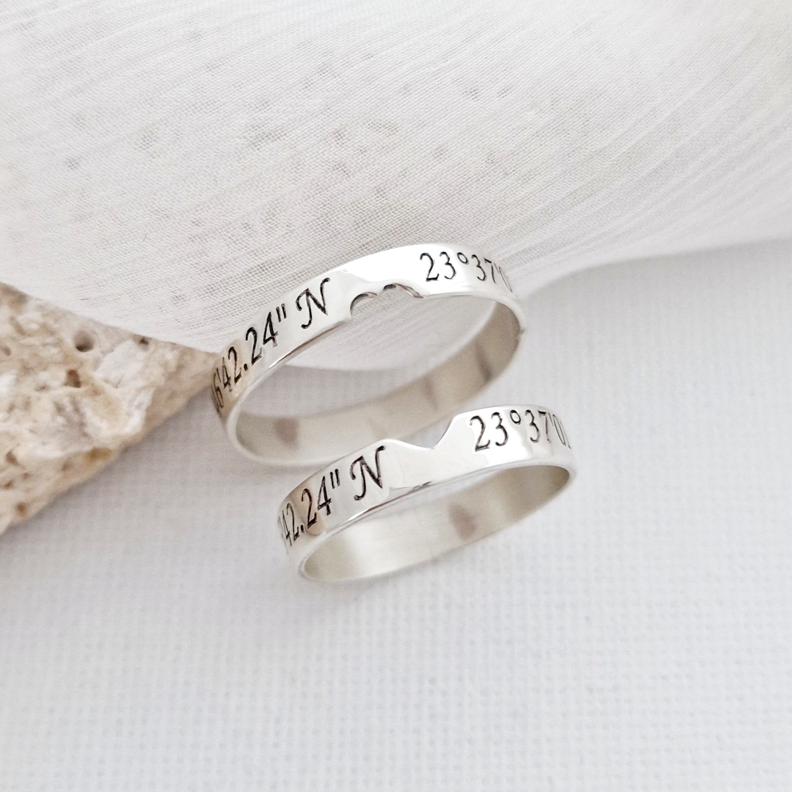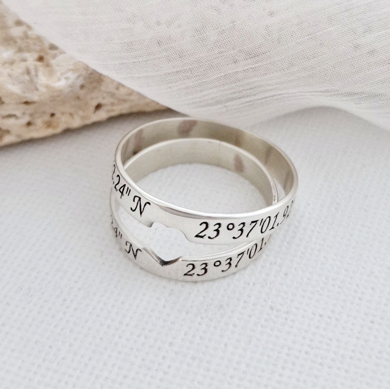 Set 2 Inele personalizate - coordonate - pentru Cuplu - Argint 925