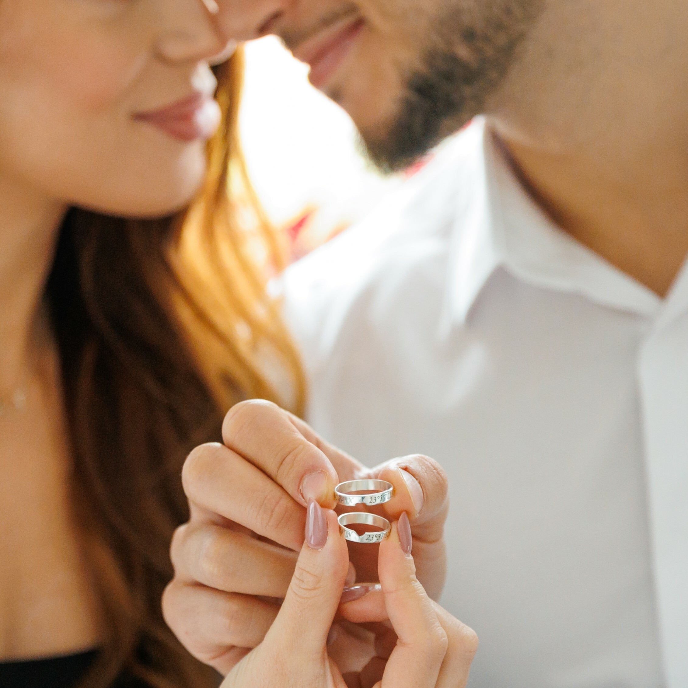 Un set de inele speciale pentru El si Ea, pentru ca dragostea voastra sa fie mereu cu voi oriunde veti fi. Acestea pot fi personalizate cu coordonatele unui loc specific pentru relatia voastra, cu numele voastre sau cu oricare alte doua cuvinte pline de semnificatie pentru voi.