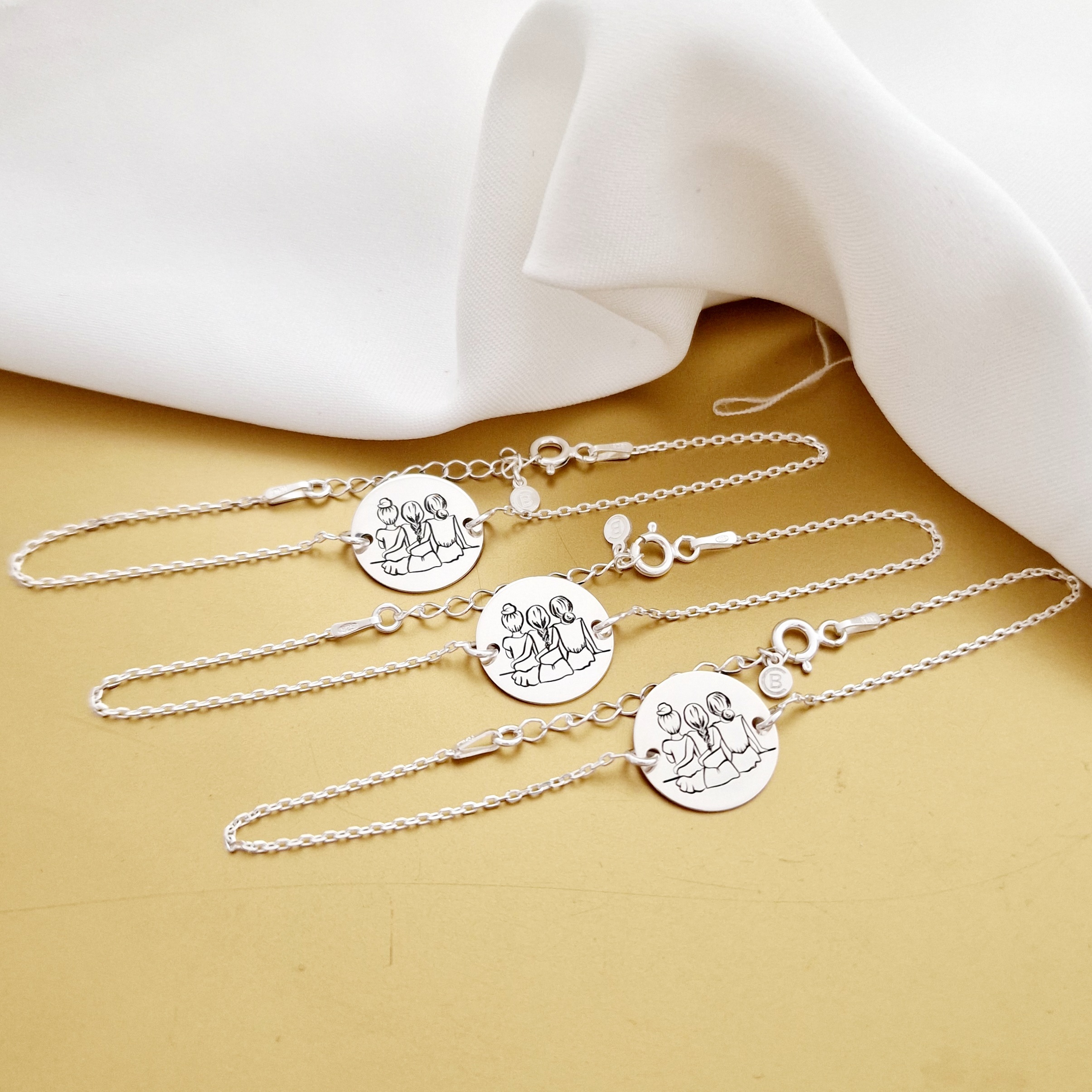Set Cadou 3 bratari surori / prietene - banut si lantisor din Argint 925