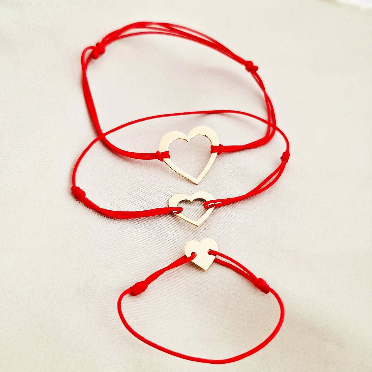 Set 3 bratari - Puzzle o inima impartita - Argint 925 placat cu Aur Galben 18K - Snur reglabil
