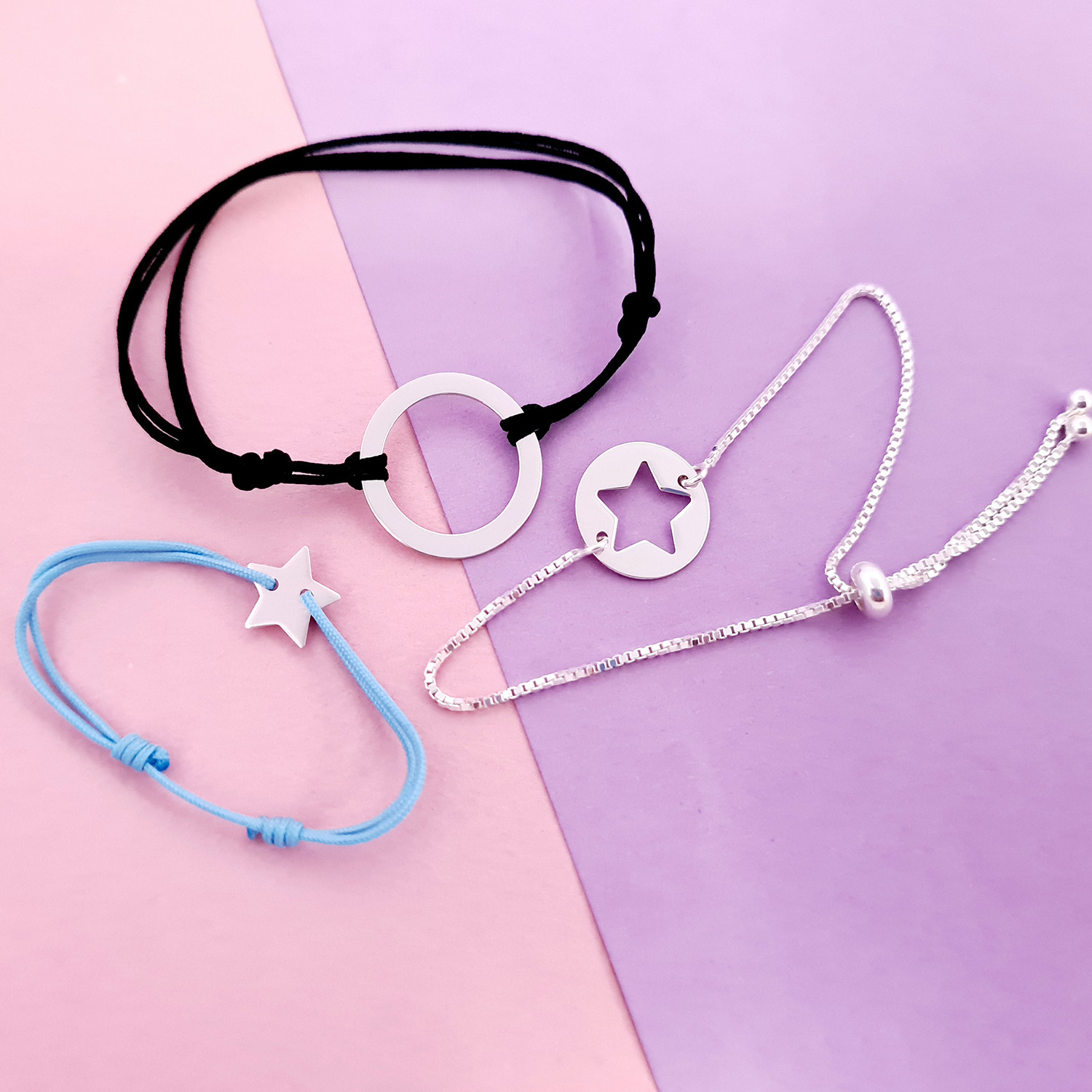 - Bratara copilului sub forma de stea are dimensiunea de 10 mm si este atasata de un snur reglabil, diverse culori.