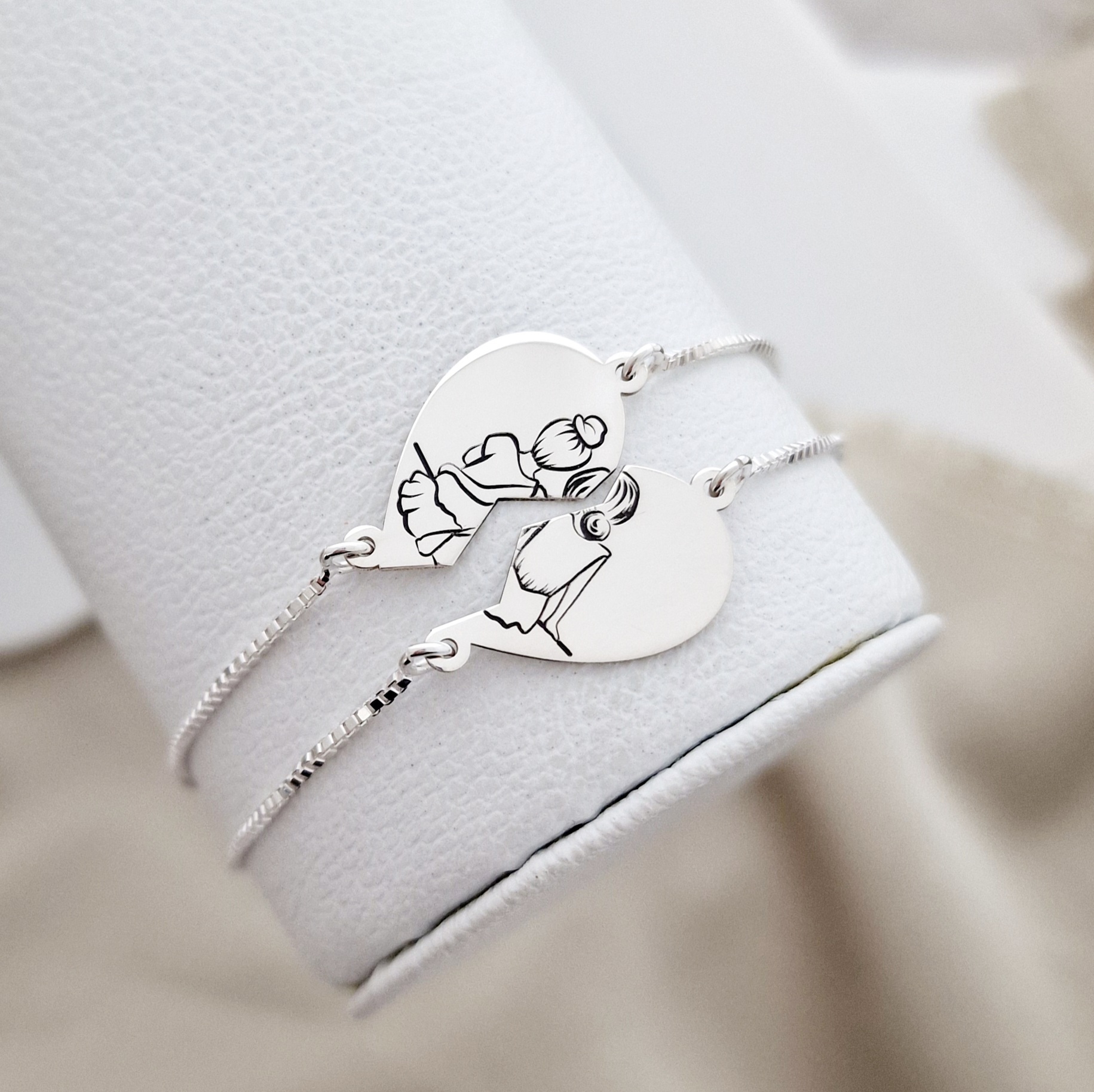 Fiecare bratara reprezinta o bucata de puzzle din inima celor doua surori/prietene.