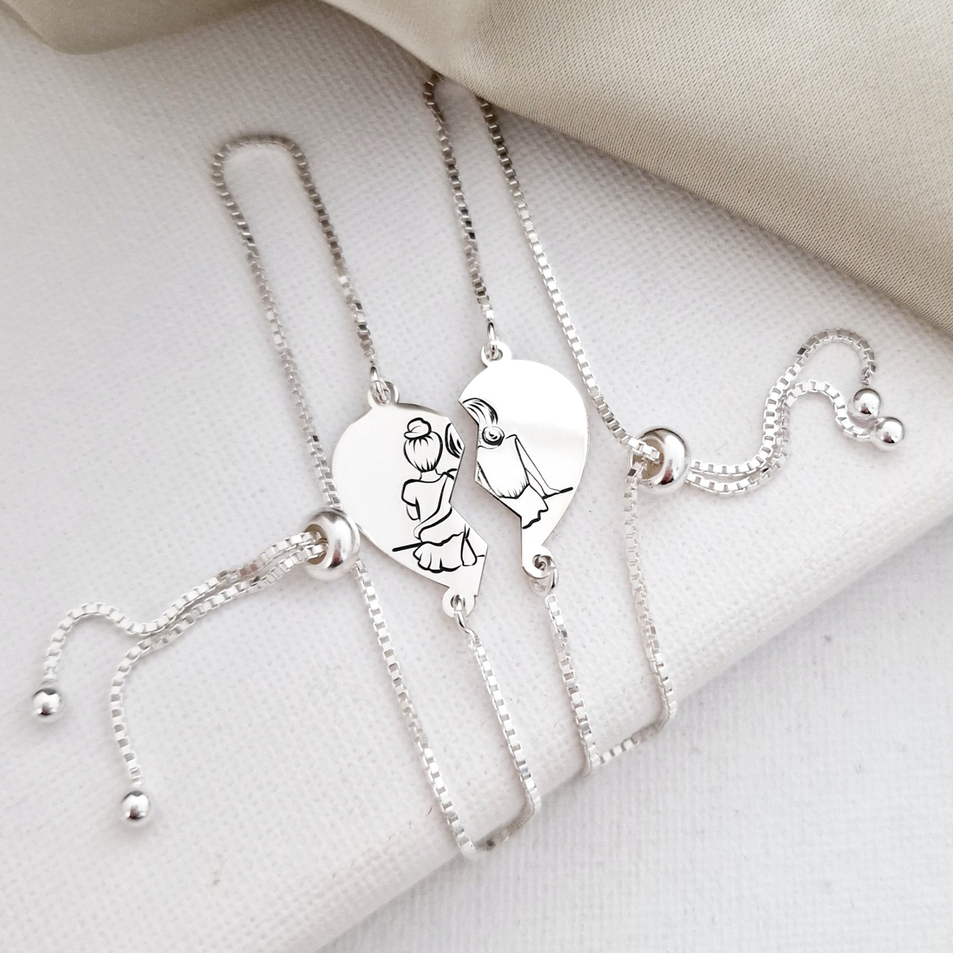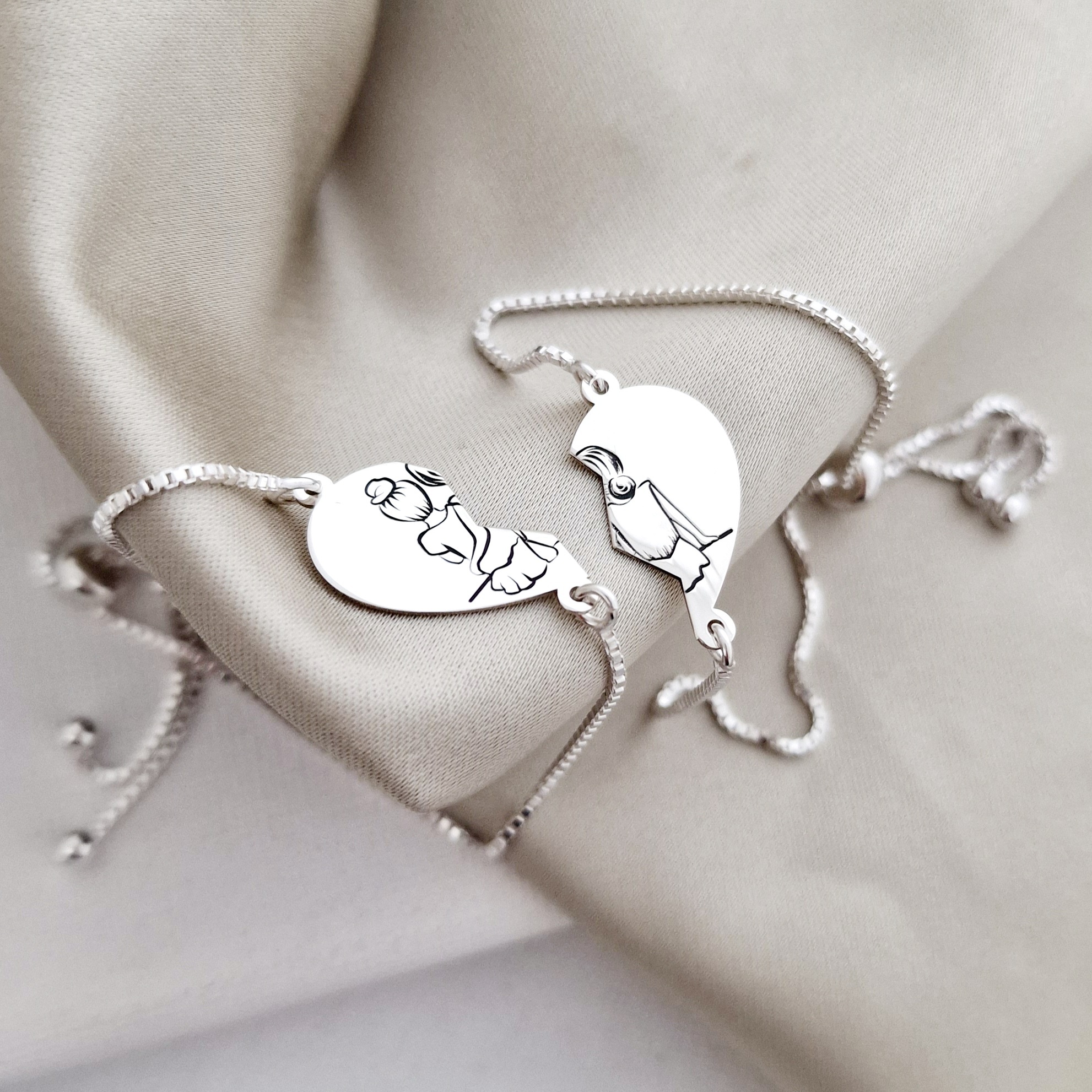 Set Cadou 2 bratari surori/prietene - Inima puzzle - Lantisor glisant ajustabil - Argint 925