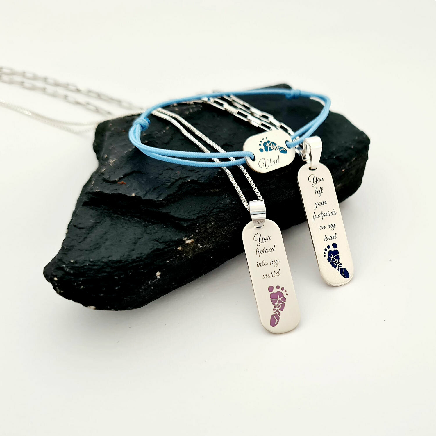 Set bijuterii familie - Footprints decorate cu email colorat - Argint 925 cu finisare aspect mat